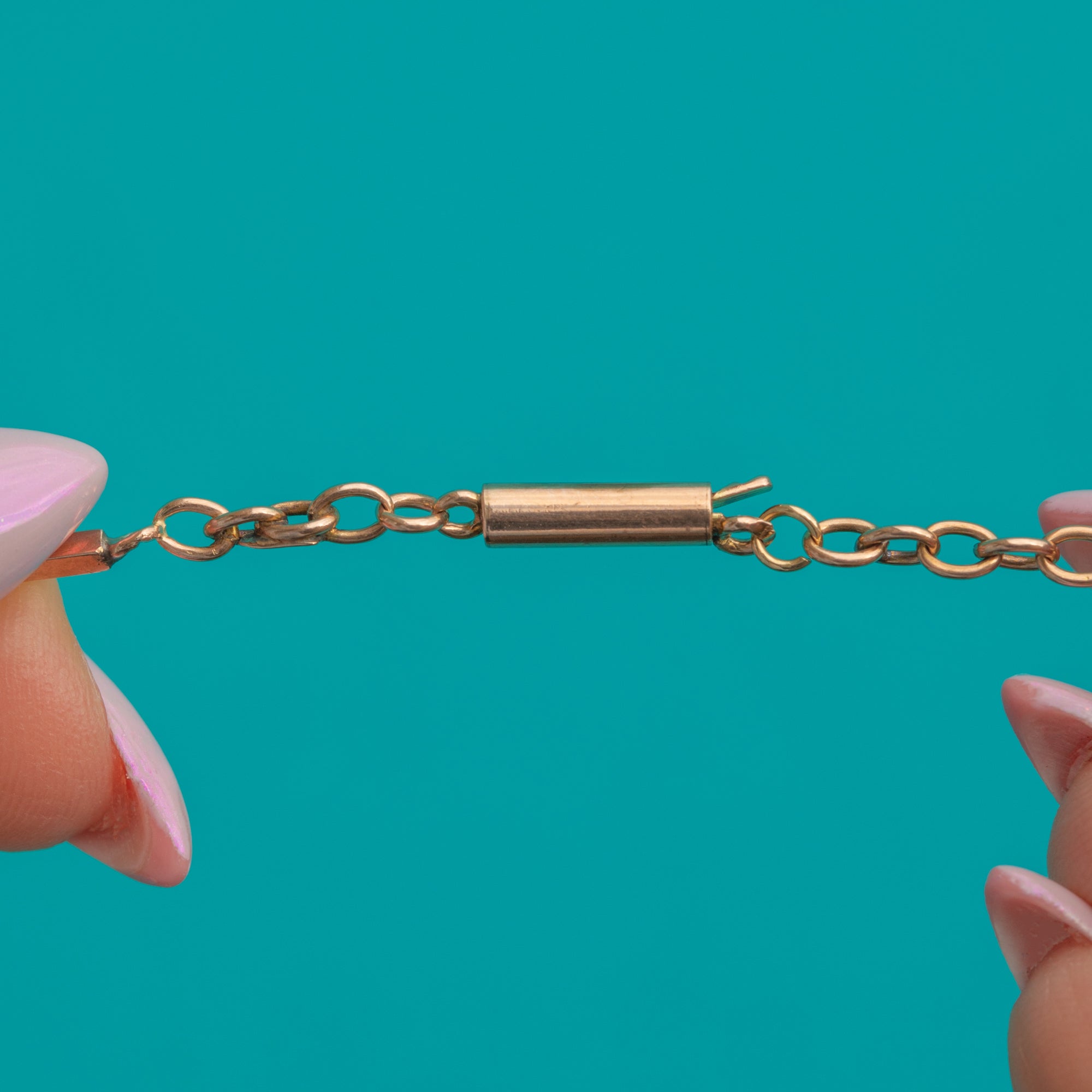 STAMPS: Worn 9CT tag near clasp.