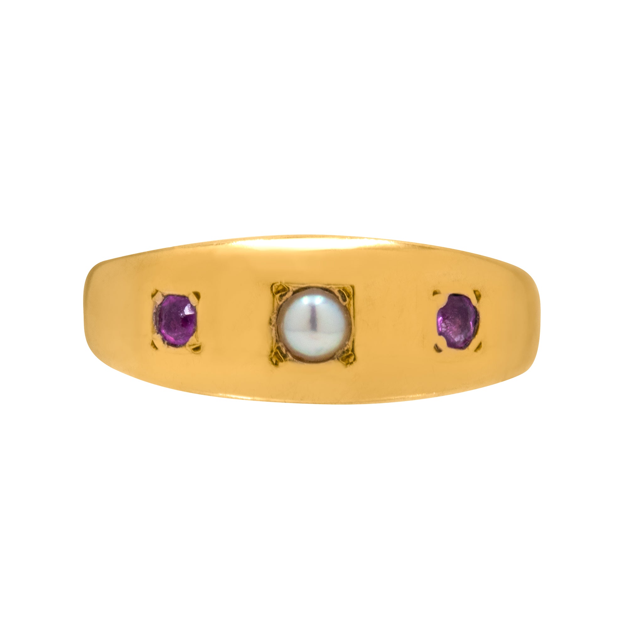 Antique 9ct Gold Ruby Pearl Gypsy Ring, c.1885