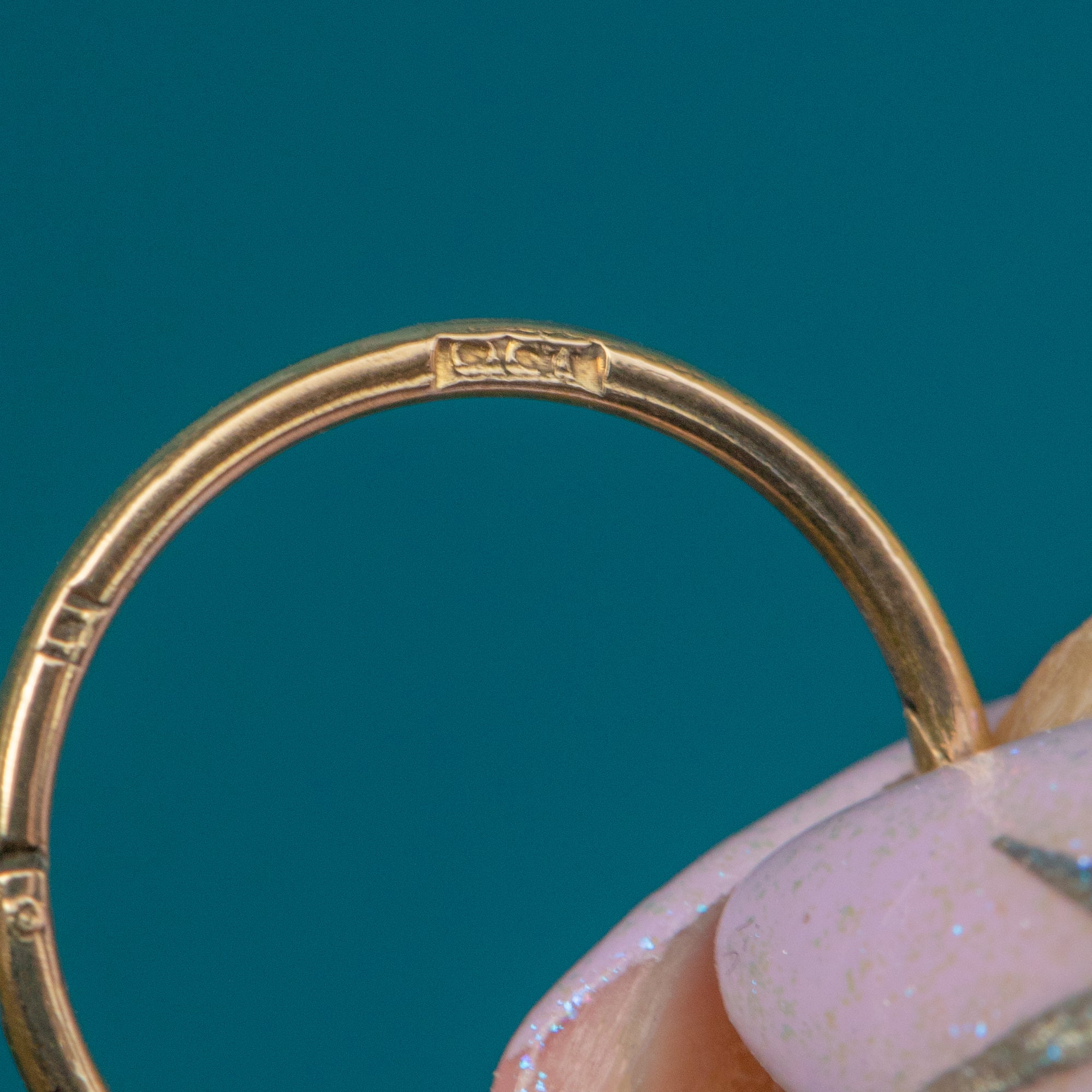 EXCELLENT. These antique 9ct Gold sleeper hoop earrings are in excellent condition! The hoops close securely so you can wear them as they were intended - all day long and even to bed! There is a worn 9CT stamp on one of the earrings, but this is so small you can barely see it when you wear these in the ear.