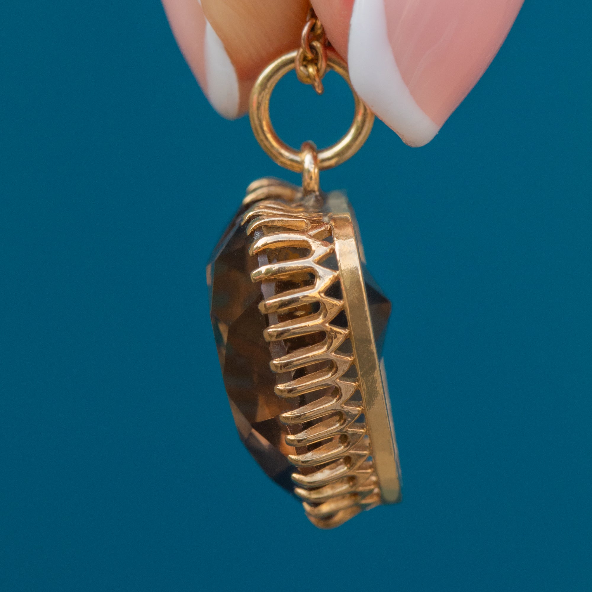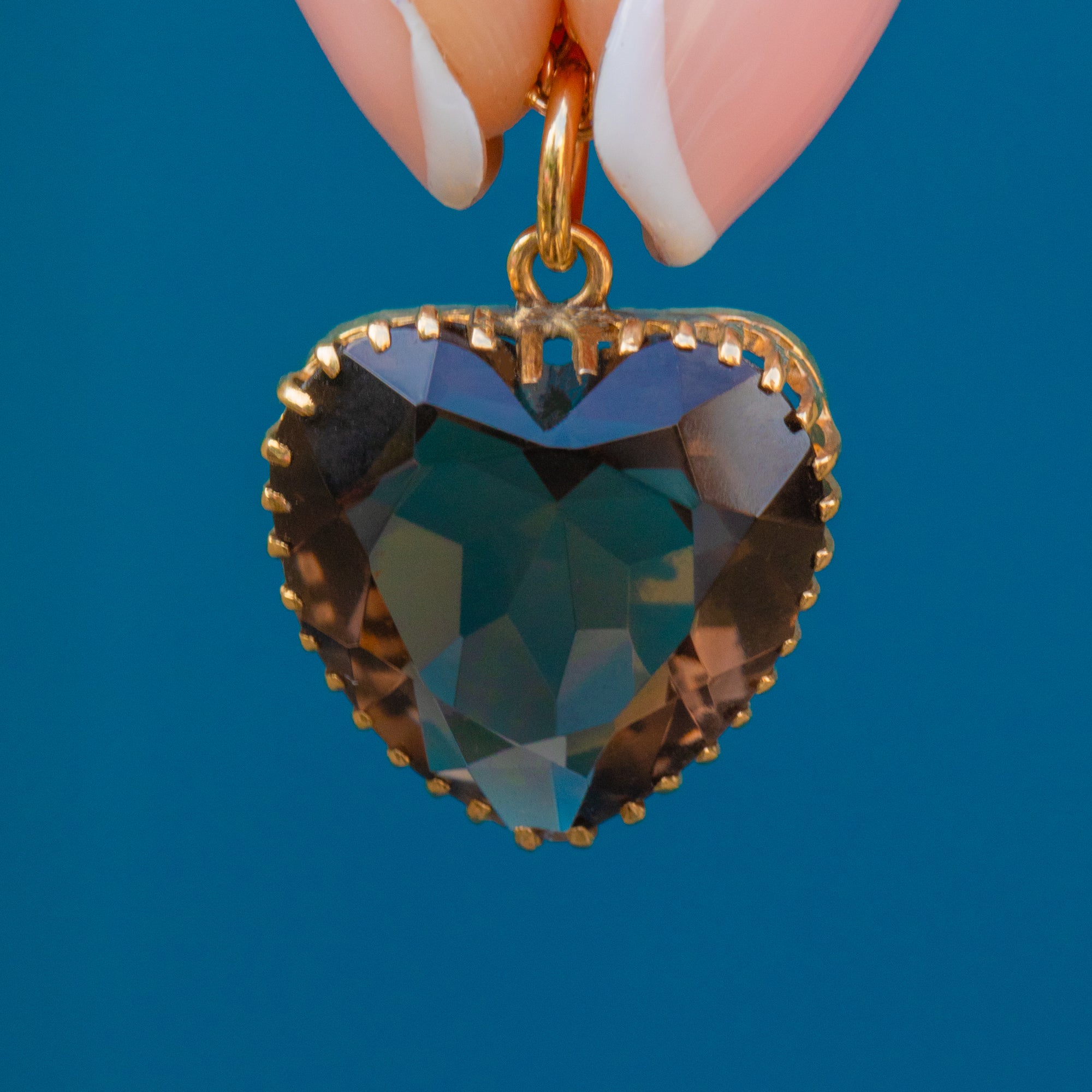 Antique 9ct Gold Smokey Quartz Heart Pendant, 8.75ct