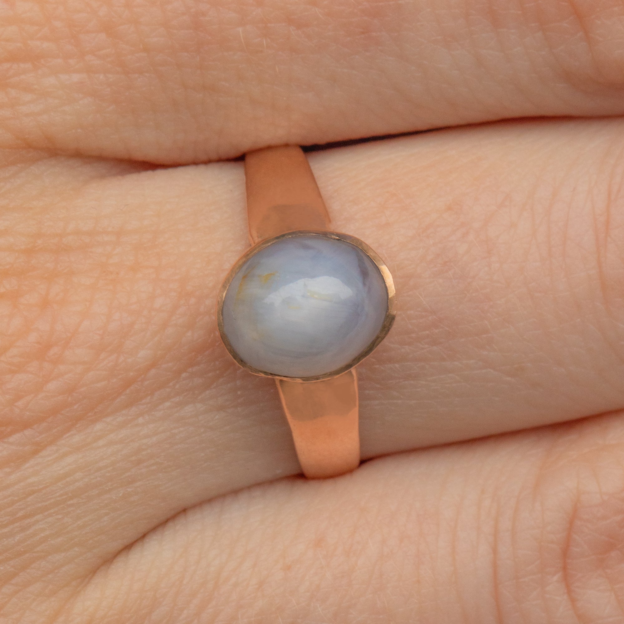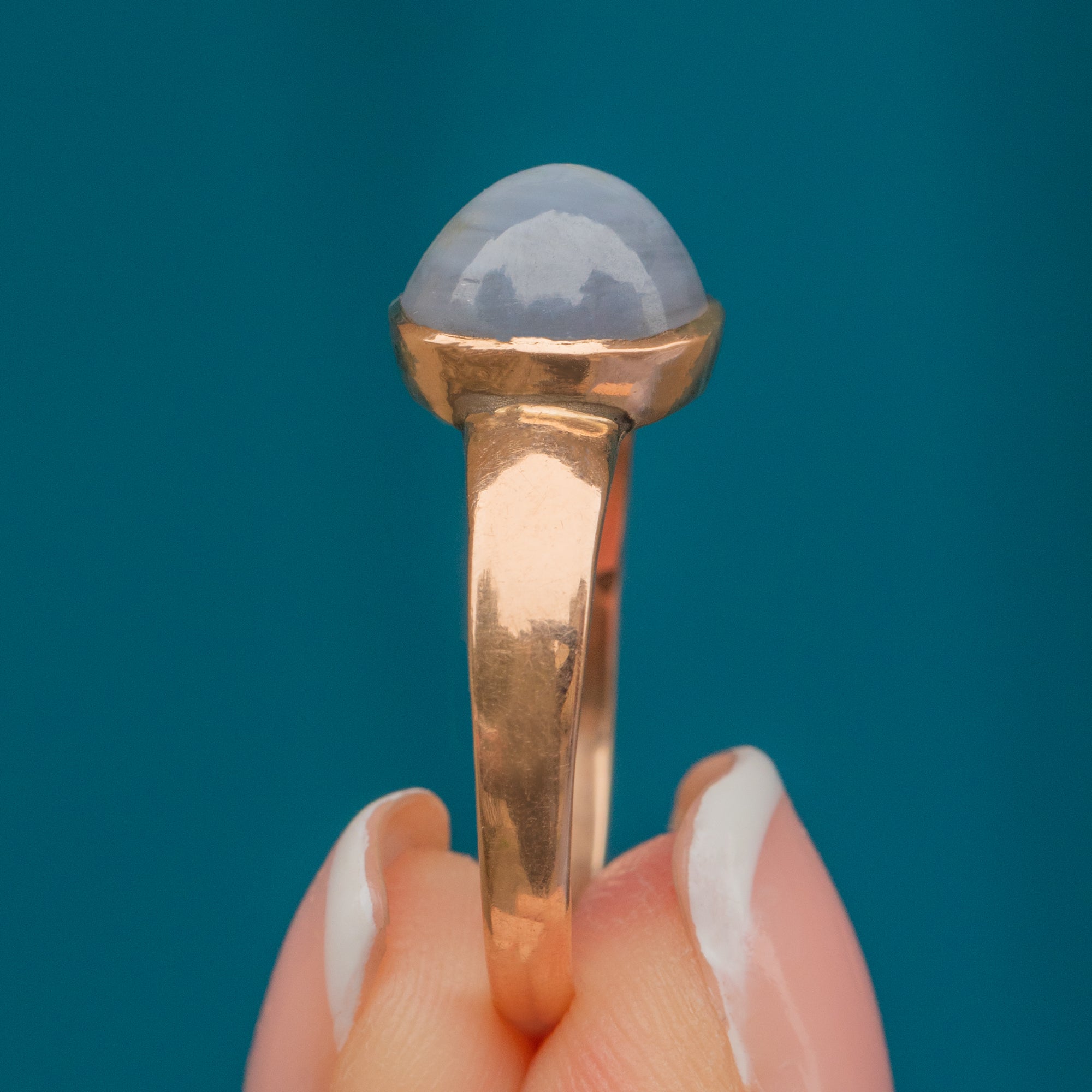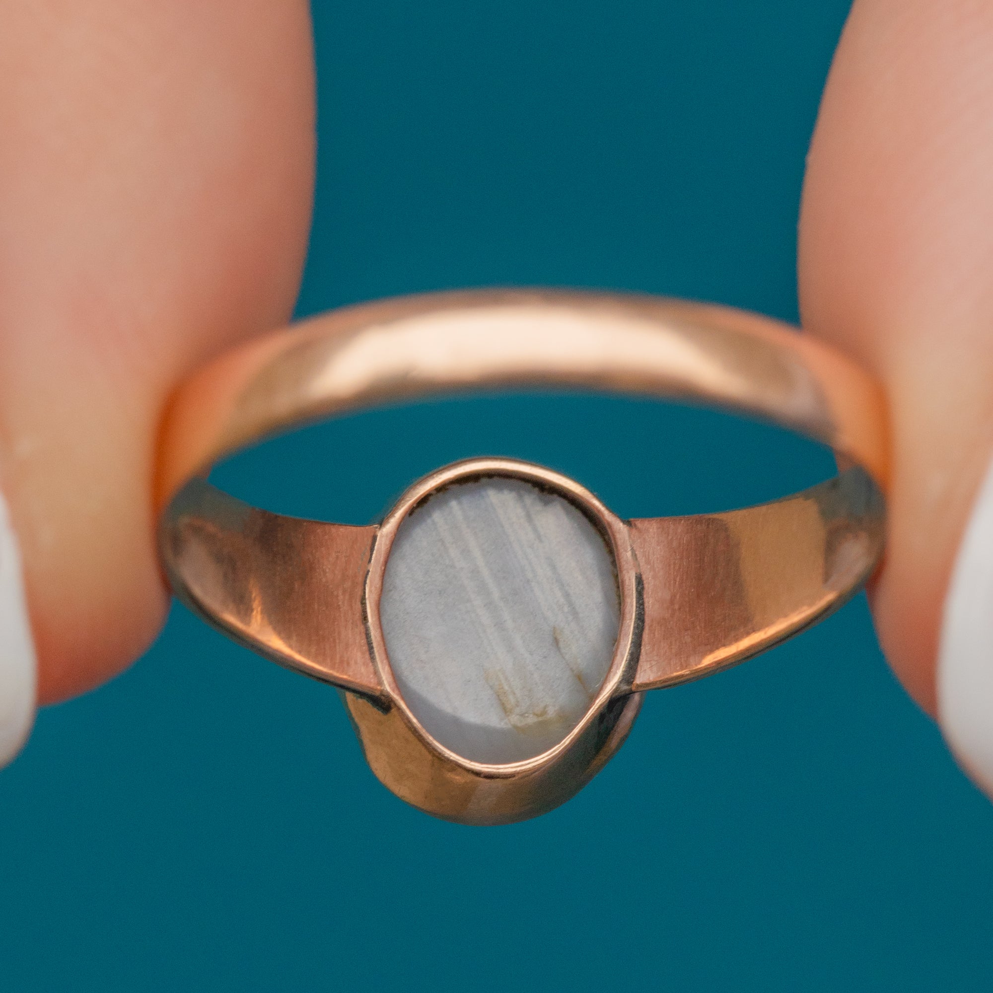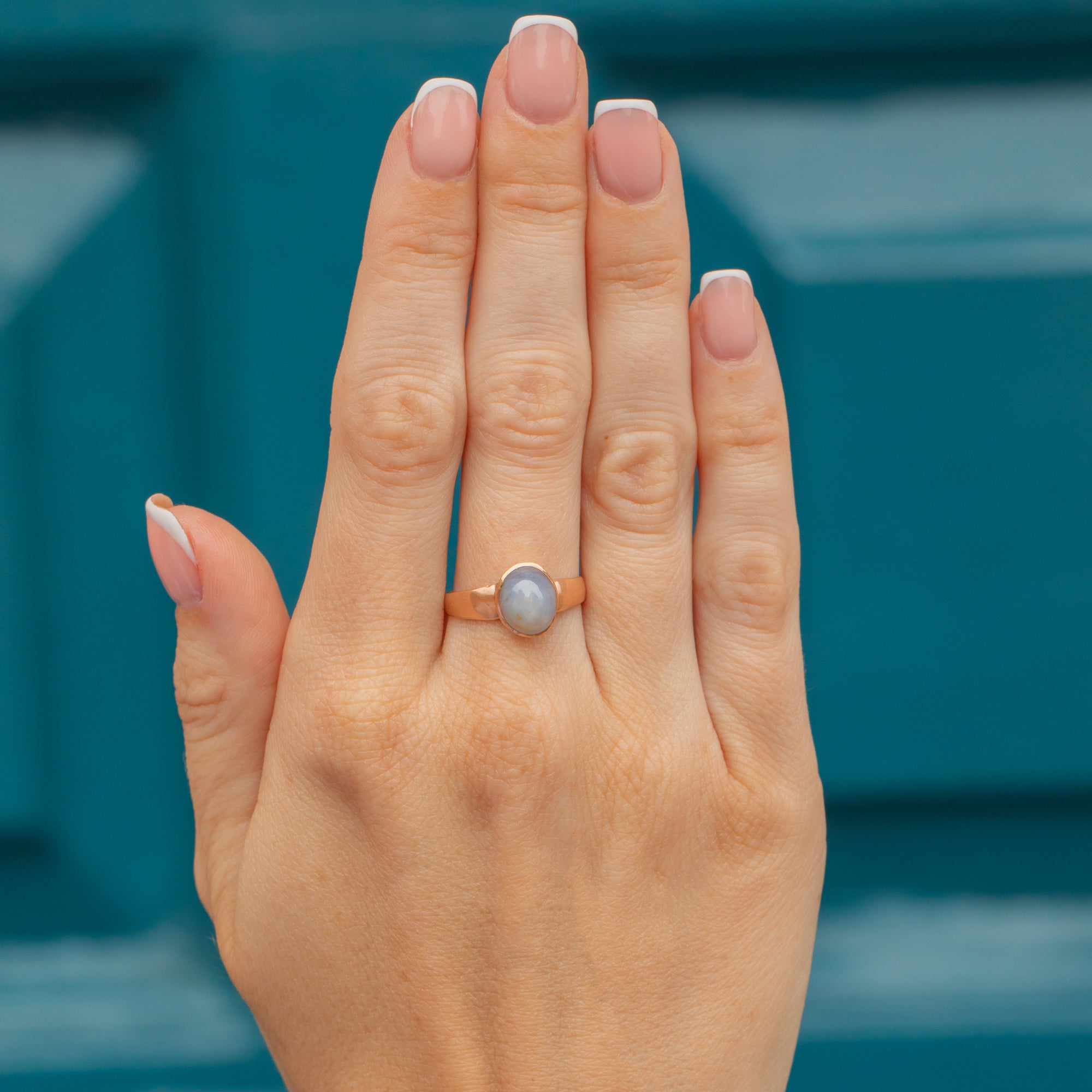 Complimented by a blushed 9ct Gold band for a striking contrast, her thick band makes this Victorian Sapphire ring a feature piece as she adorns your hand. With so much unique beauty, you will never want to take this Gold Sapphire ring off!