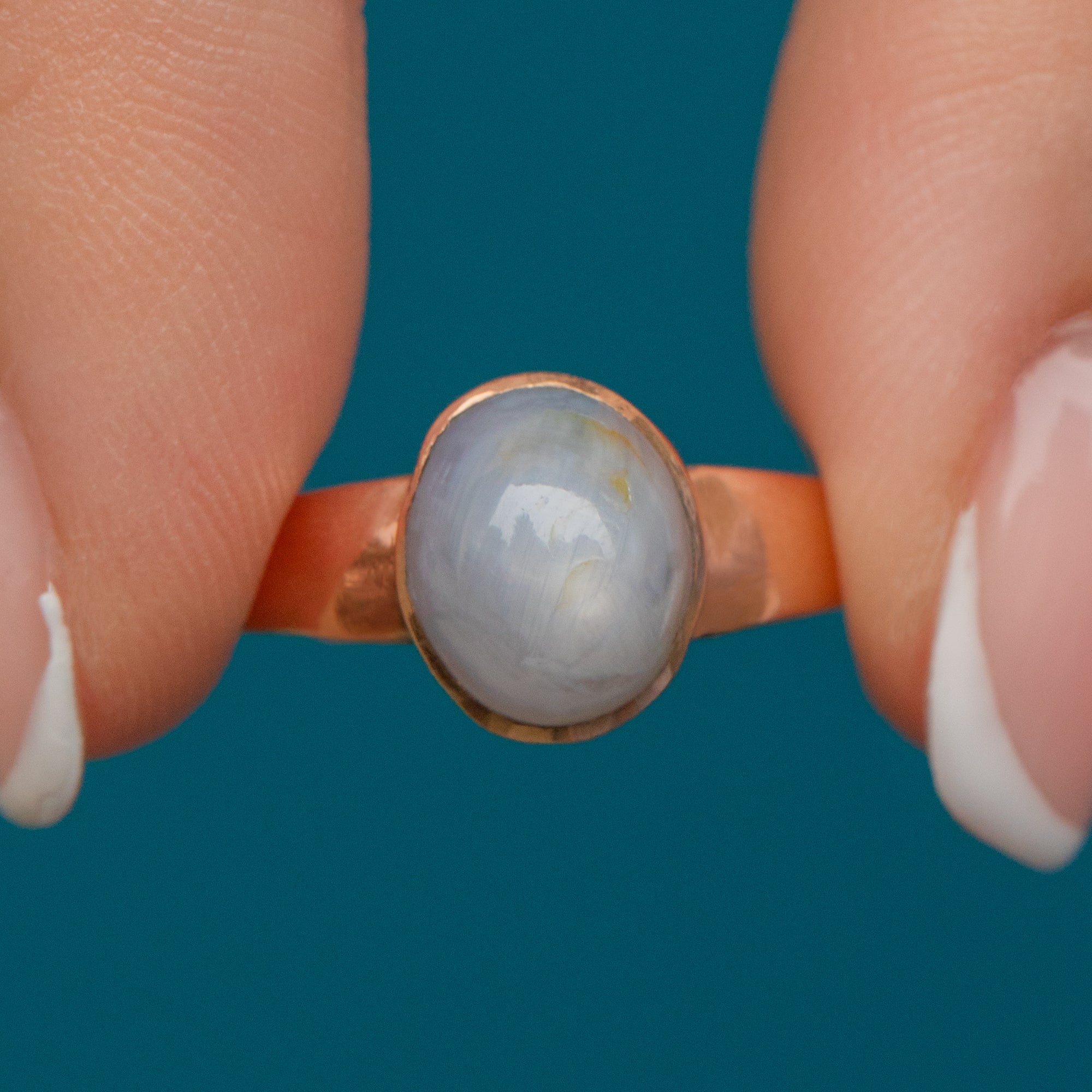 Star Sapphire is 8.5mm long x 7.5mm wide, approx 3.45ct.