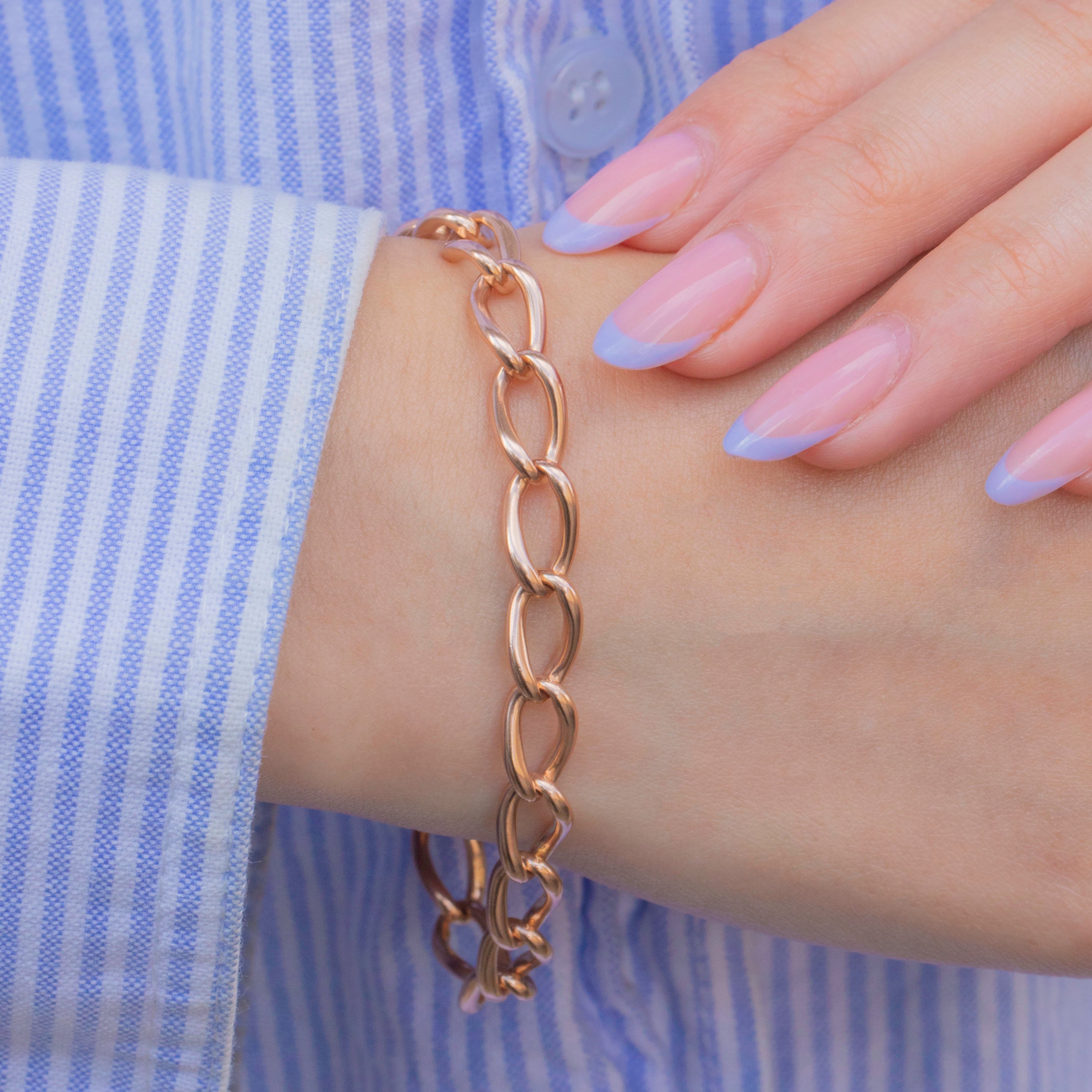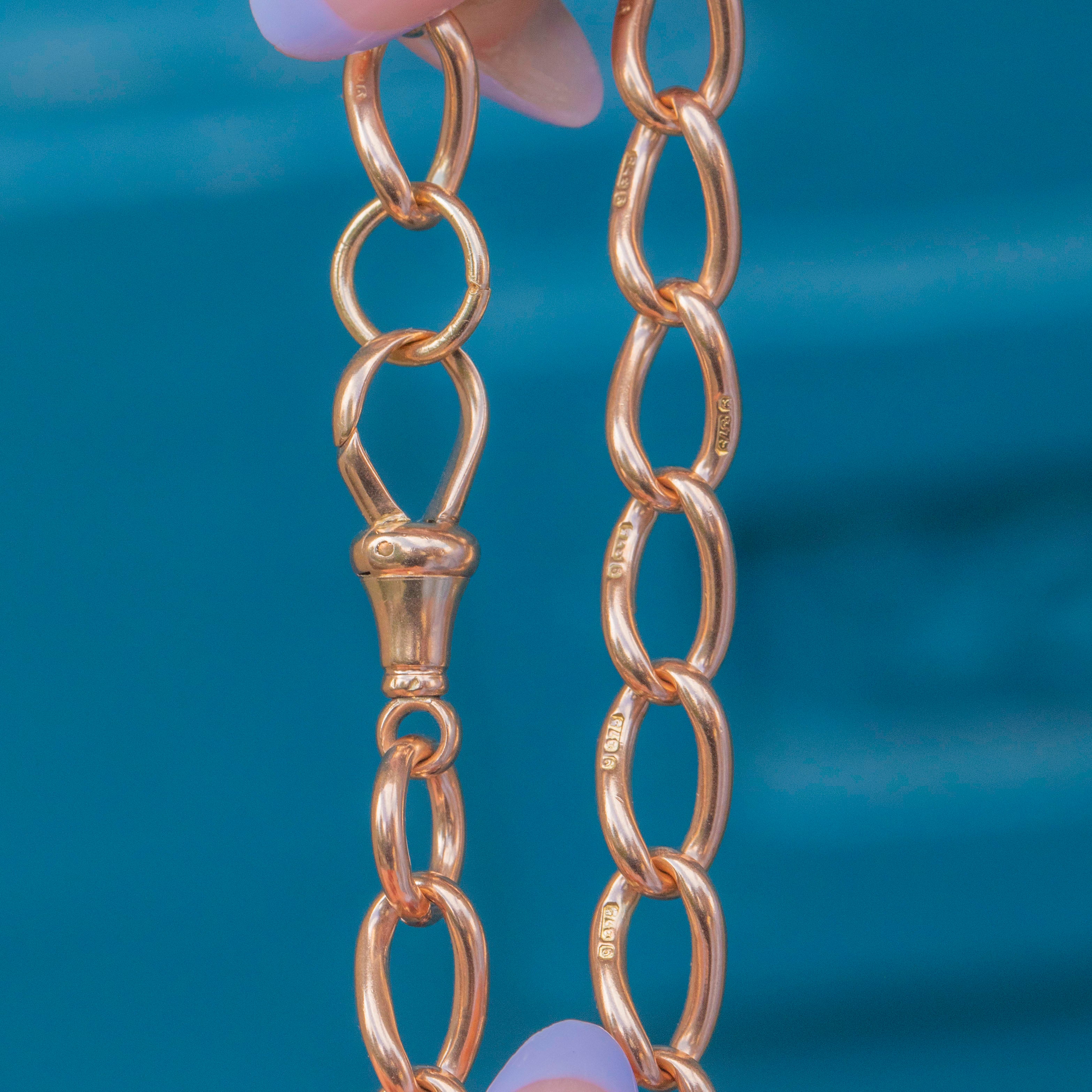 EXCELLENT: This antique 9ct Rose Gold bracelet is in wonderful condition. Each of her links are uniform and secure, and her dog-clip is in perfect working order. With little else to note, she's a must-have!