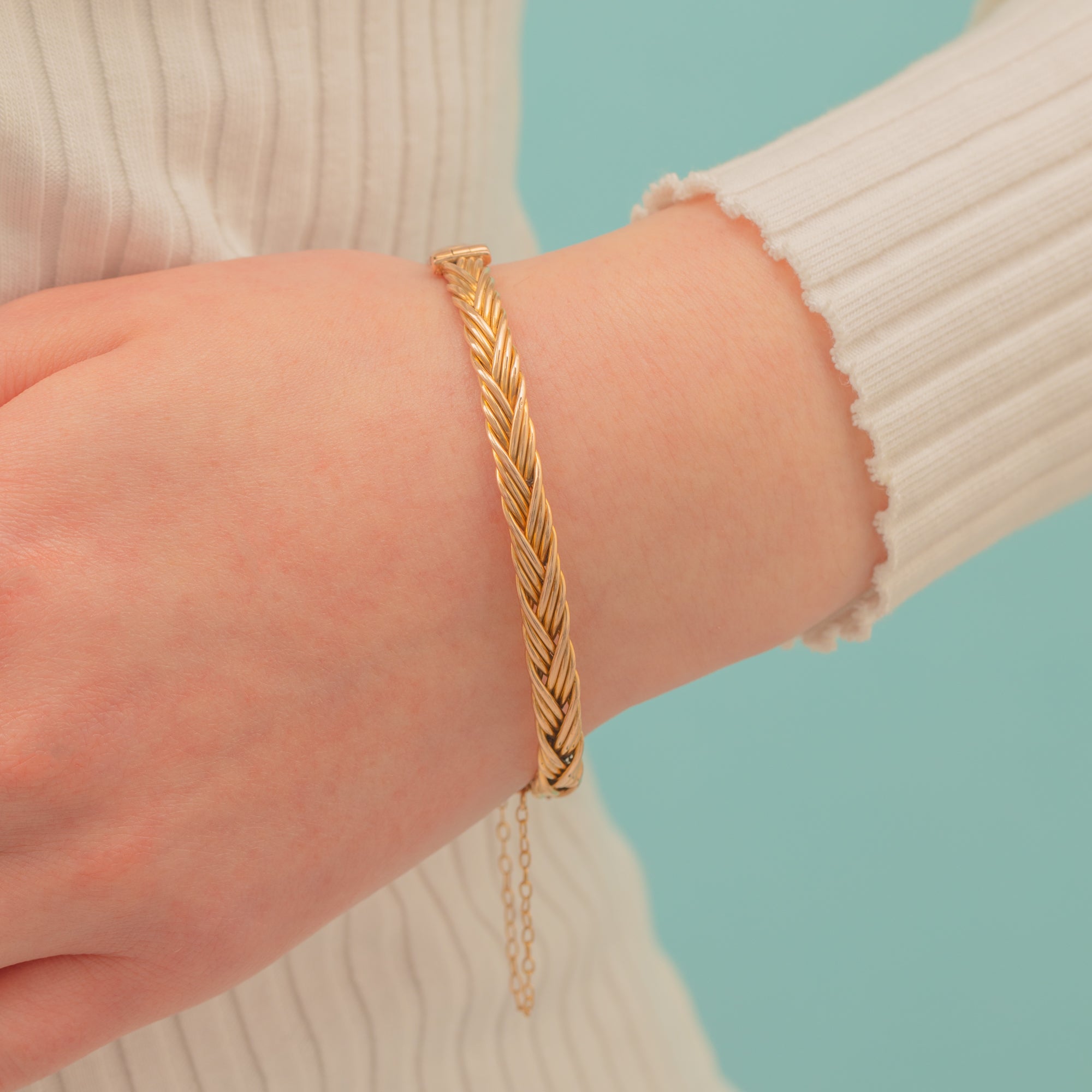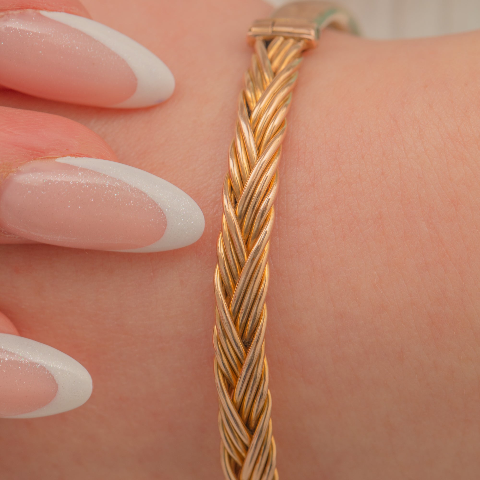 The perfect piece for adding a flash of Gold to your attire, this Victorian bangle sits snugly on your wrist and pairs well with other golden goodies. She features a woven plait design across the front, adding a wonderful texture and depth to the 9ct Gold bangle.