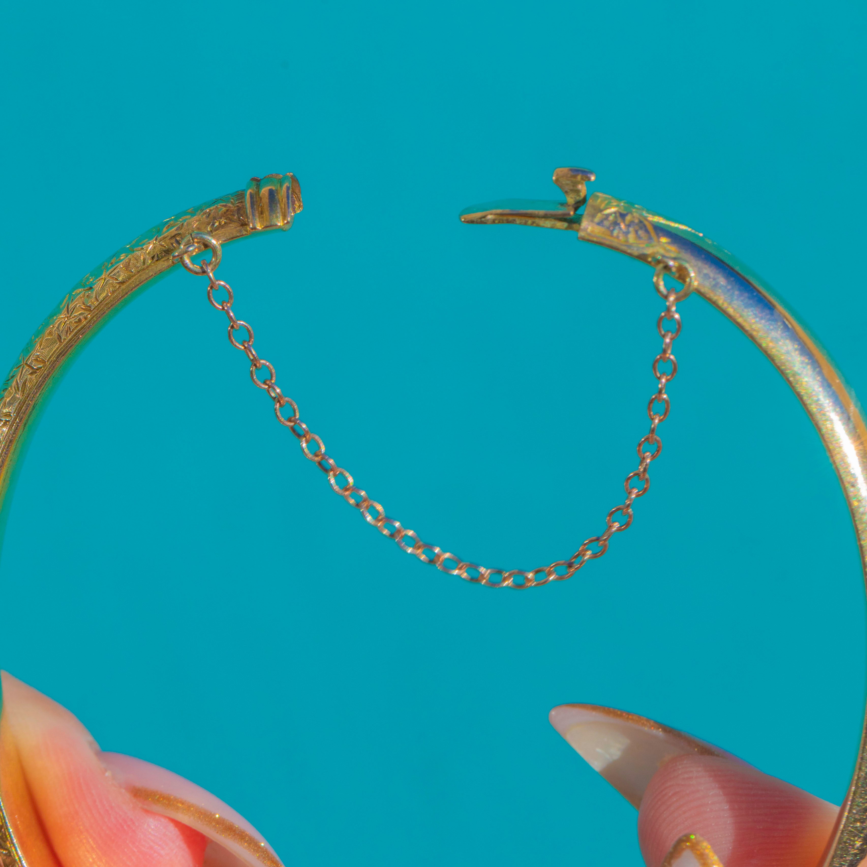 The clasp is stamped with the maker’s mark “S&F”, and the bangle’s comfortable oval shape makes it perfect for everyday wear. A timeless and feminine antique piece that layers beautifully with other bracelets.