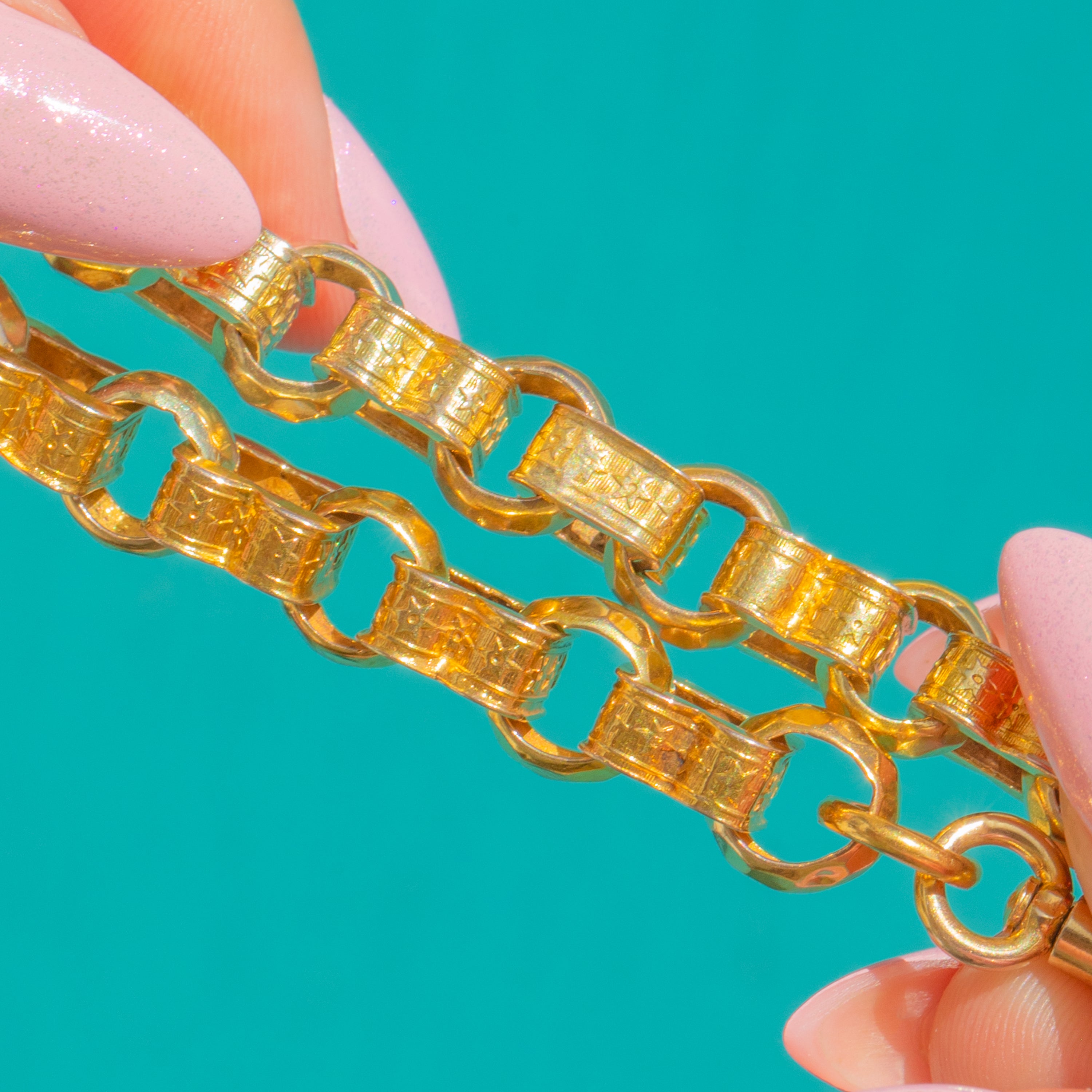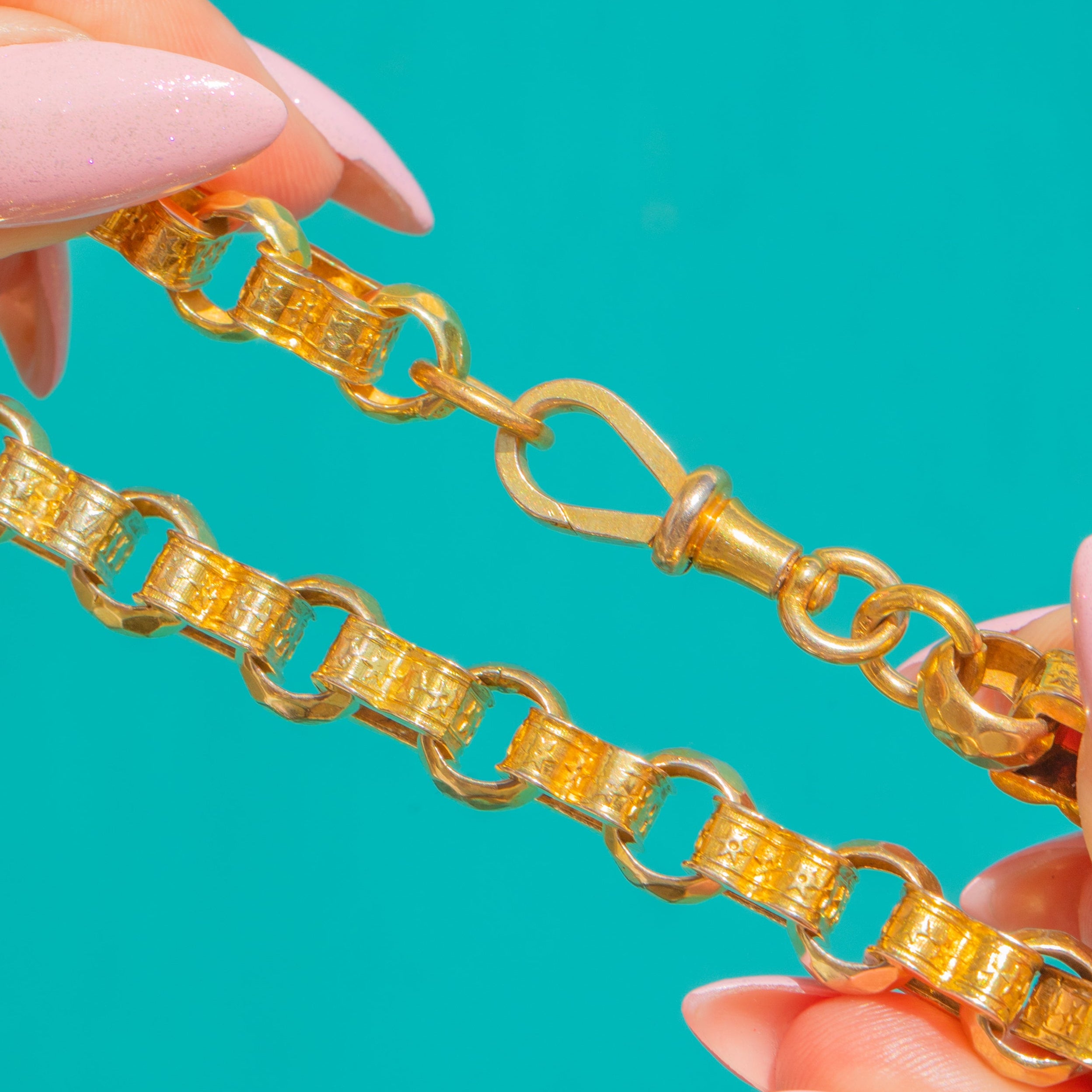 EXCELLENT: The 9ct Gold links retain a bright polish with minimal surface wear. The dog clip fastens securely and the articulated links are in excellent order with no kinks or thinning visible. No evidence of later restoration.