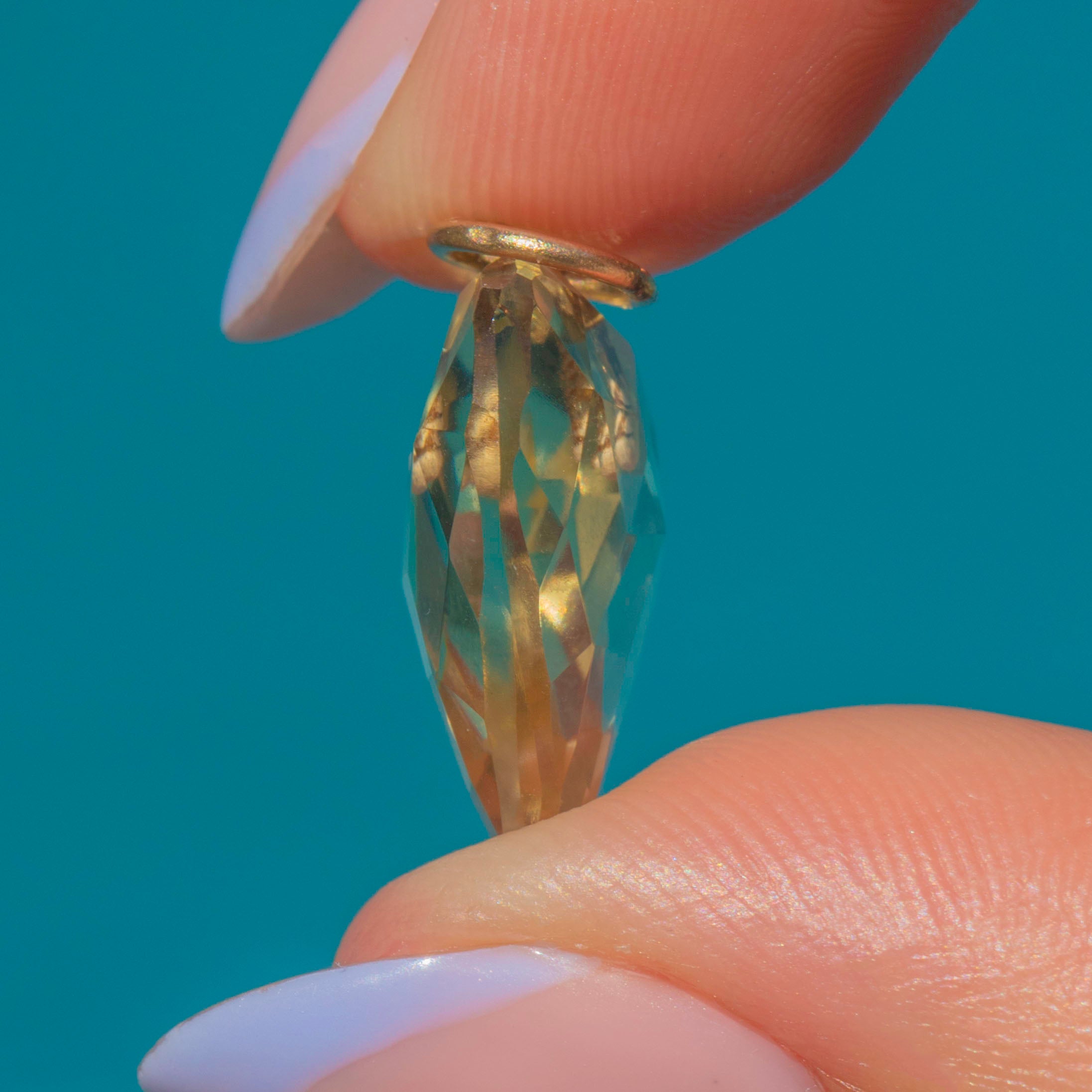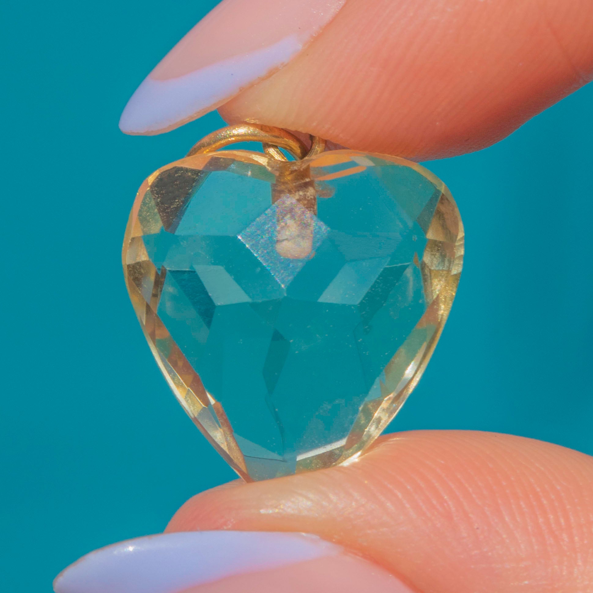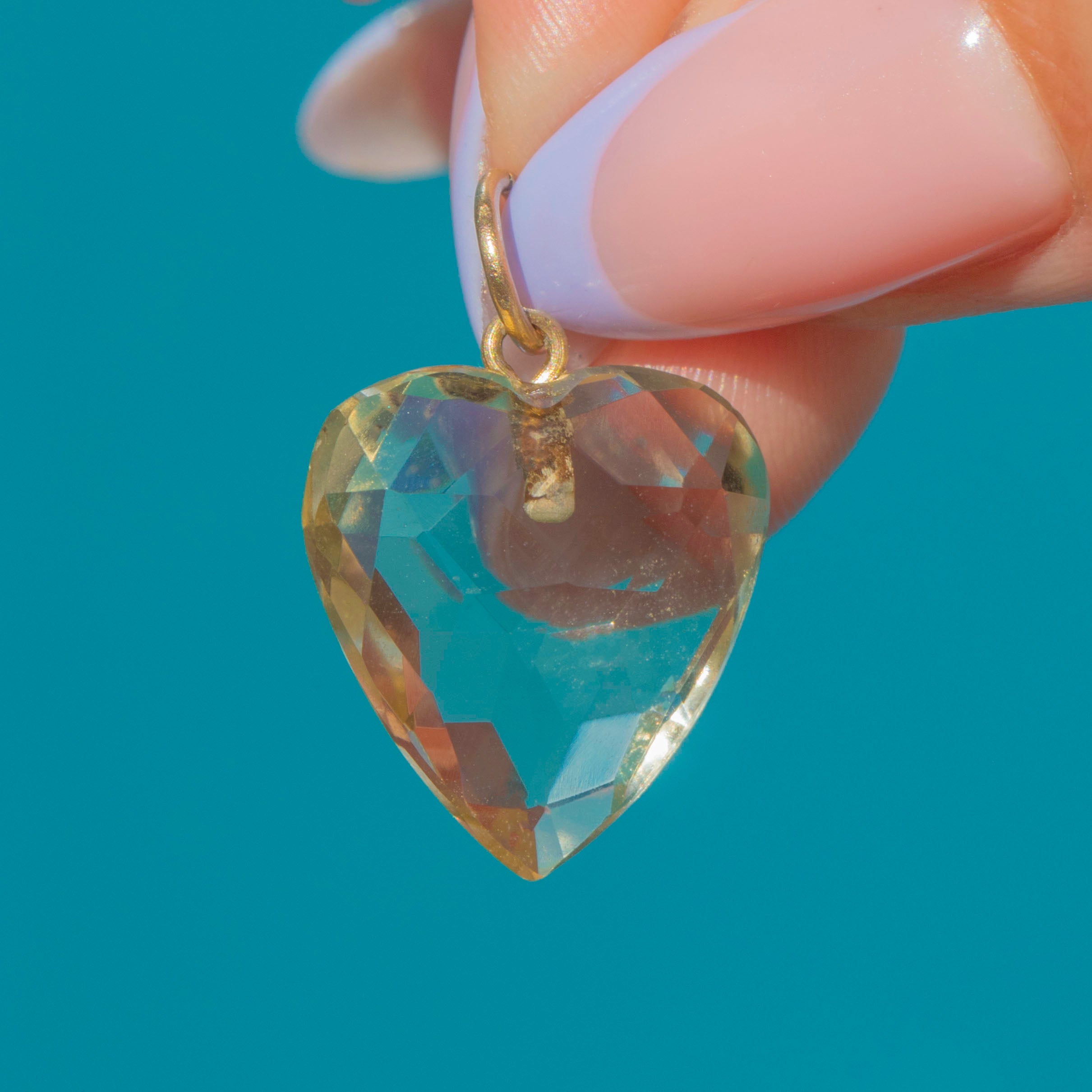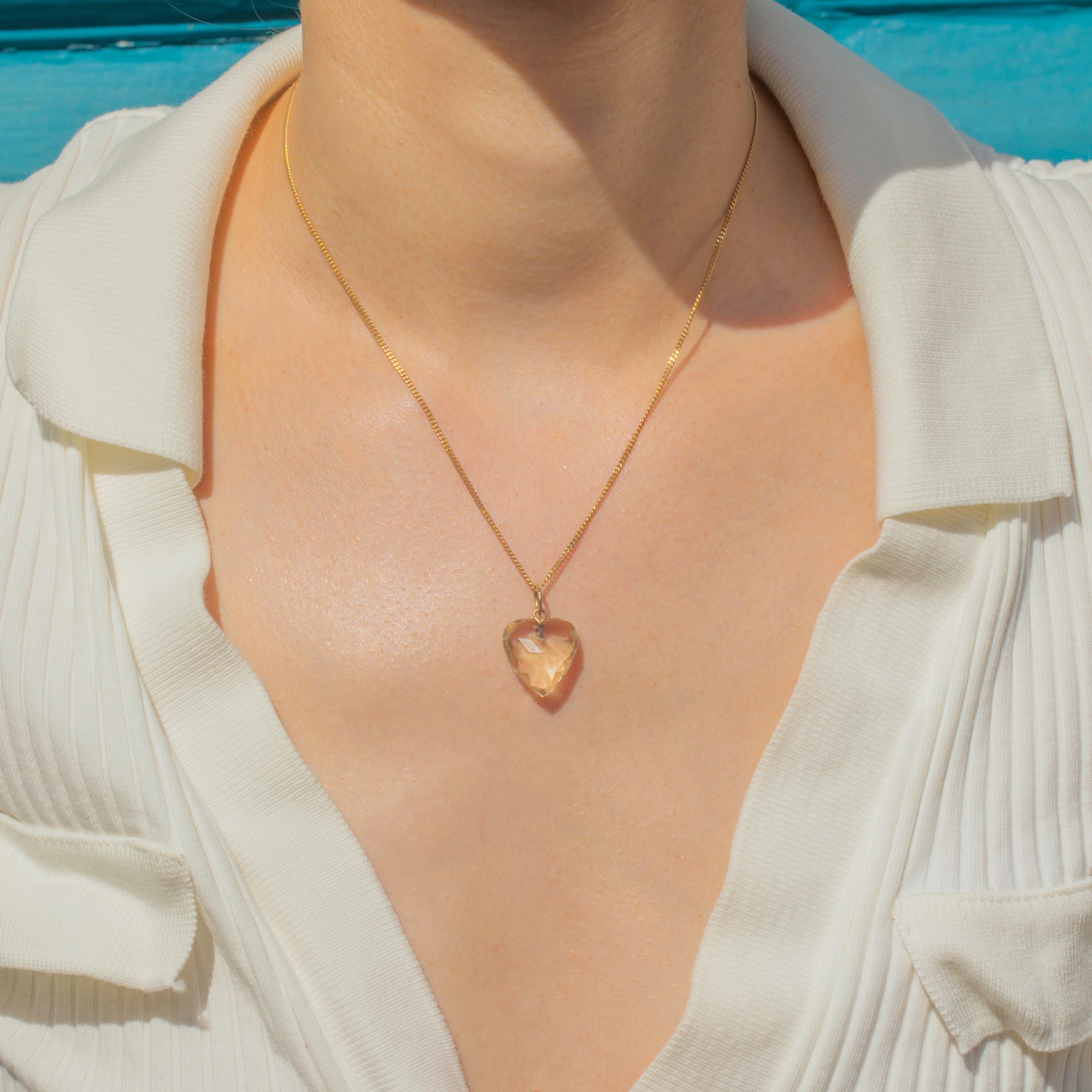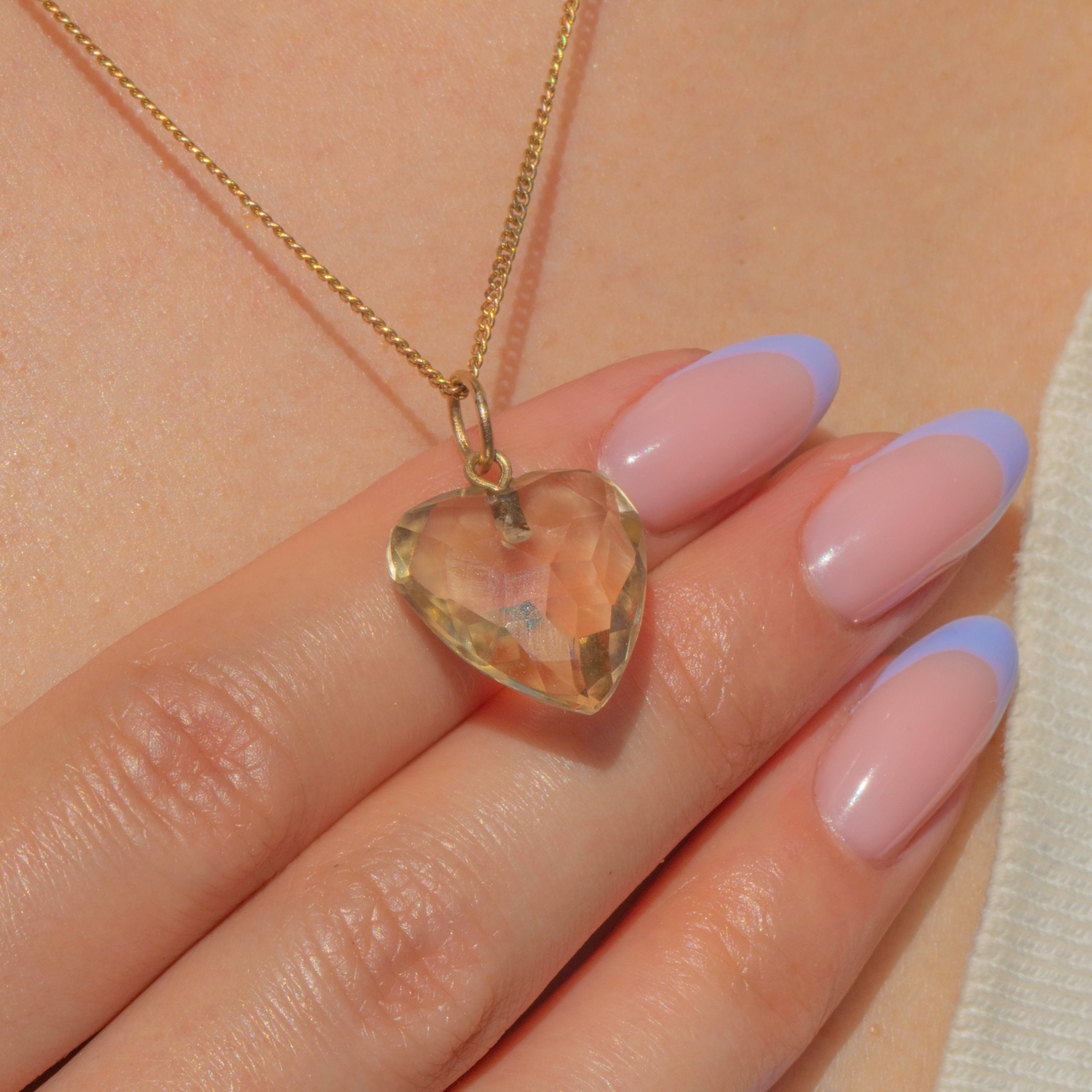The cutest antique Citrine heart charm! Evoking romantic allure, her 7.40ct Citrine radiates sunny hues from the crisp cut facets, making her the warmest heart you will have laid eyes on. With her sun-kissed 9ct Gold jump ring, she is sure to put a smile on your face with her warming, mellow tones.