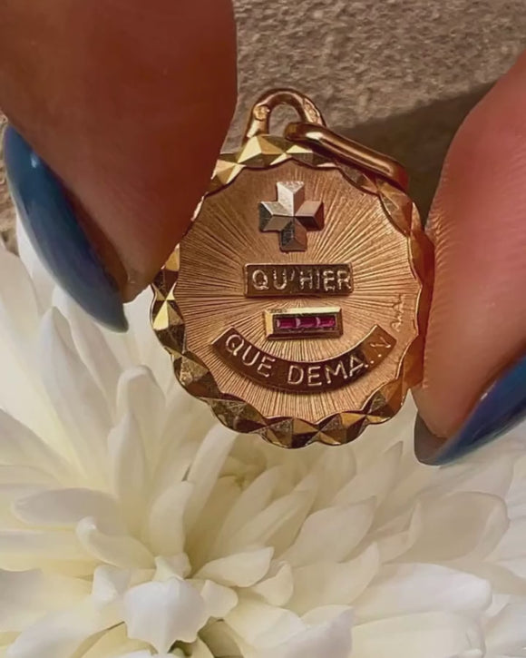 Antique French 18ct Gold Augis Love Token Medallion Pendant
