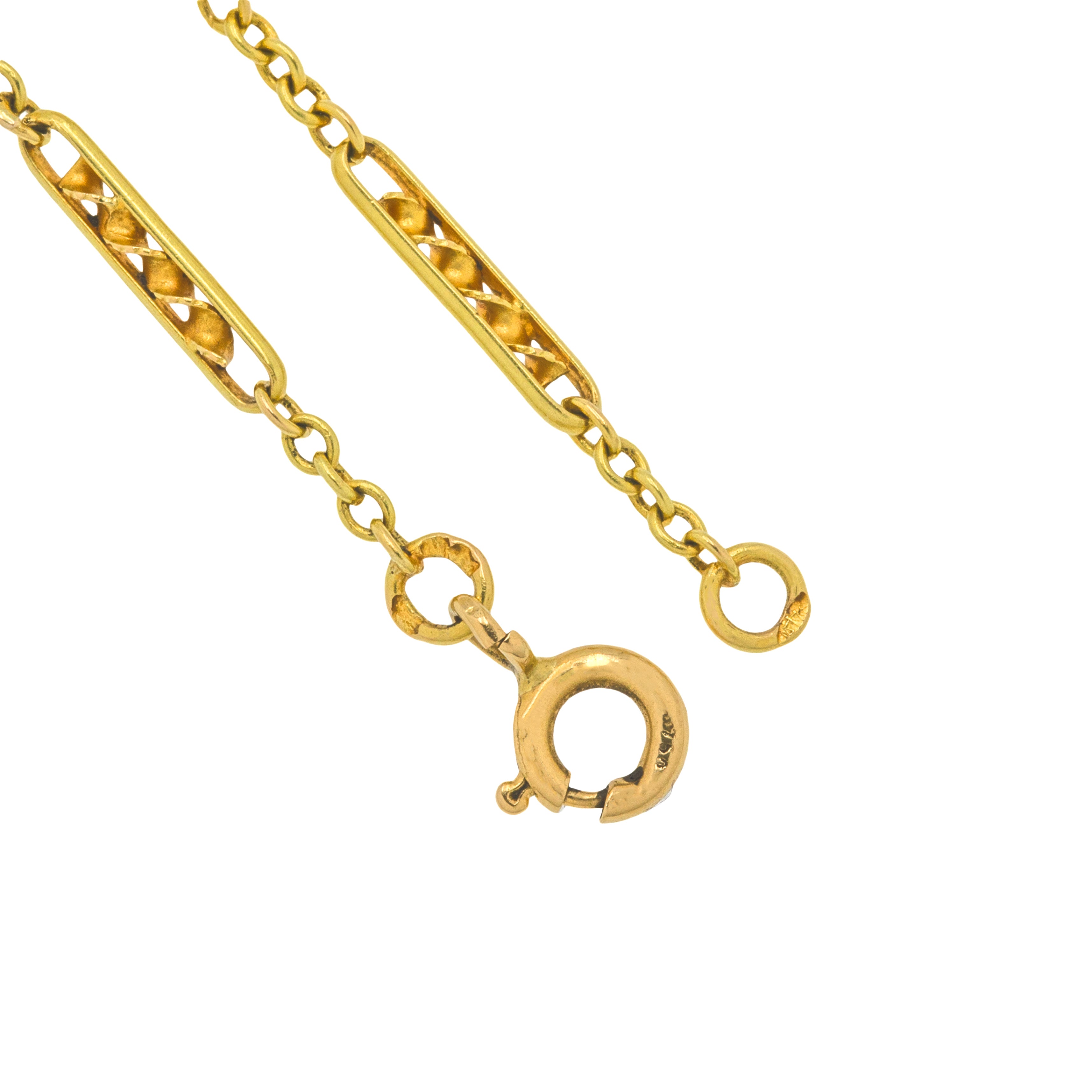 STAMPS: French Eagles head on link next to bolt-ring. 750 on bolt-ring.