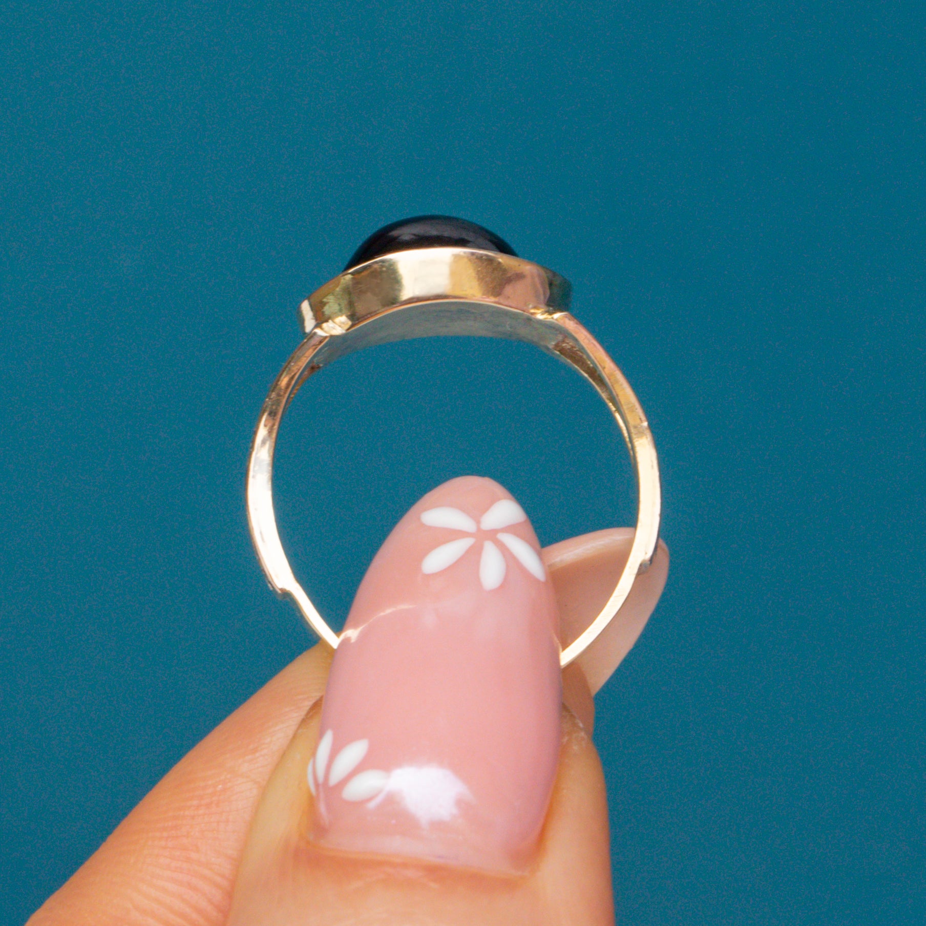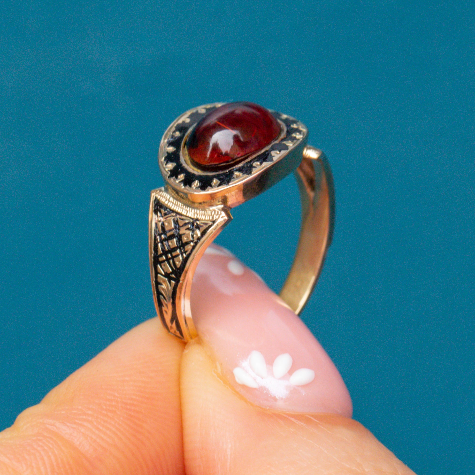 Antique 10ct Gold Garnet Cabochon Black Enamel Ring, 1.65ct