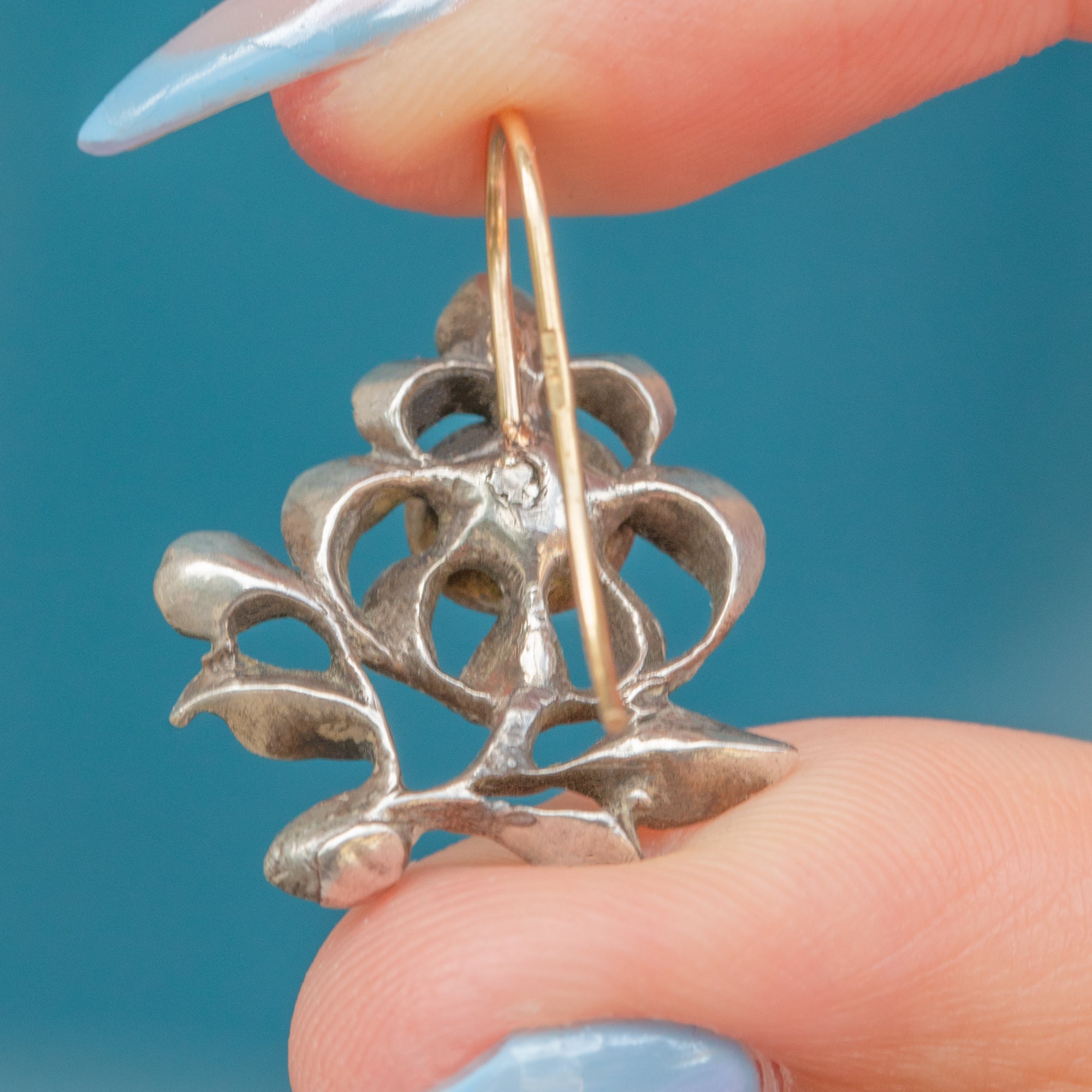 These Georgian giardinetti earrings will add a whimsical accent to your lobes! Finely crafted from Silver, the blooming flowers are inlaid with natural, unheated Rubies and softly glimmering rose-cut Diamonds, combining with the openwork design to create a delicate and feminine pair.