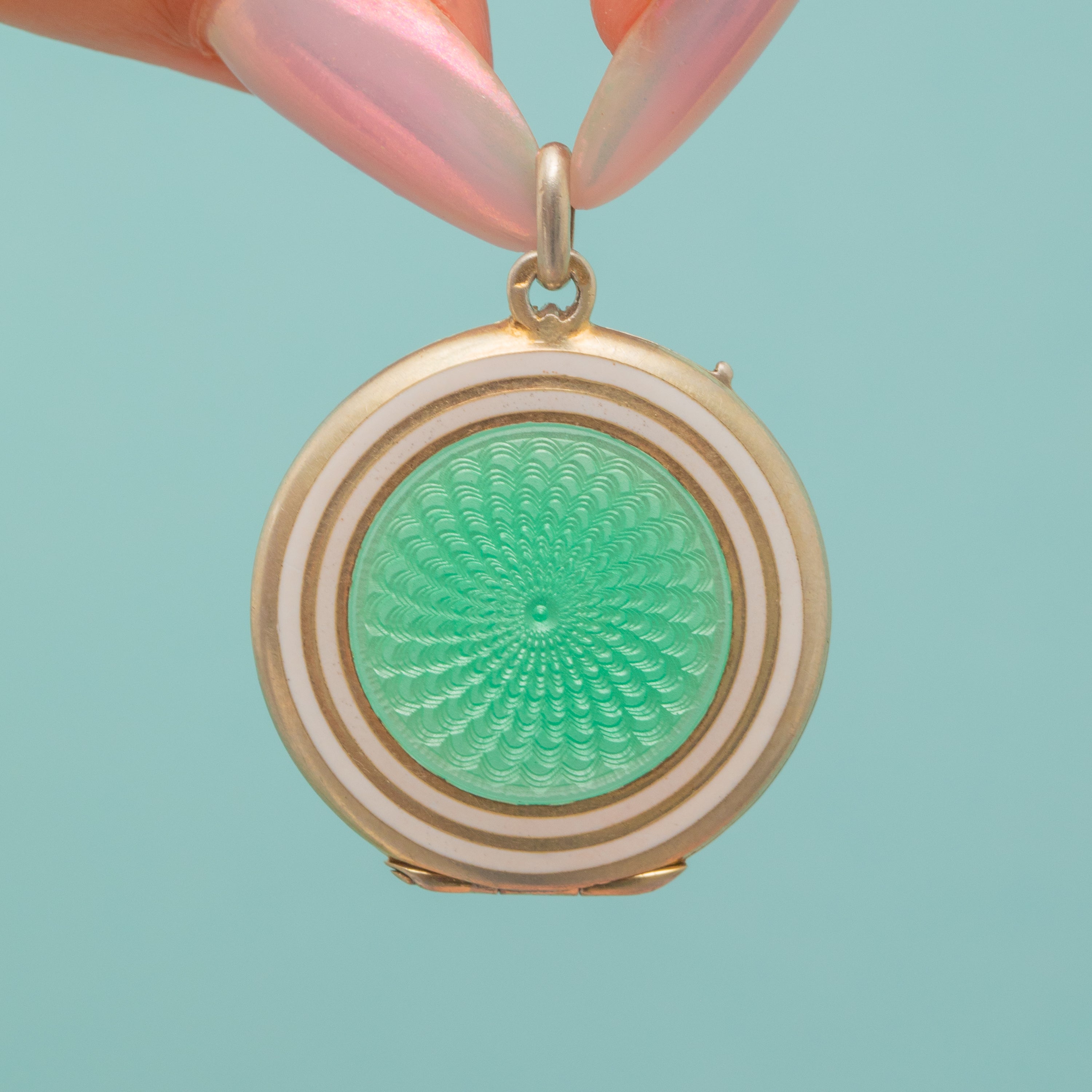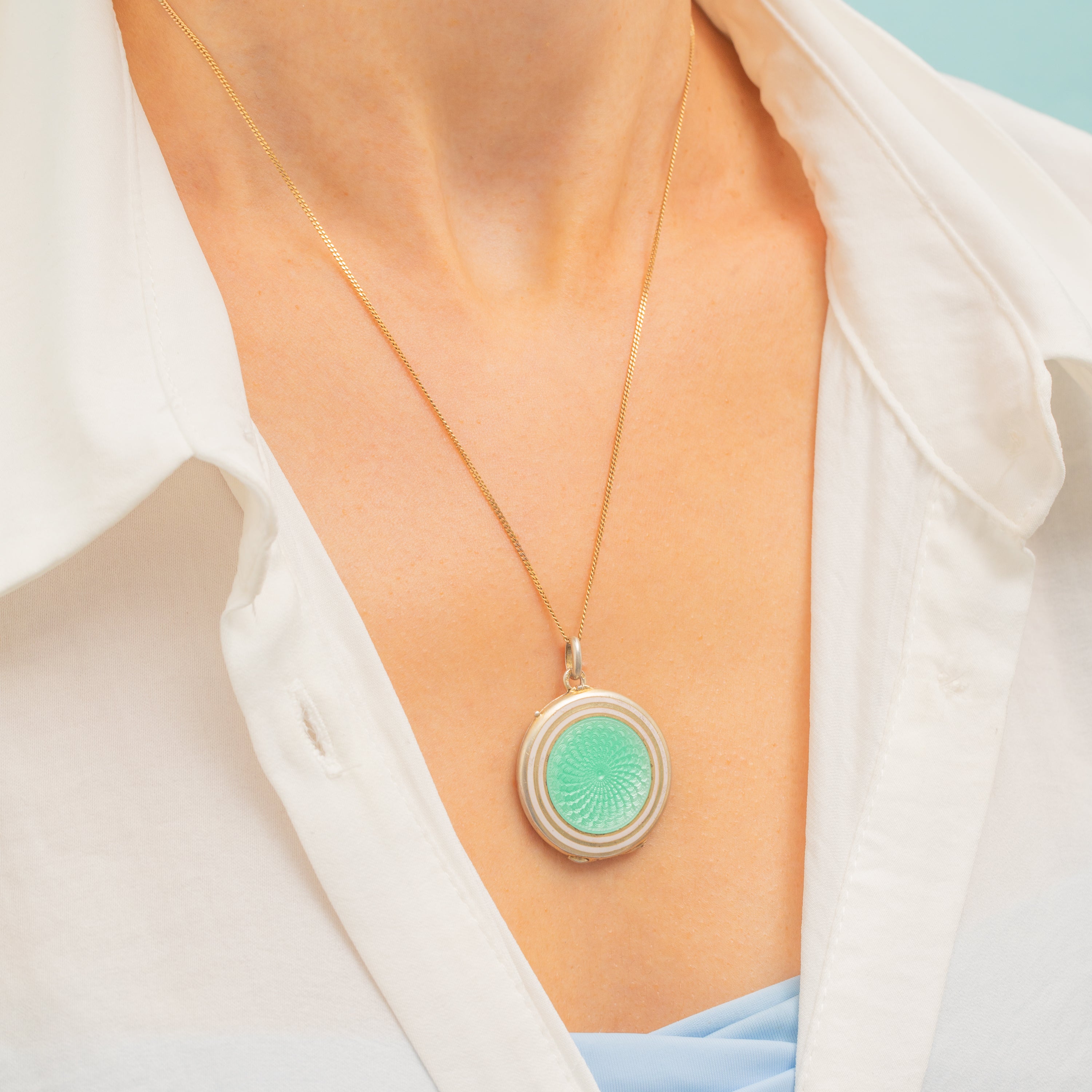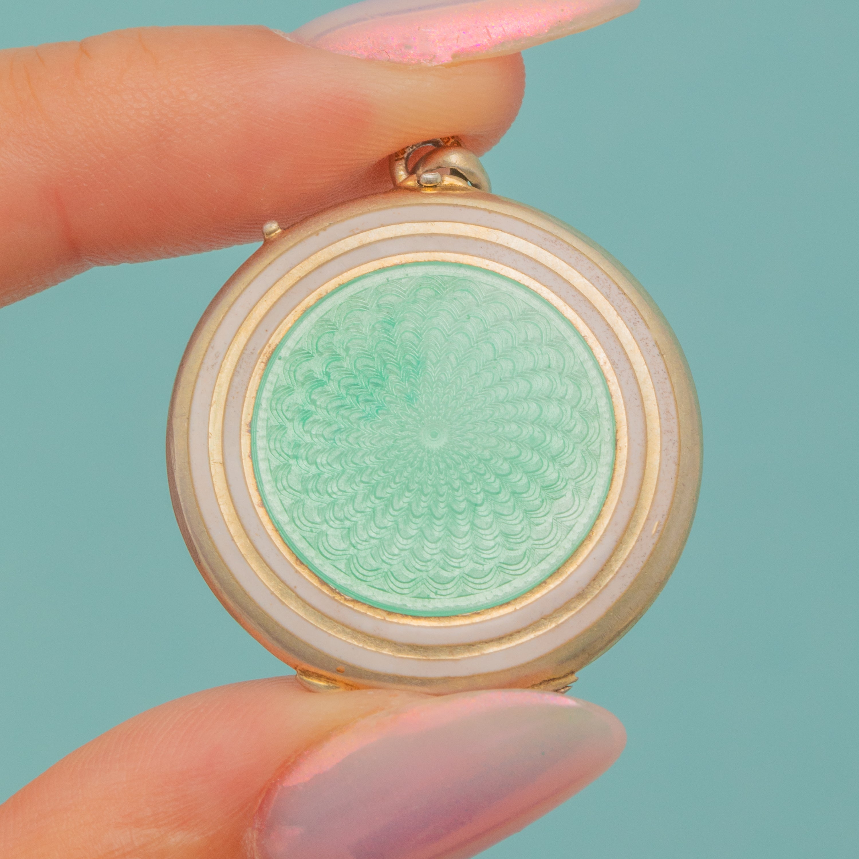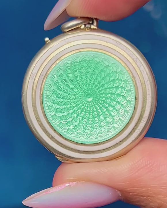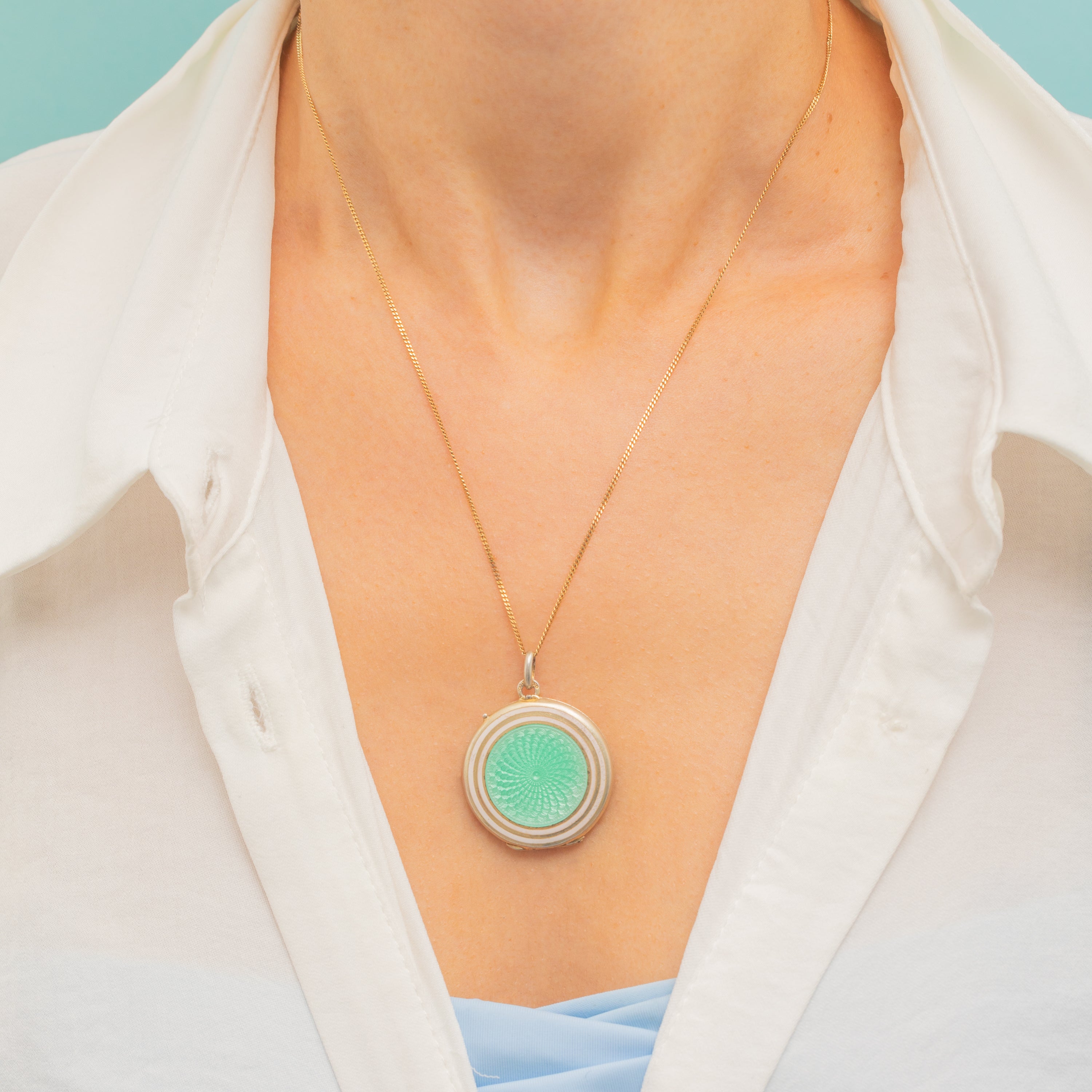 This Art Deco Silver mint green Guilloché Enamel locket is the perfect piece to brighten up your collection!