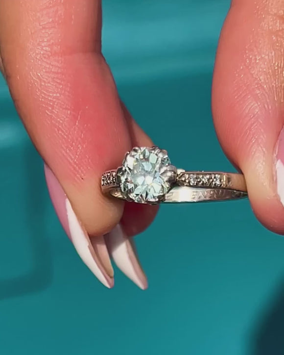 A classic Art Deco solitaire ring featuring an Old European Cut Diamond of impressive size! The perfect 1.00ct VS clarity antique Diamond set in a refined solid Platinum mount.
