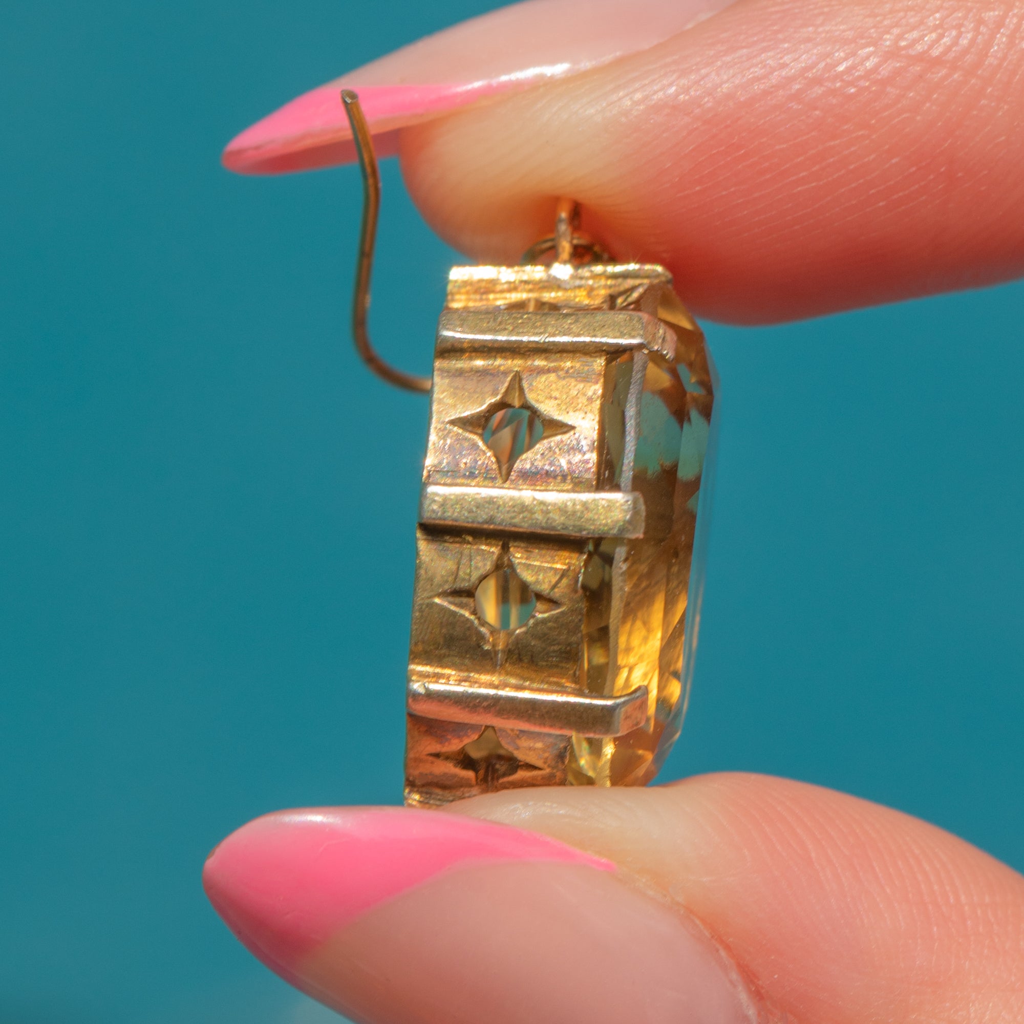 This pair will sit snug just below the earlobe and is the perfect addition to add a touch of glamour to any outfit. So chic, these Victorian Citrine earrings are sure to become your new go-to pair!