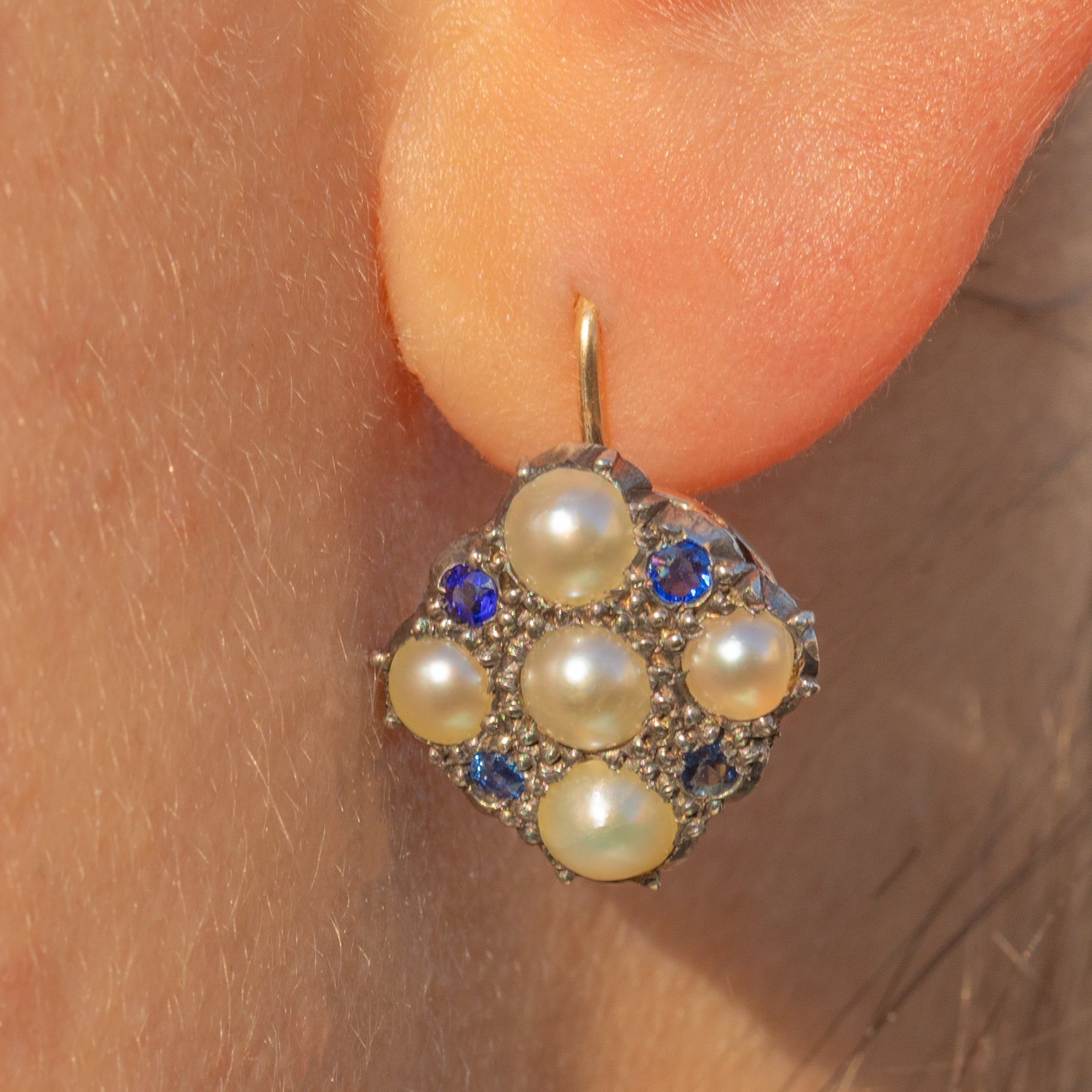 Antique Tanzanite Pearl Cluster Earrings, 9ct Gold Hooks