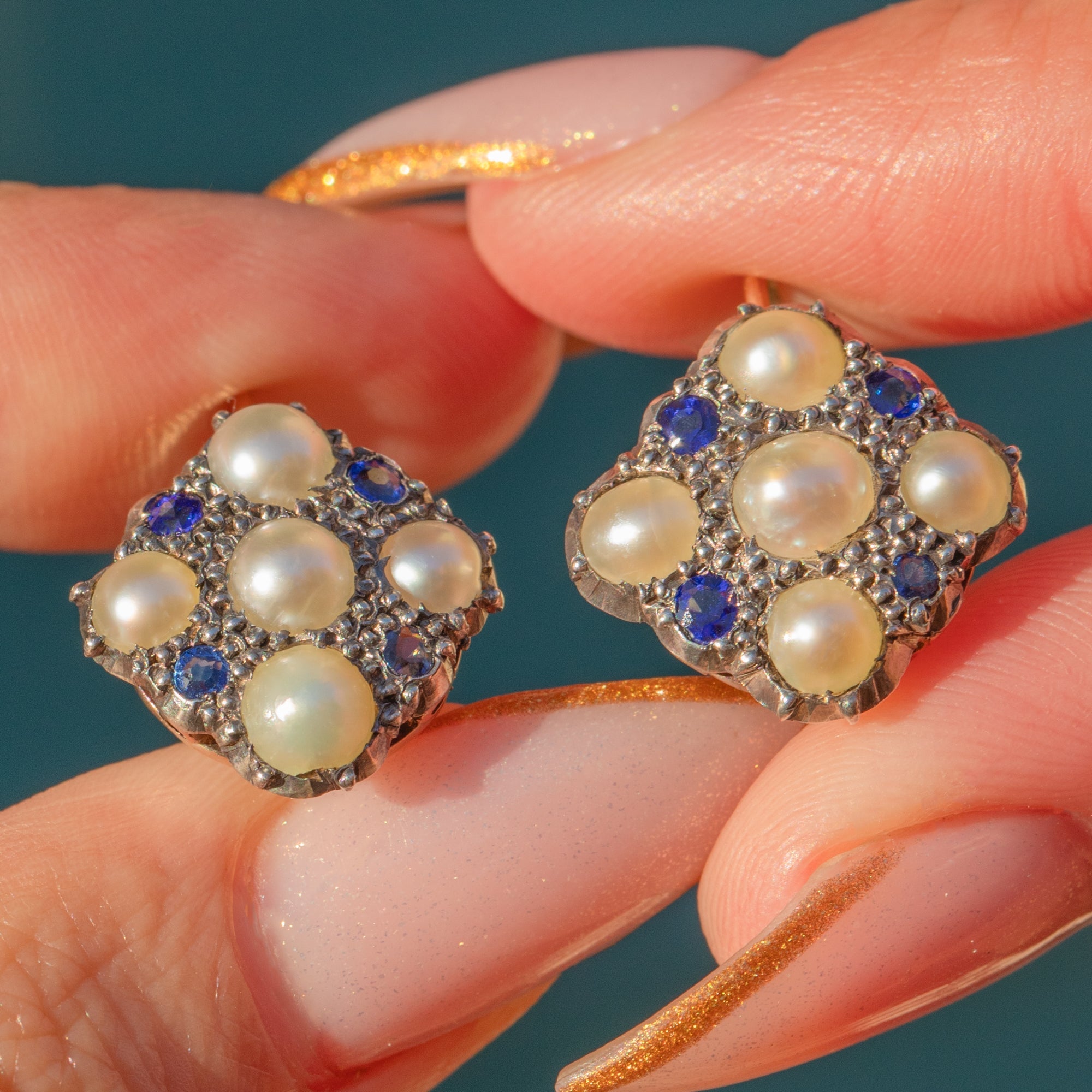 Displayed in Silver settings with 9ct Gold hooks, they have a flattering drop and a delicate antique presence on the ear. Light, wearable and full of Edwardian charm, they make a feminine and timeless addition to any antique jewellery collection.