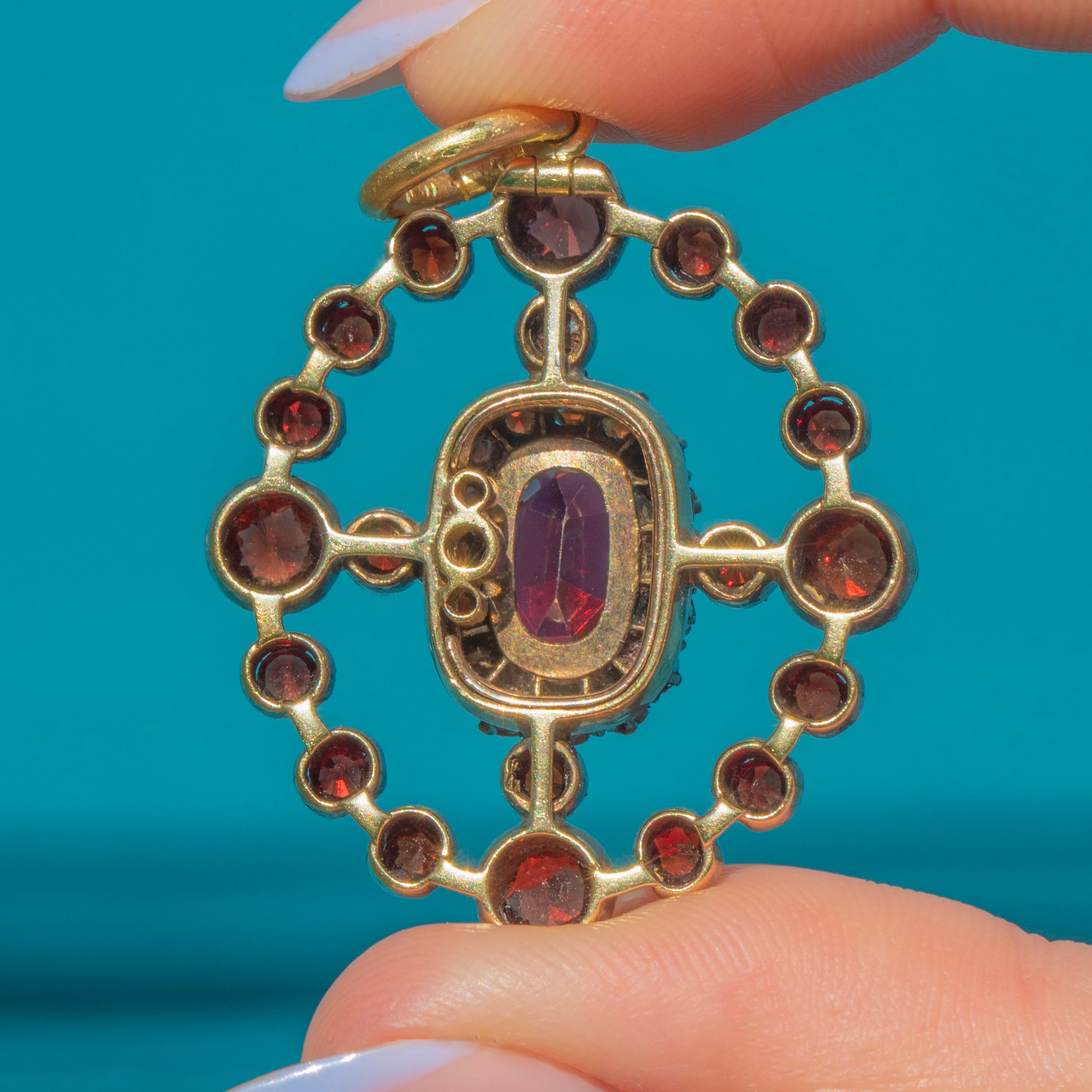Antique Victorian Garnet Cluster Pendant 8.45ct