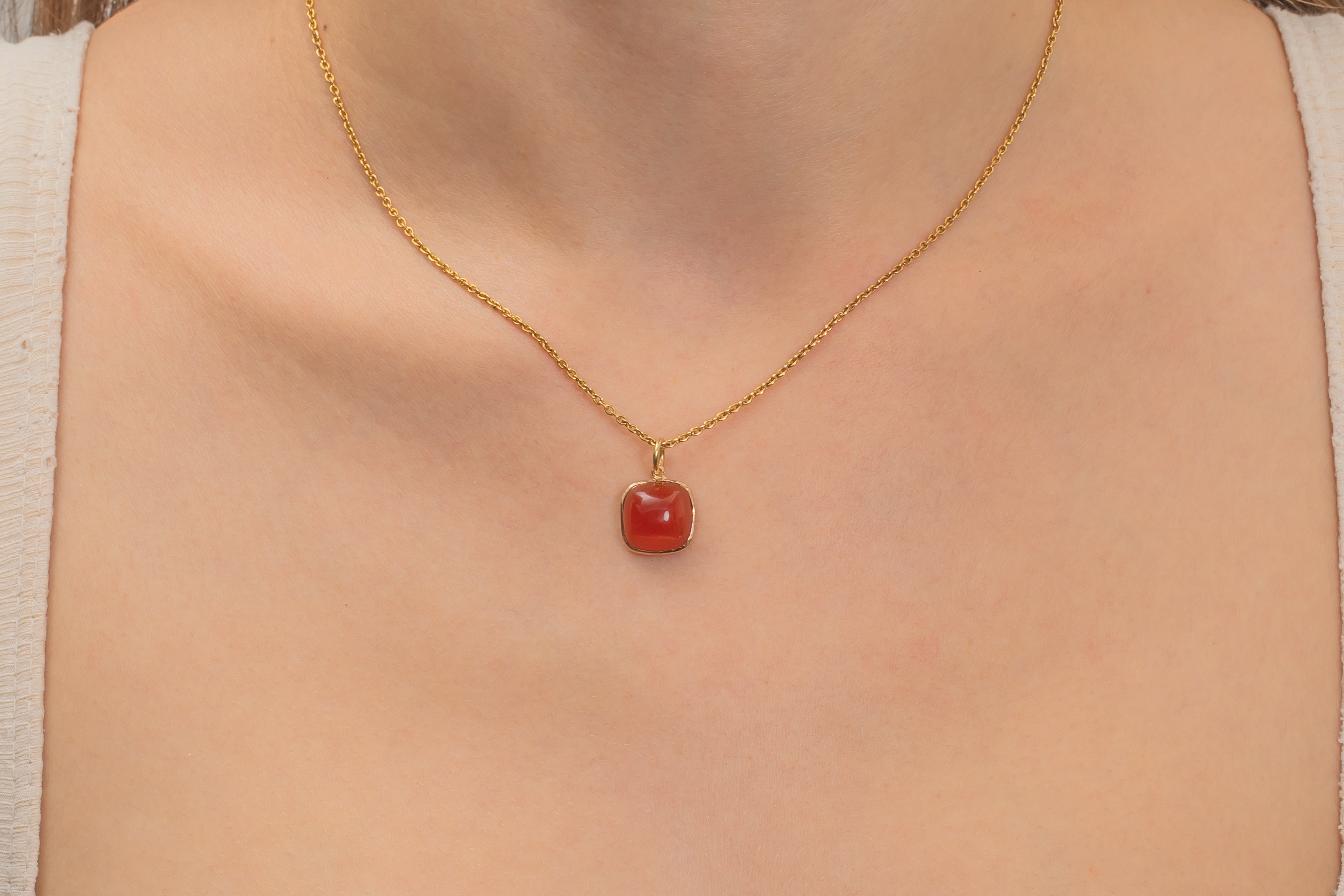 The antique Carnelian is encased in buttery 14ct Gold bezel setting, two highly desirable characteristics within antique jewellery. Said to bring warmth, this Art Deco Carnelian pendant is the perfect pendant to see you through those chilling winter months!