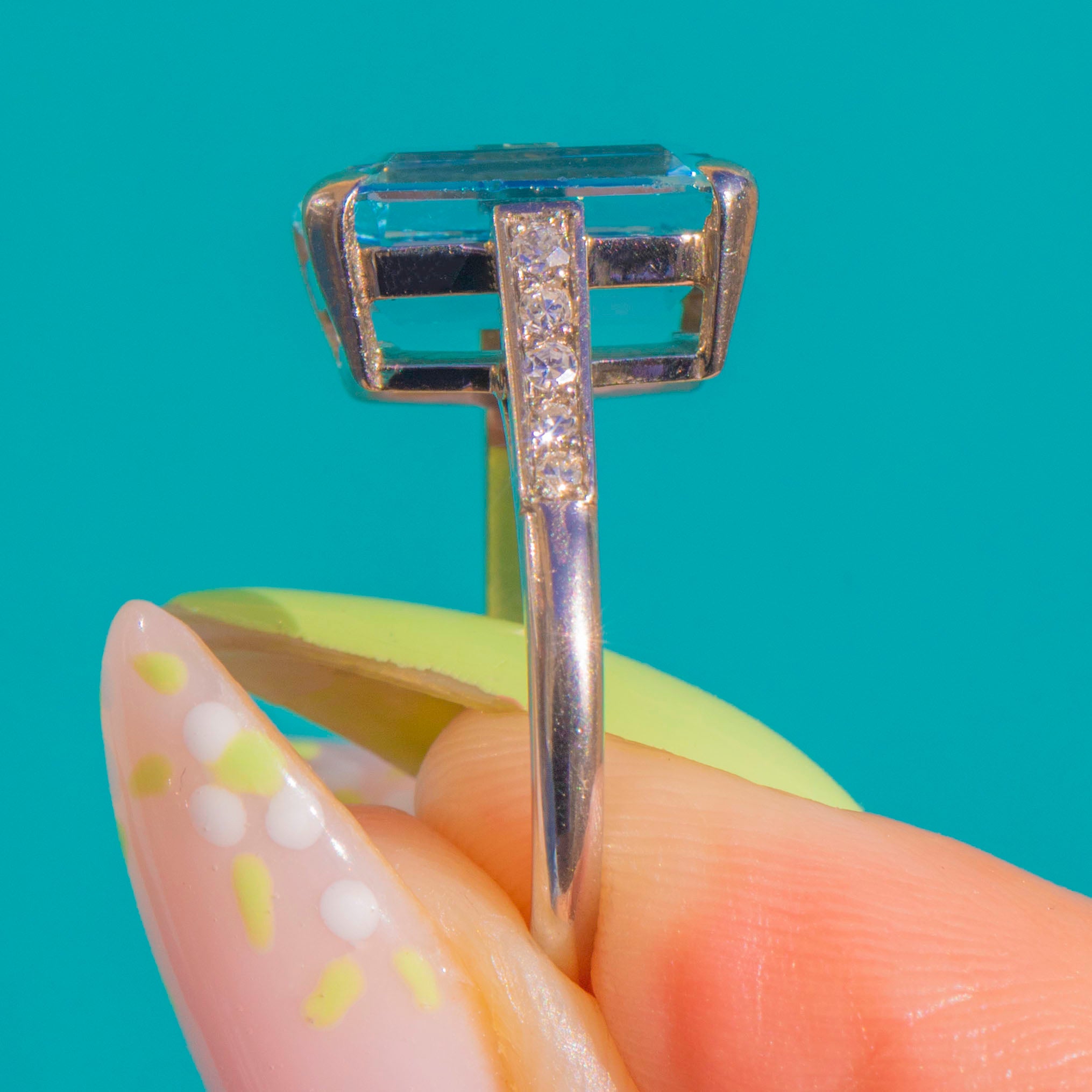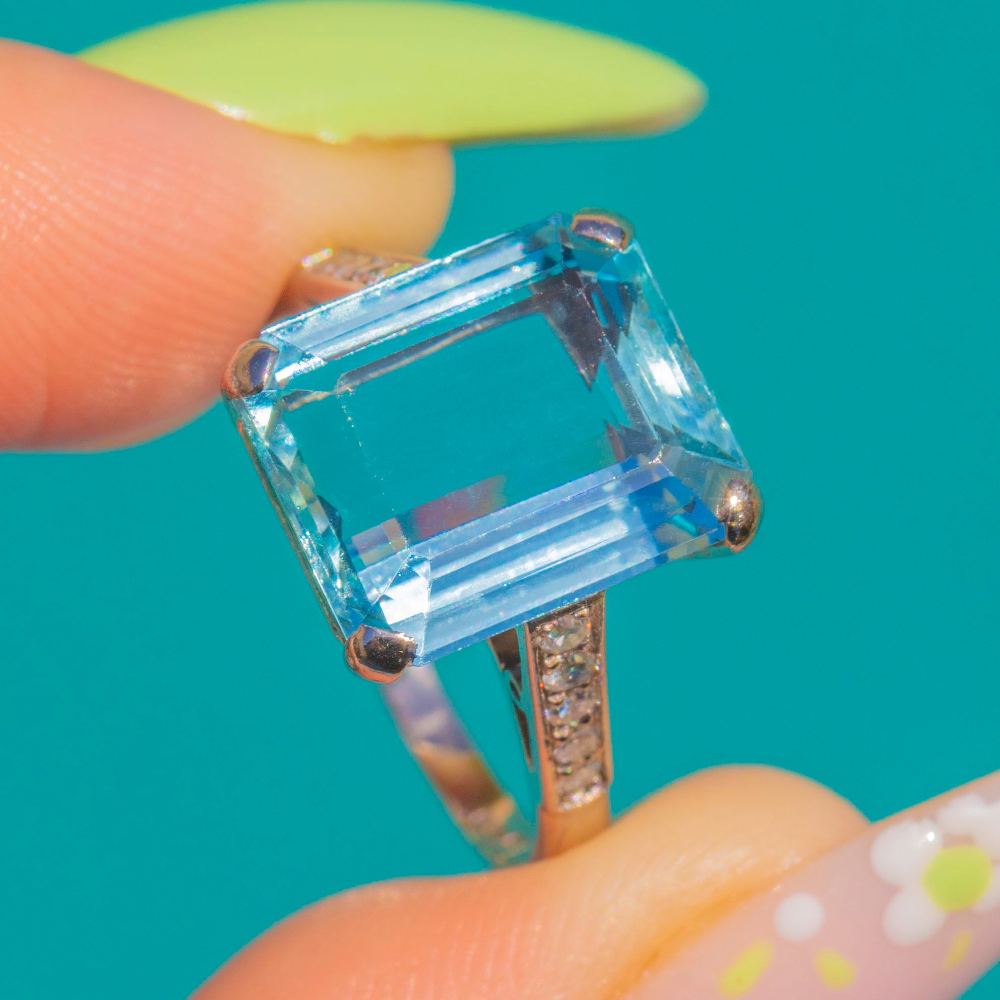 Art Deco 18ct Gold Aquamarine Diamond Ring, 8.00ct Aquamarine