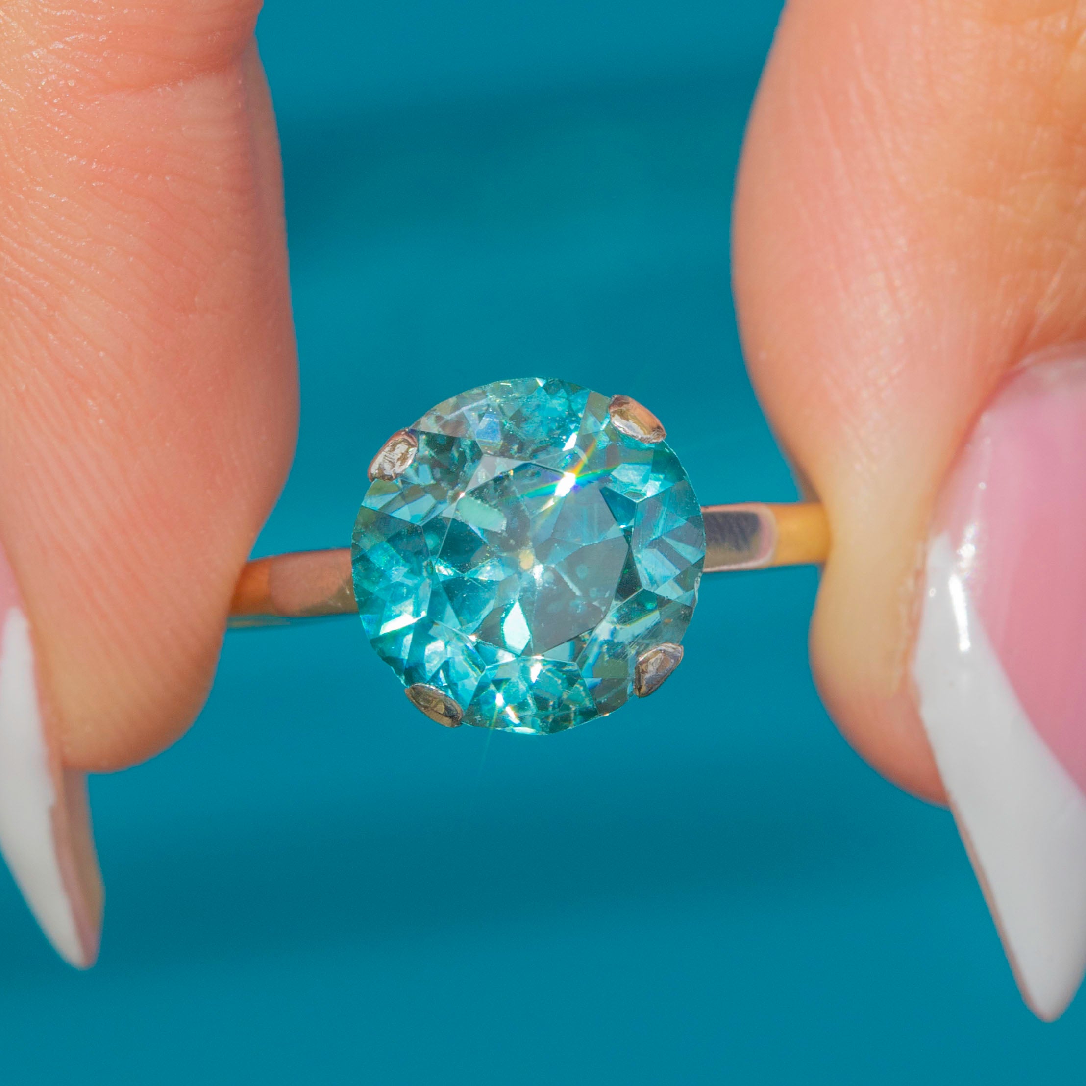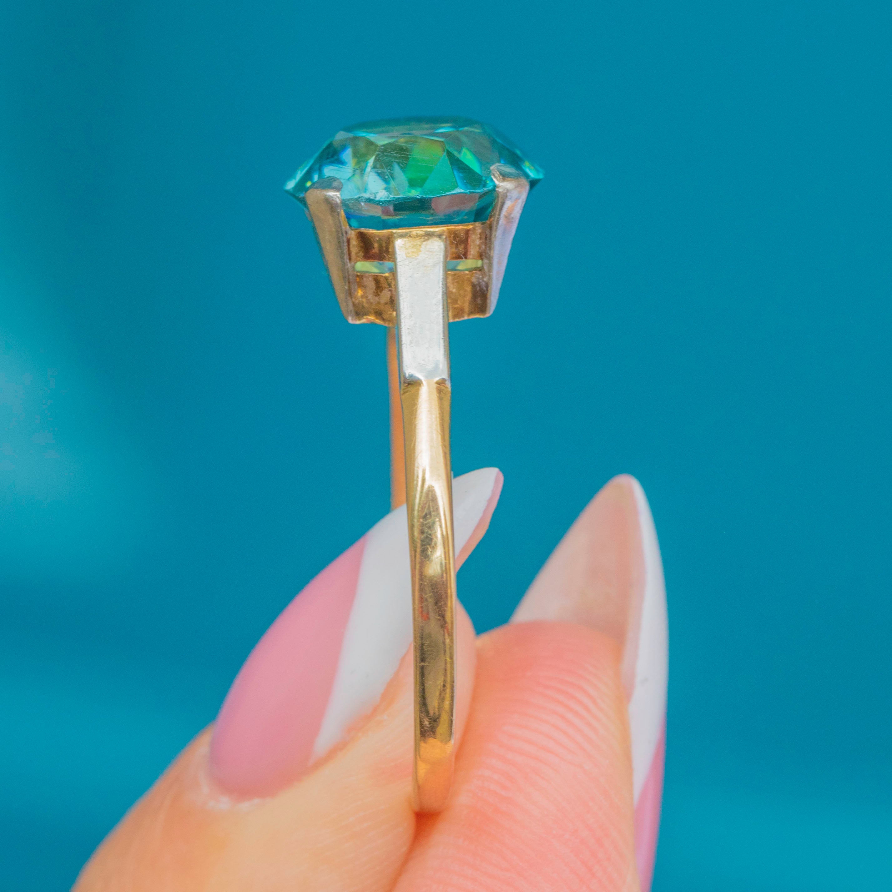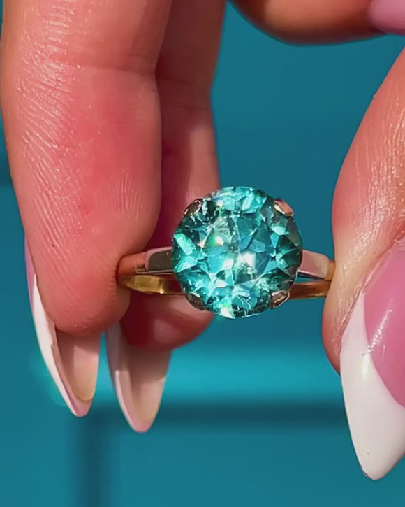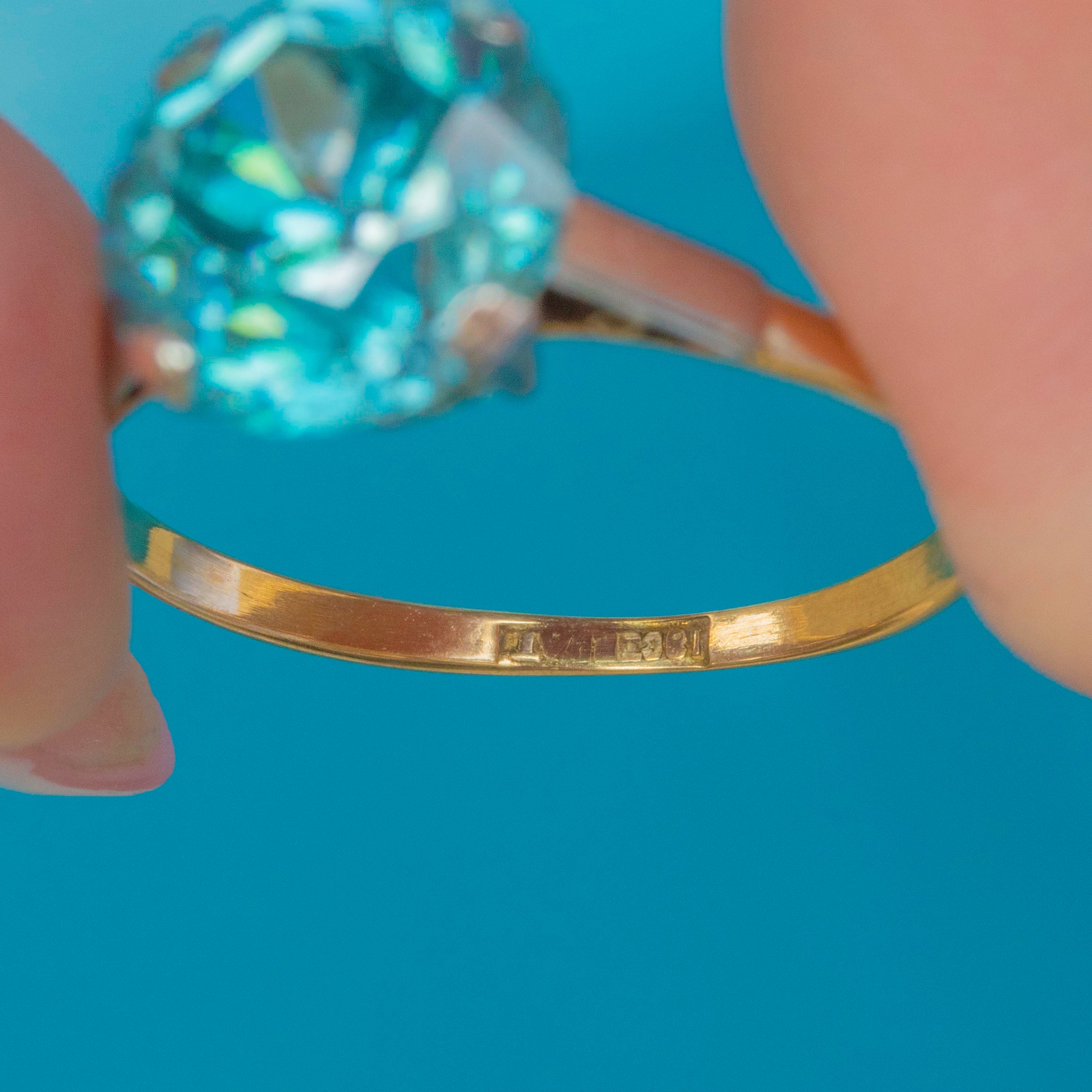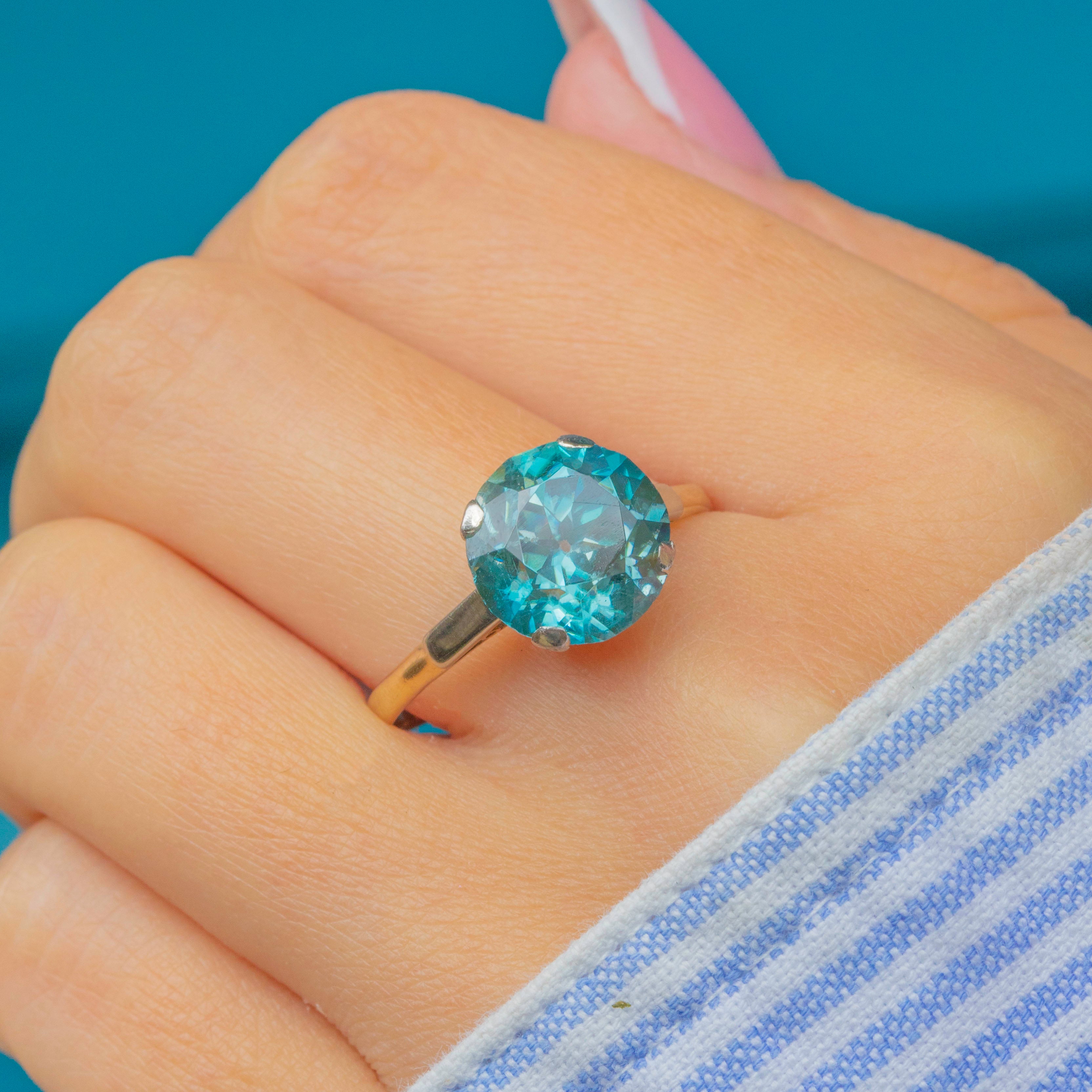 Art Deco 18ct Gold Blue Zircon Ring 4.45ct