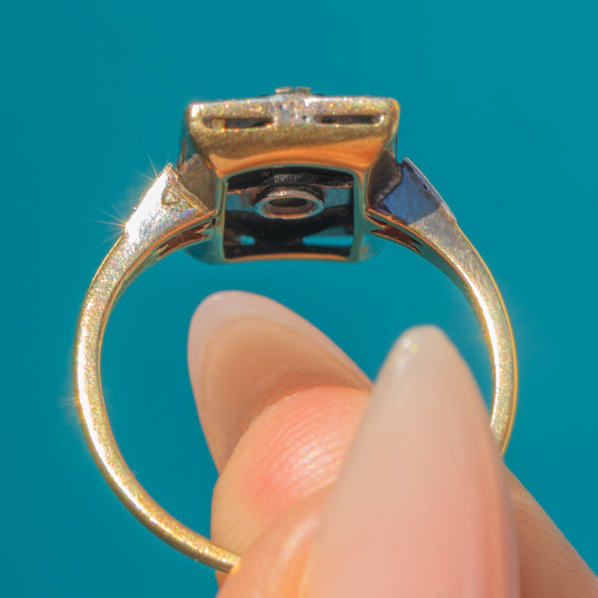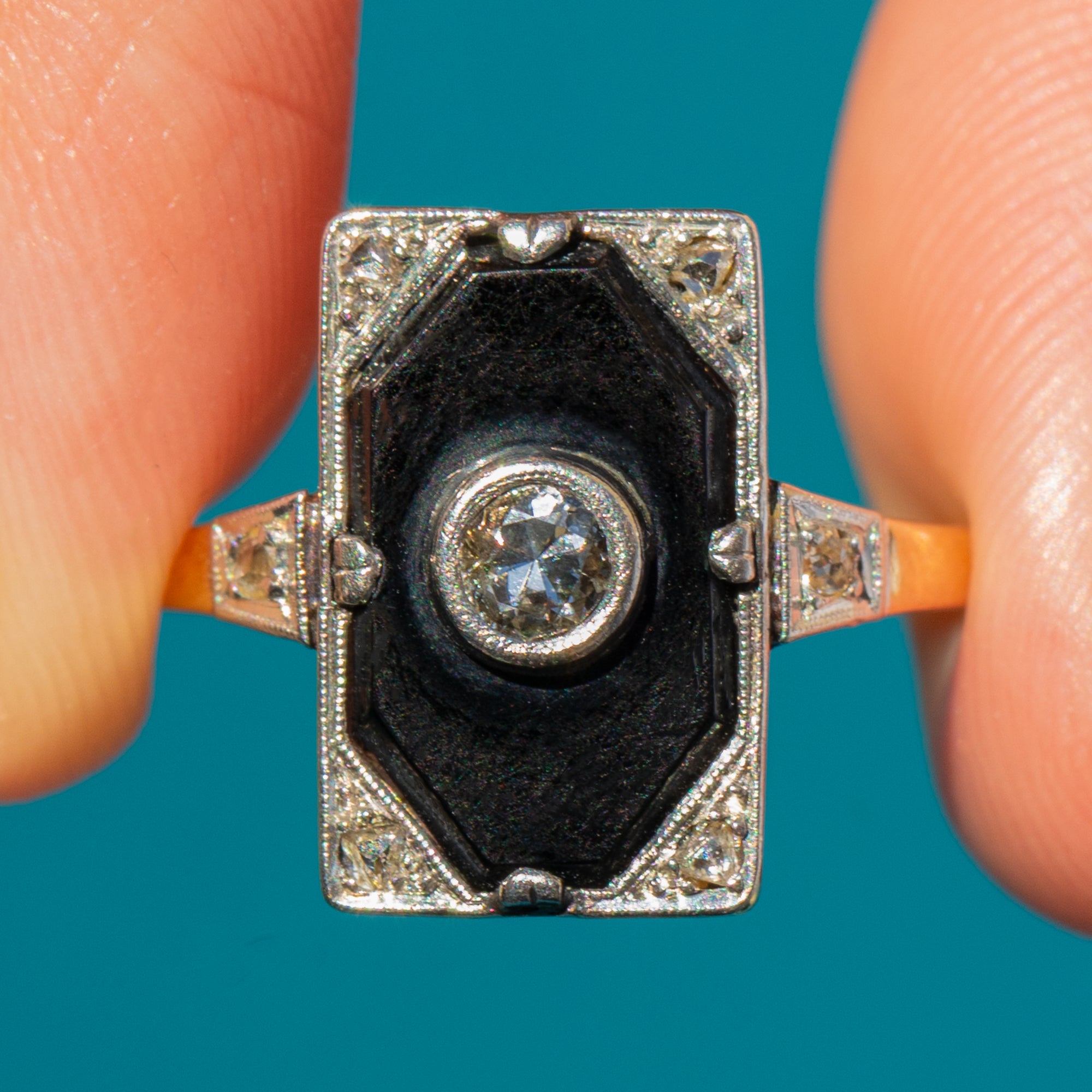 Art Deco 18ct Gold Diamond Onyx Panel Ring