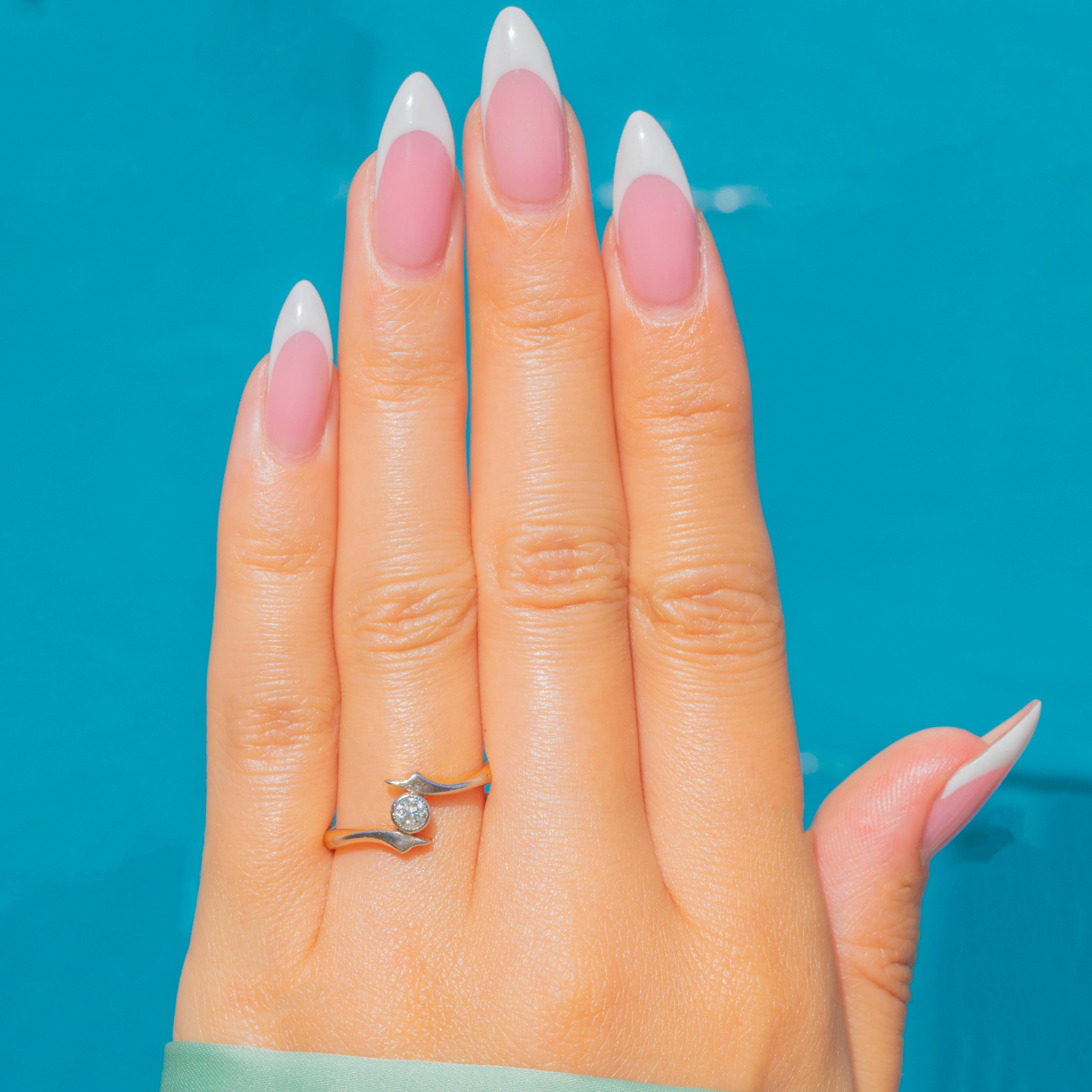 This Art Deco Diamond 'Twist' Solitaire Ring features a sparkling Diamond set in 18ct Gold with Platinum shoulders.