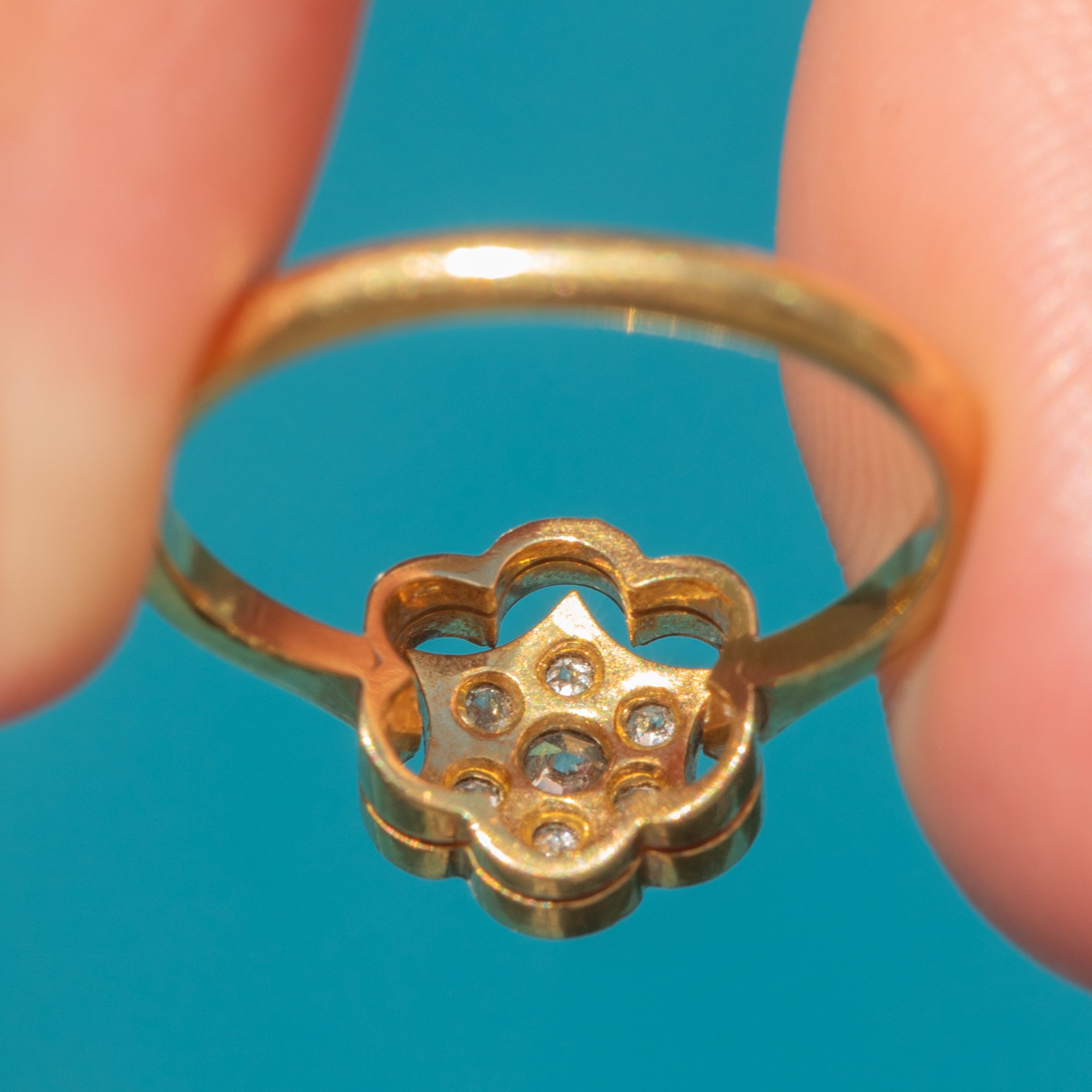 This Art Deco ring is so sweet, with a floral border and a star centre, combining two of our favourite motifs!