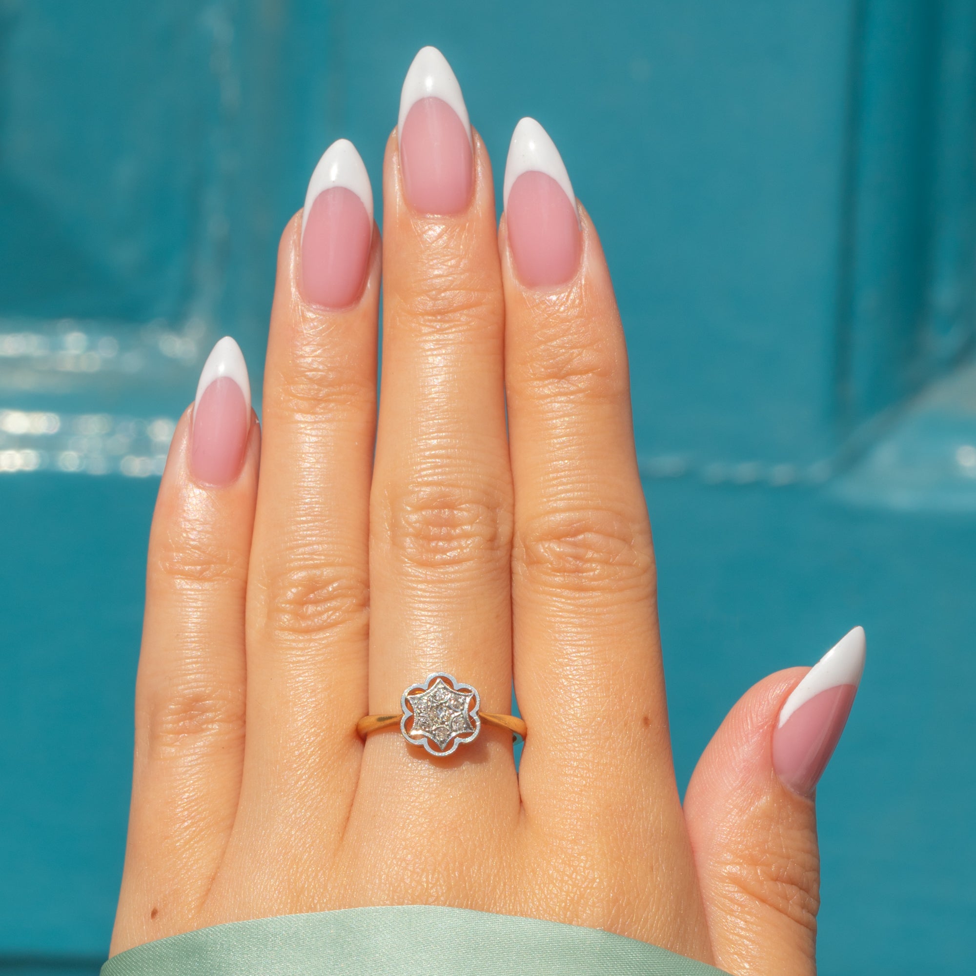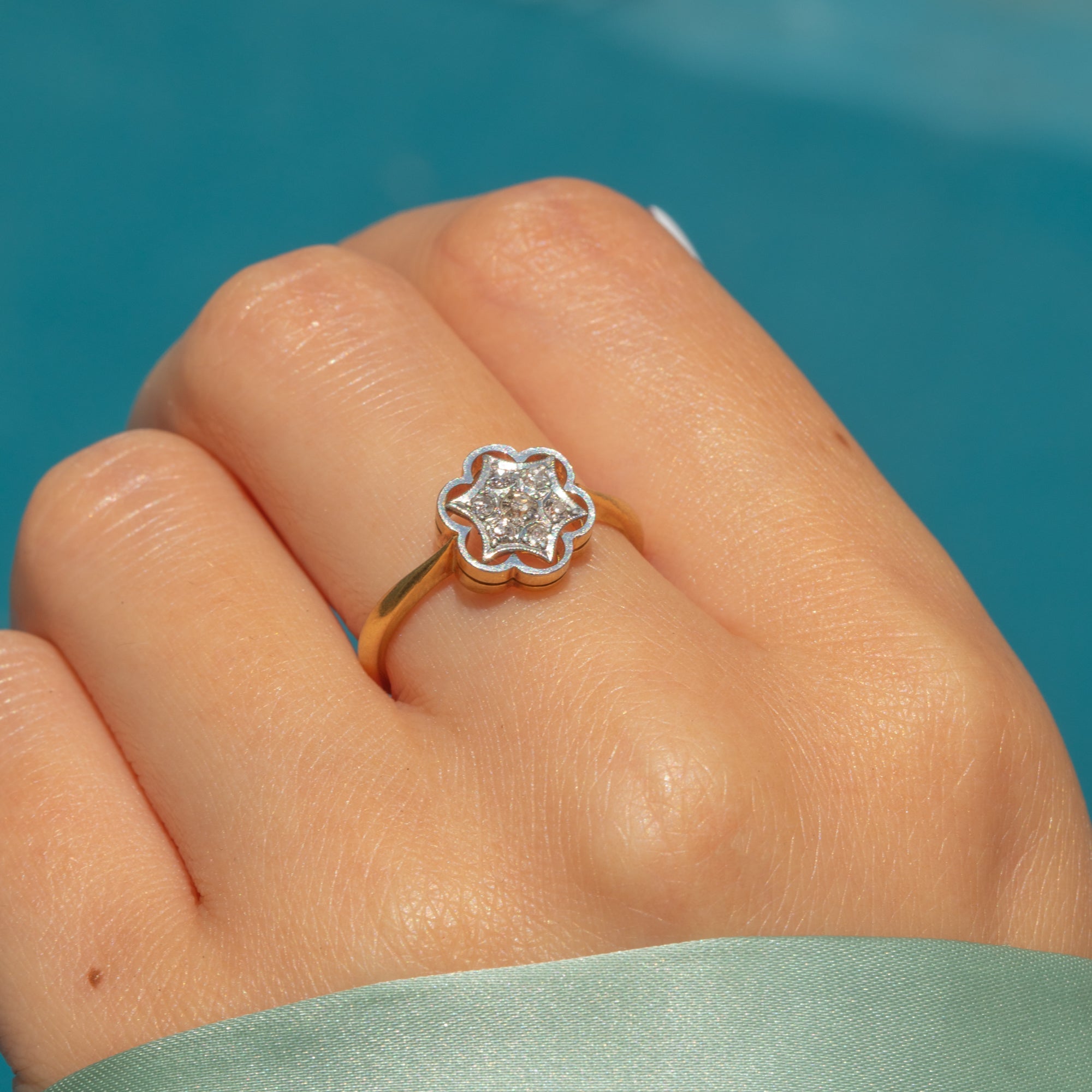 Art Deco 18ct Gold Diamond Star Flower Cluster Ring