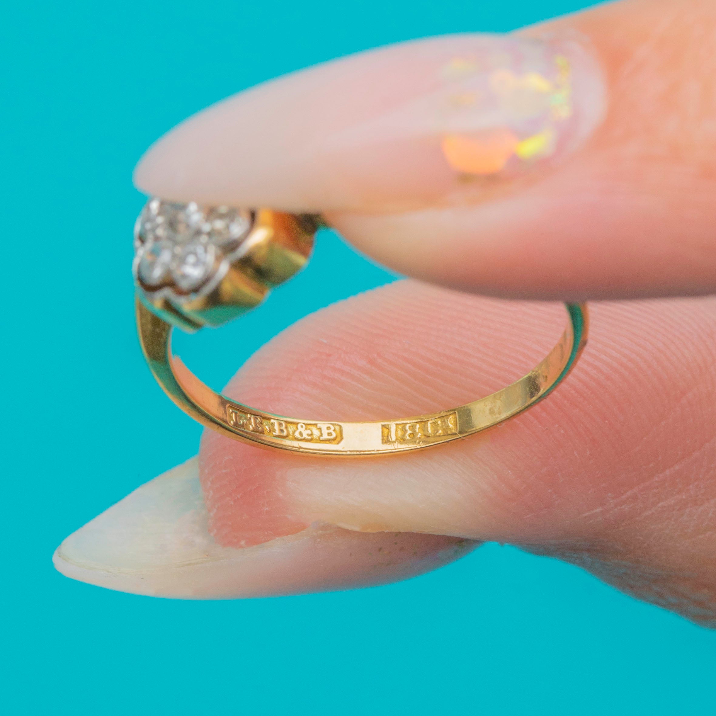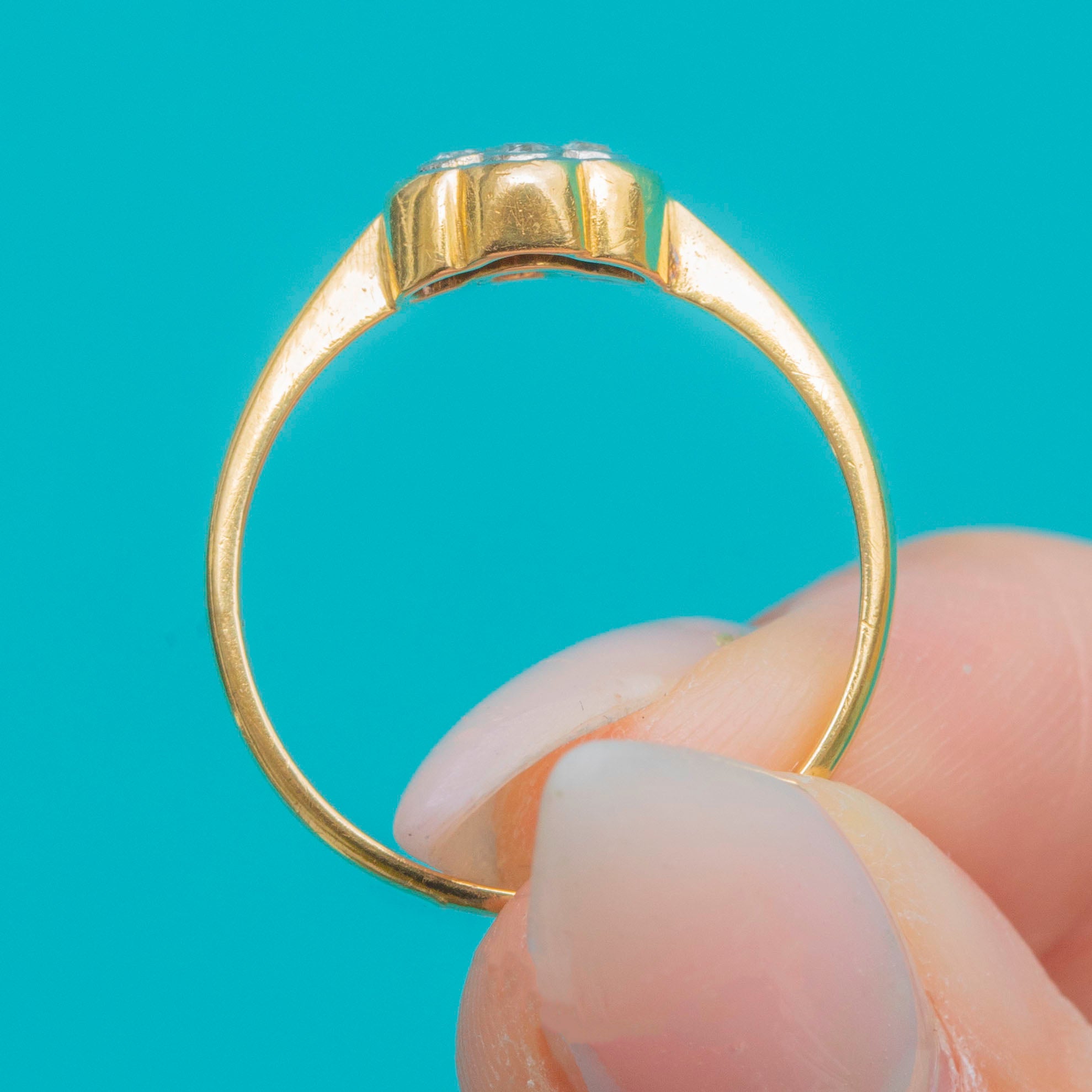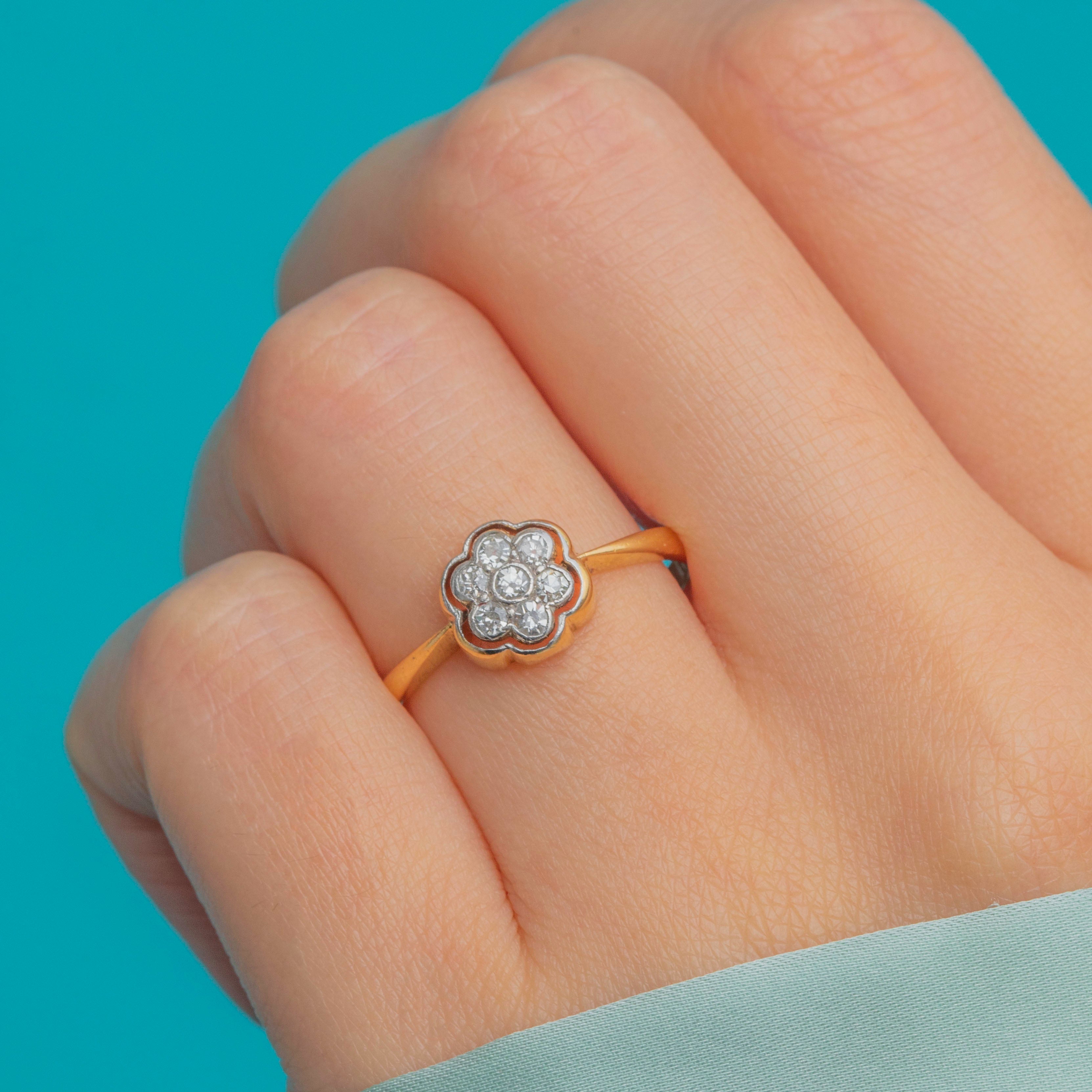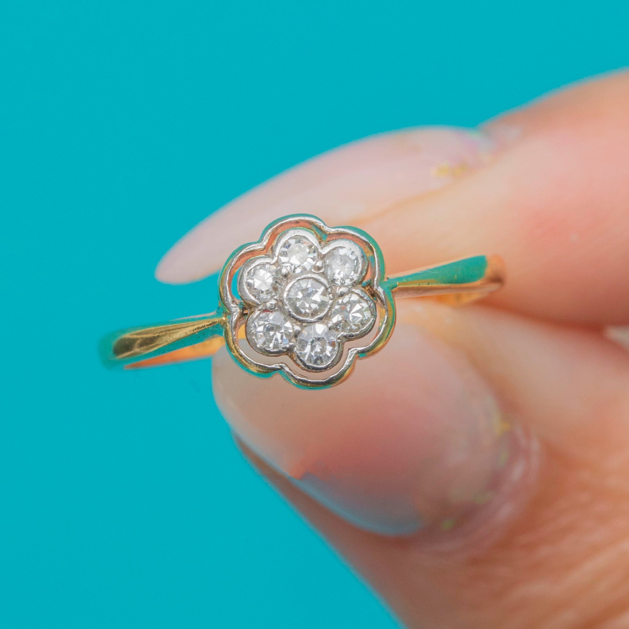 Art Deco 18ct Gold Old Mine Cut Diamond Flower Cluster Ring c.1920s
