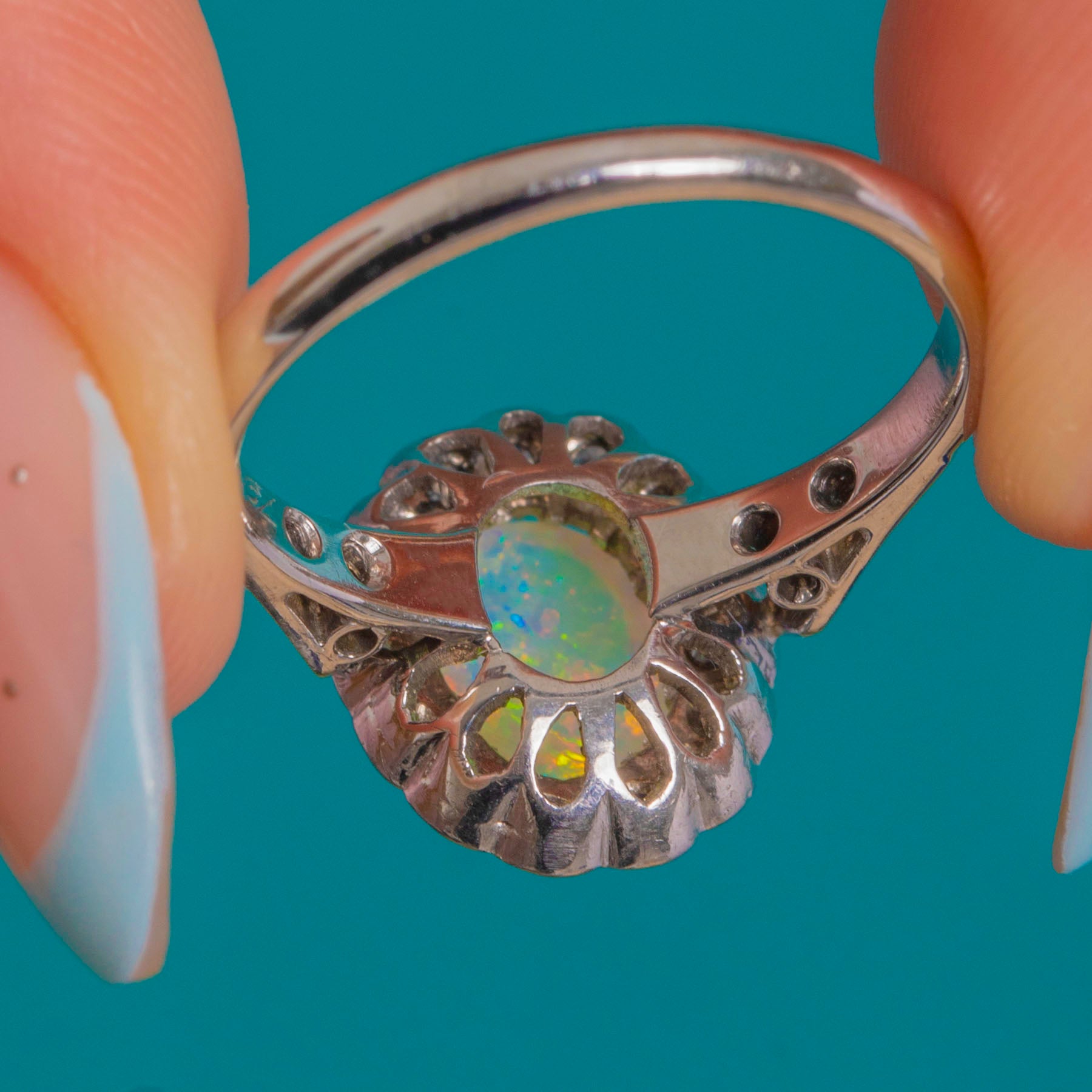 As we say time and time again, Opals and Diamonds make for one of the most eye-catching gemstone duos, with this Art Deco White Gold Opal ring being no exception!