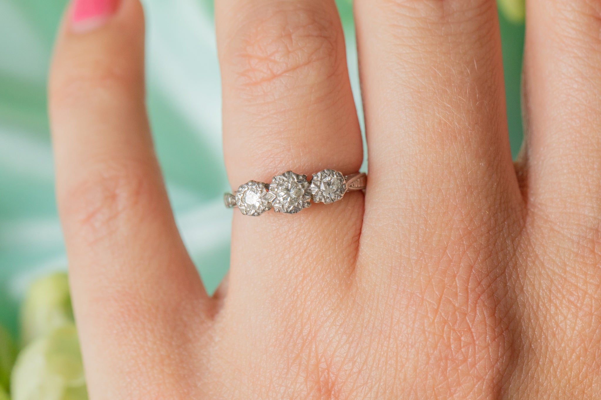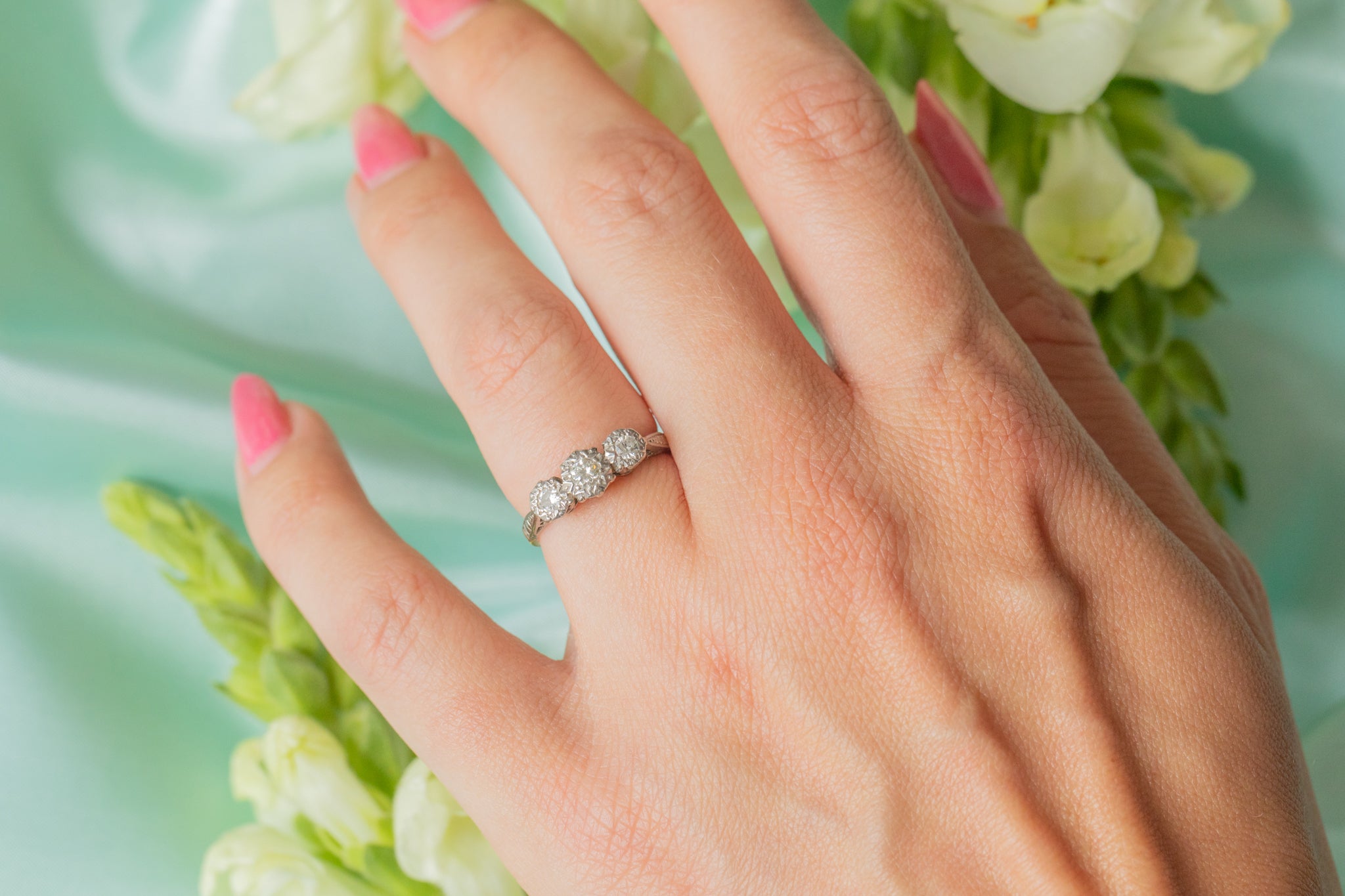 Art Deco 18ct Gold & Platinum Diamond Trilogy Engagement Ring