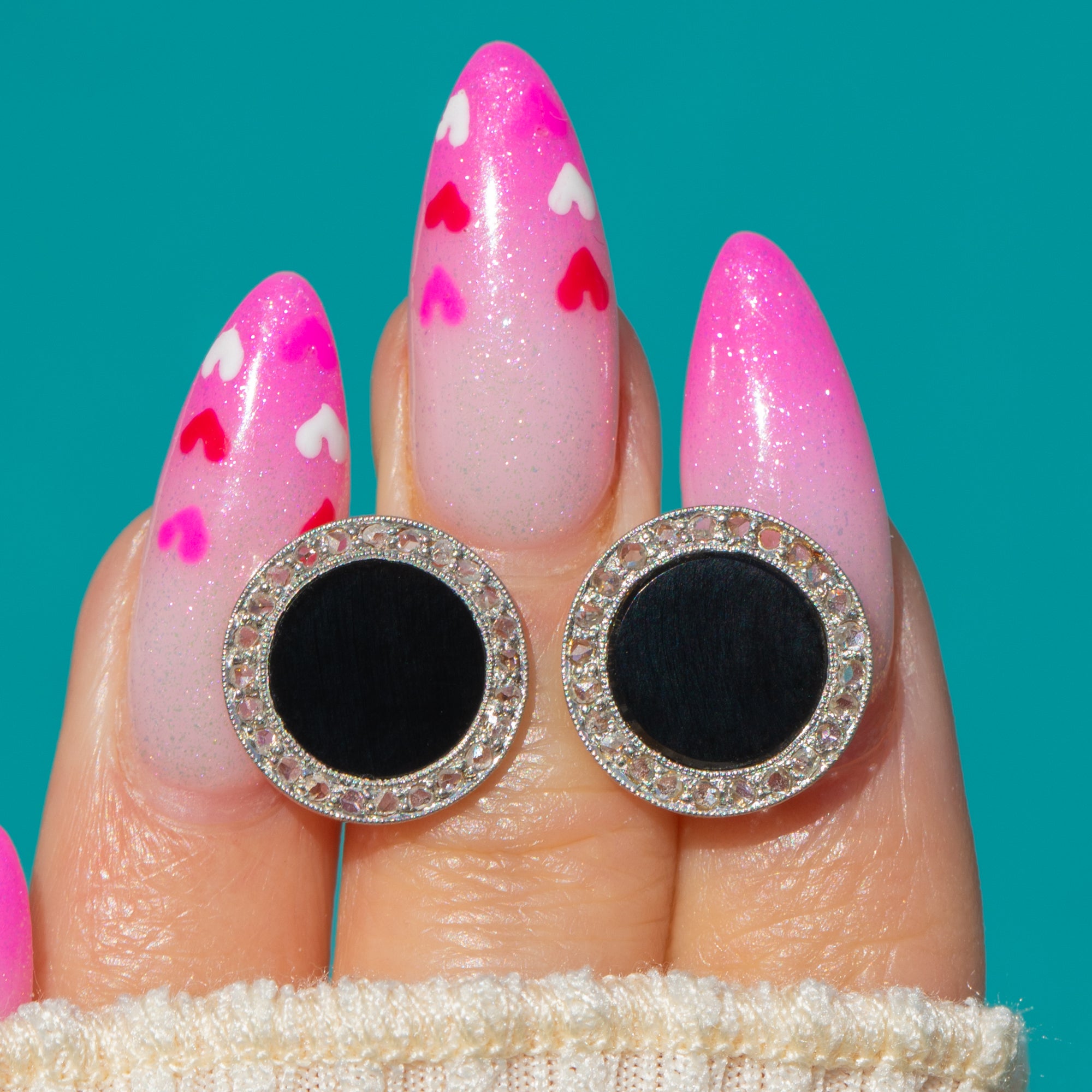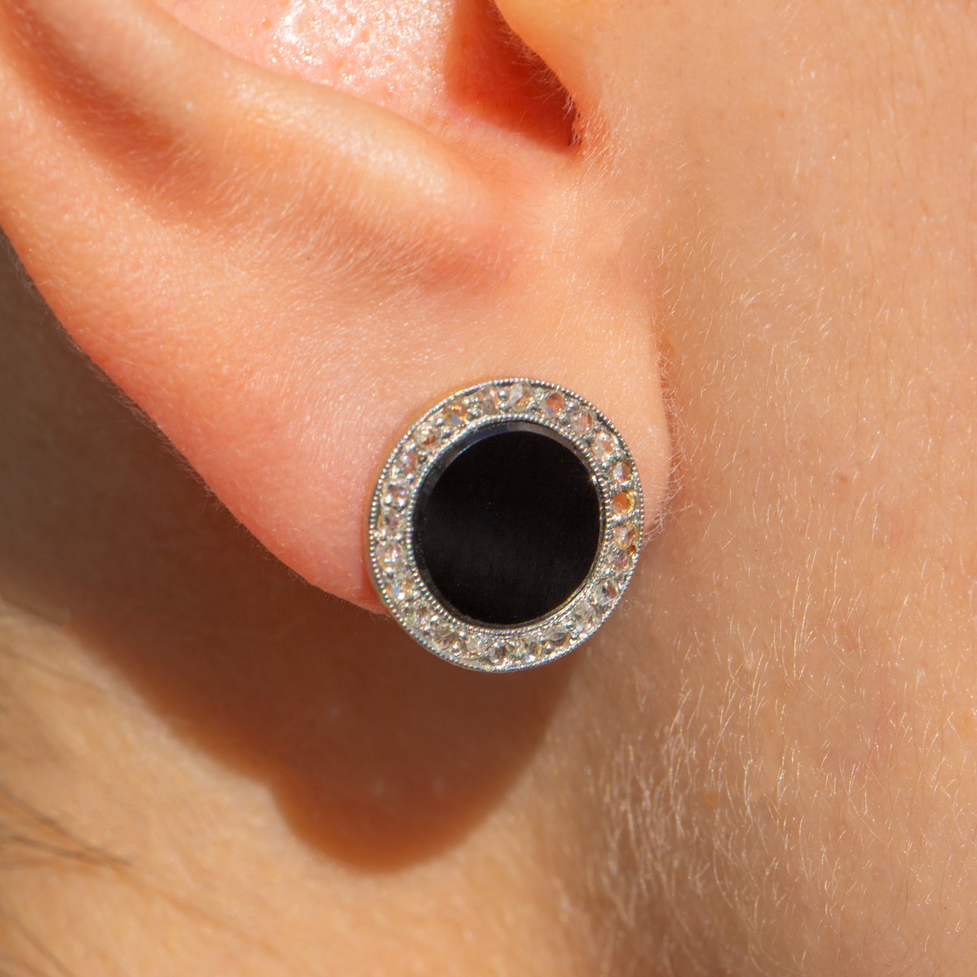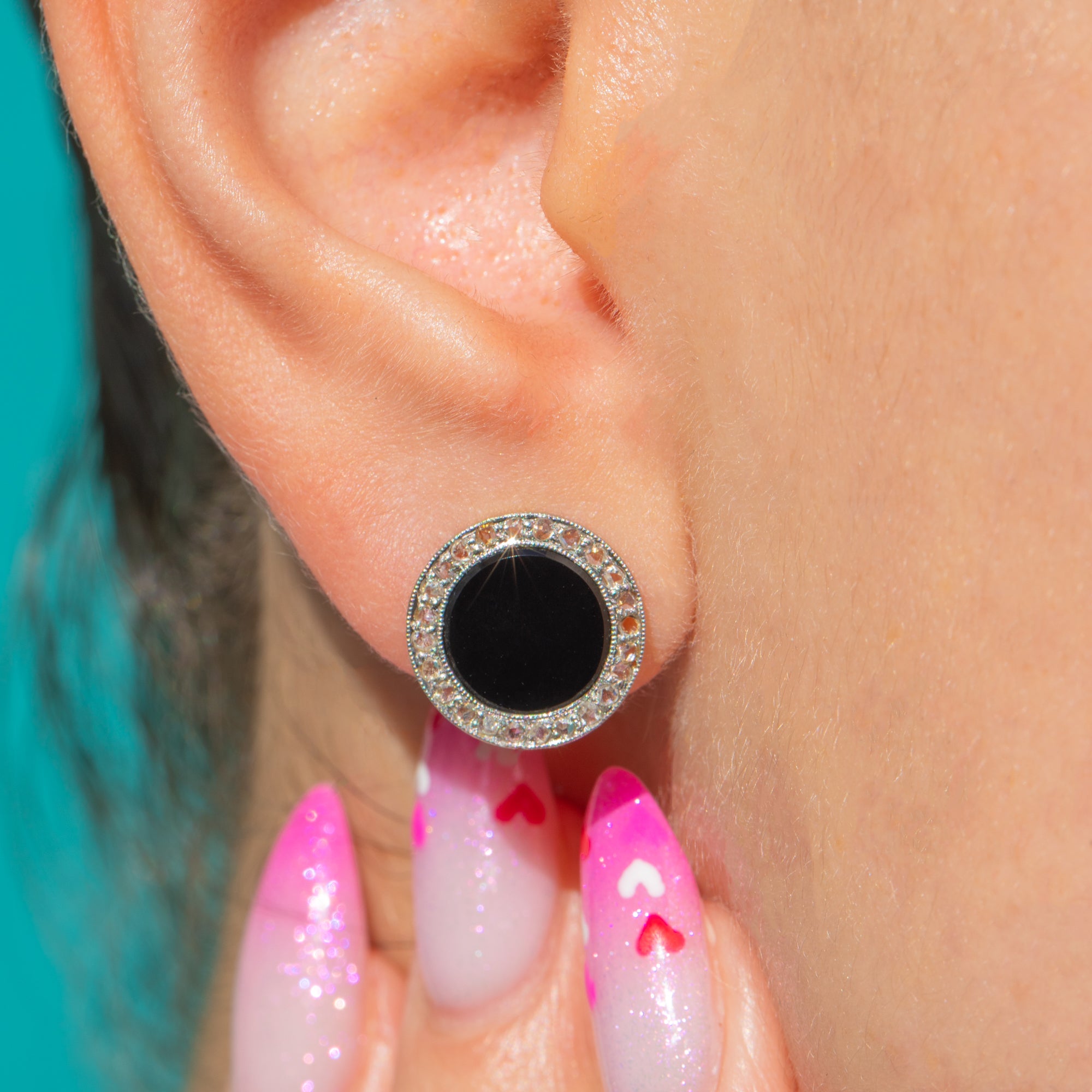 Timeless and beautifully poised, these Art Deco stud earrings marry inky Onyx with a crisp Diamond halo for a look that’s both refined and striking. Each round Onyx centre is framed by a scintillating ring of rose-cut Diamonds set with fine milgrain, amplifying that quintessential Deco geometry and contrast.