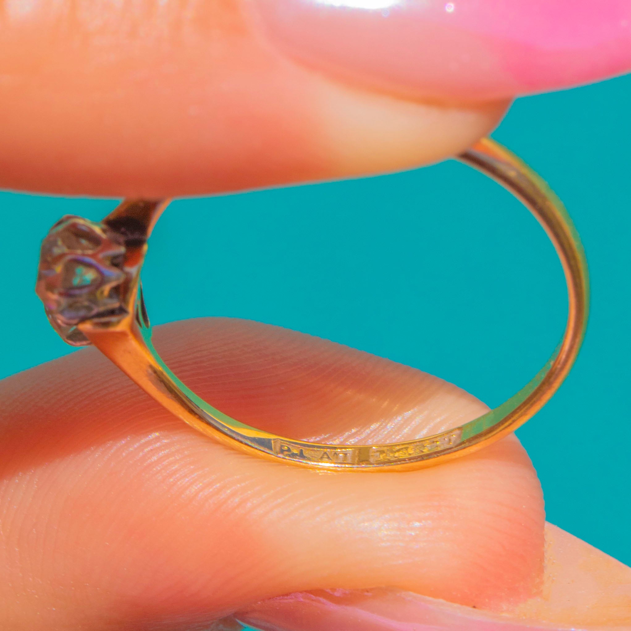 MATERIALS: Tests as 18ct Gold, Platinum settings, Old Mine Cut Diamonds (0.36ct).