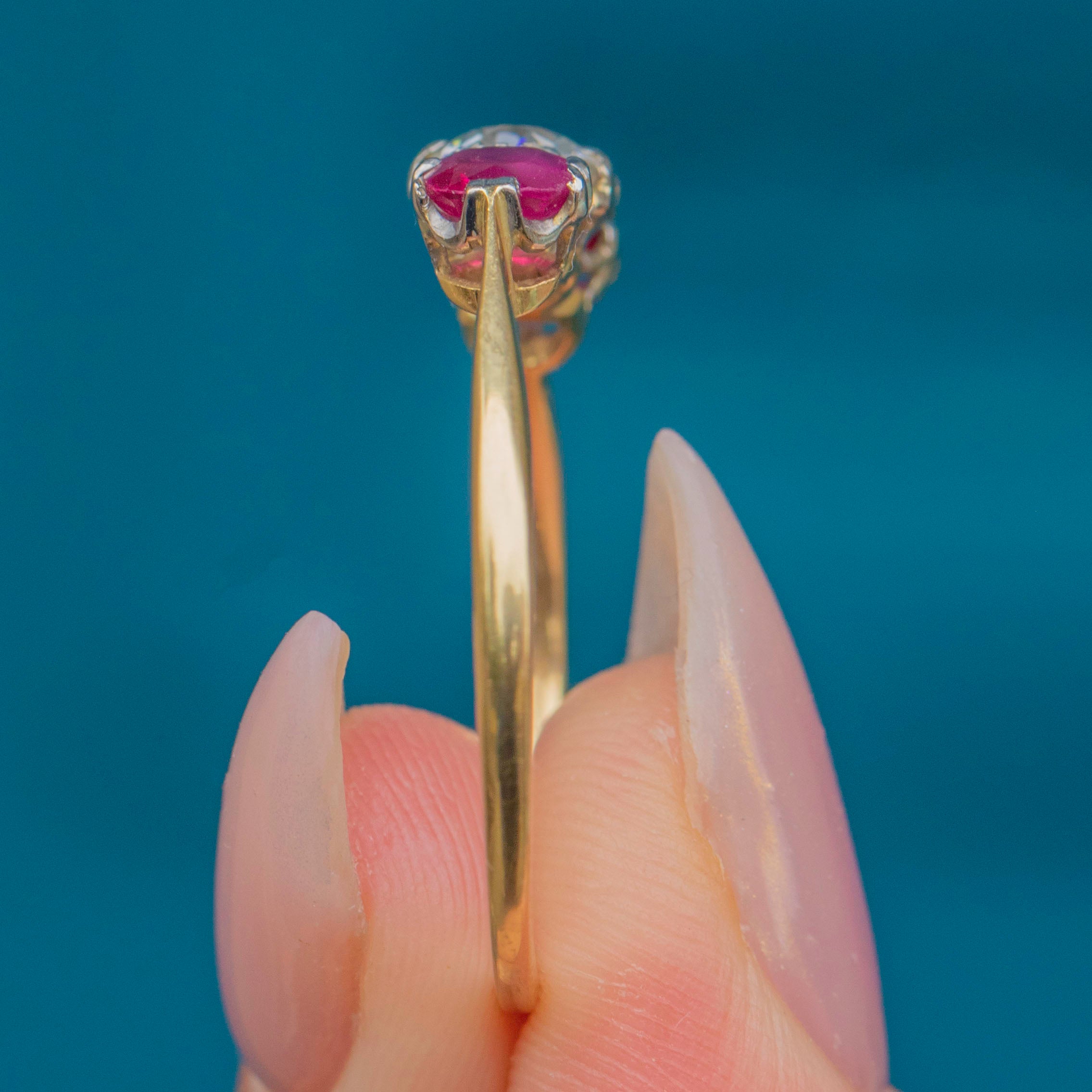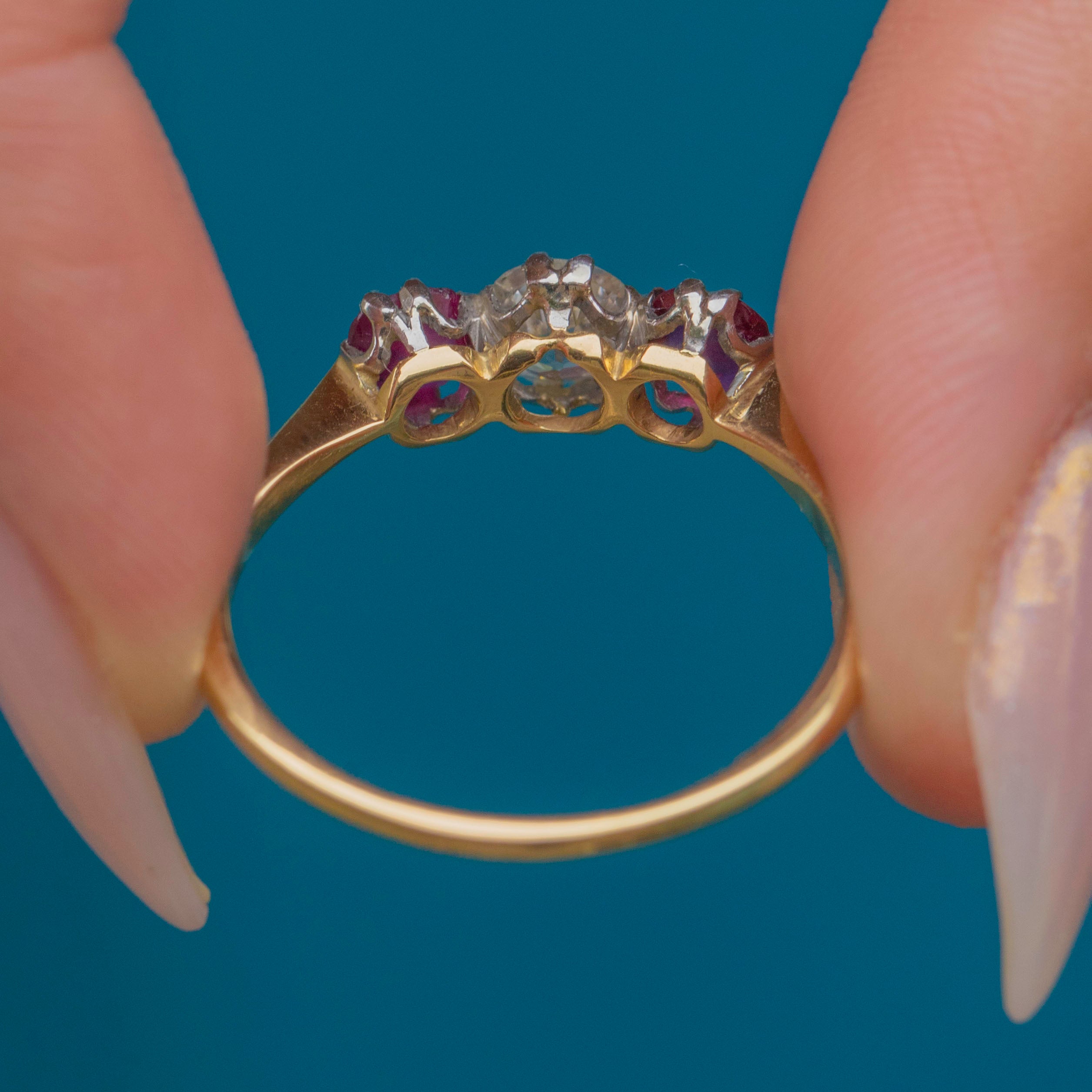 Art Deco 18ct Gold Ruby and Diamond Trilogy Engagement Ring Item added