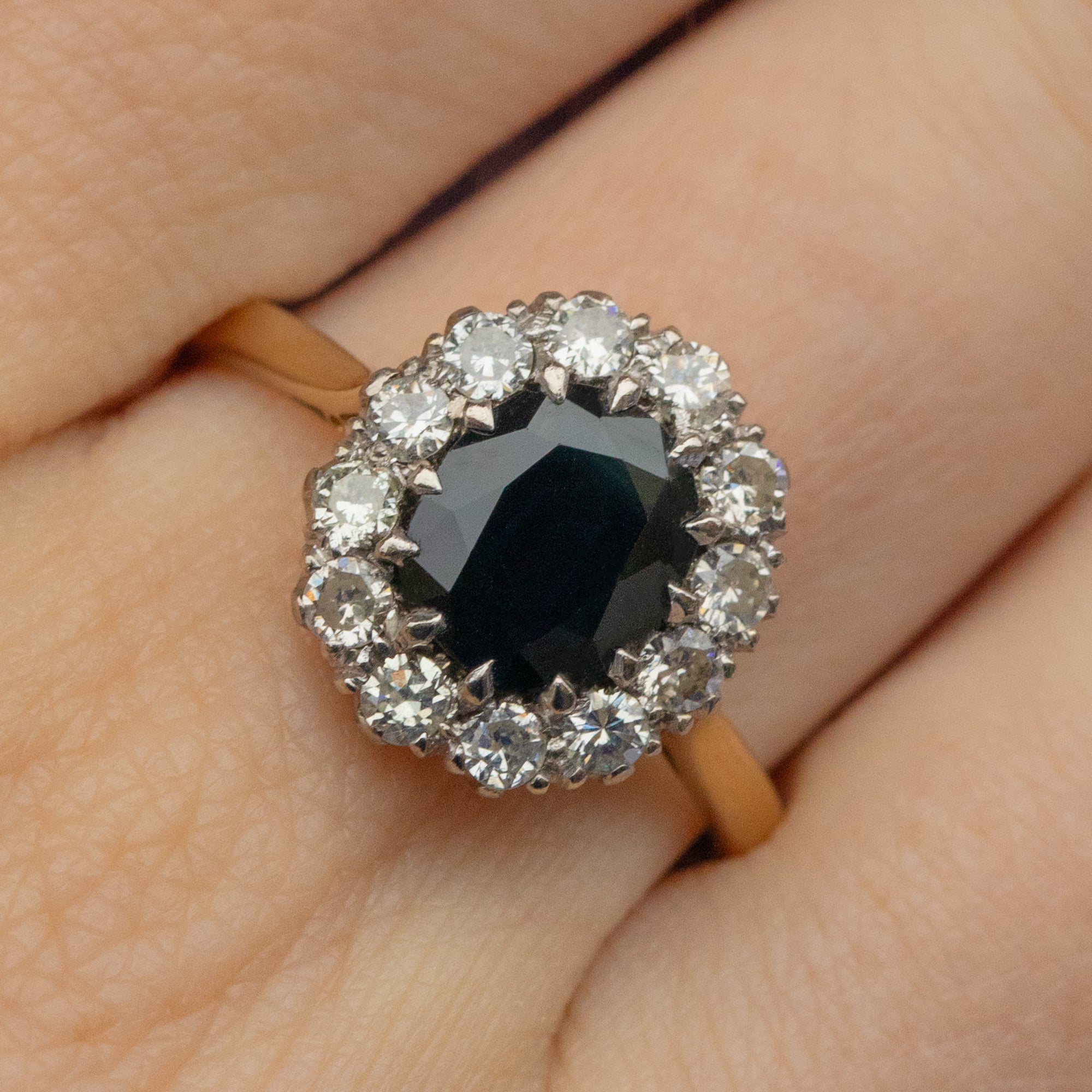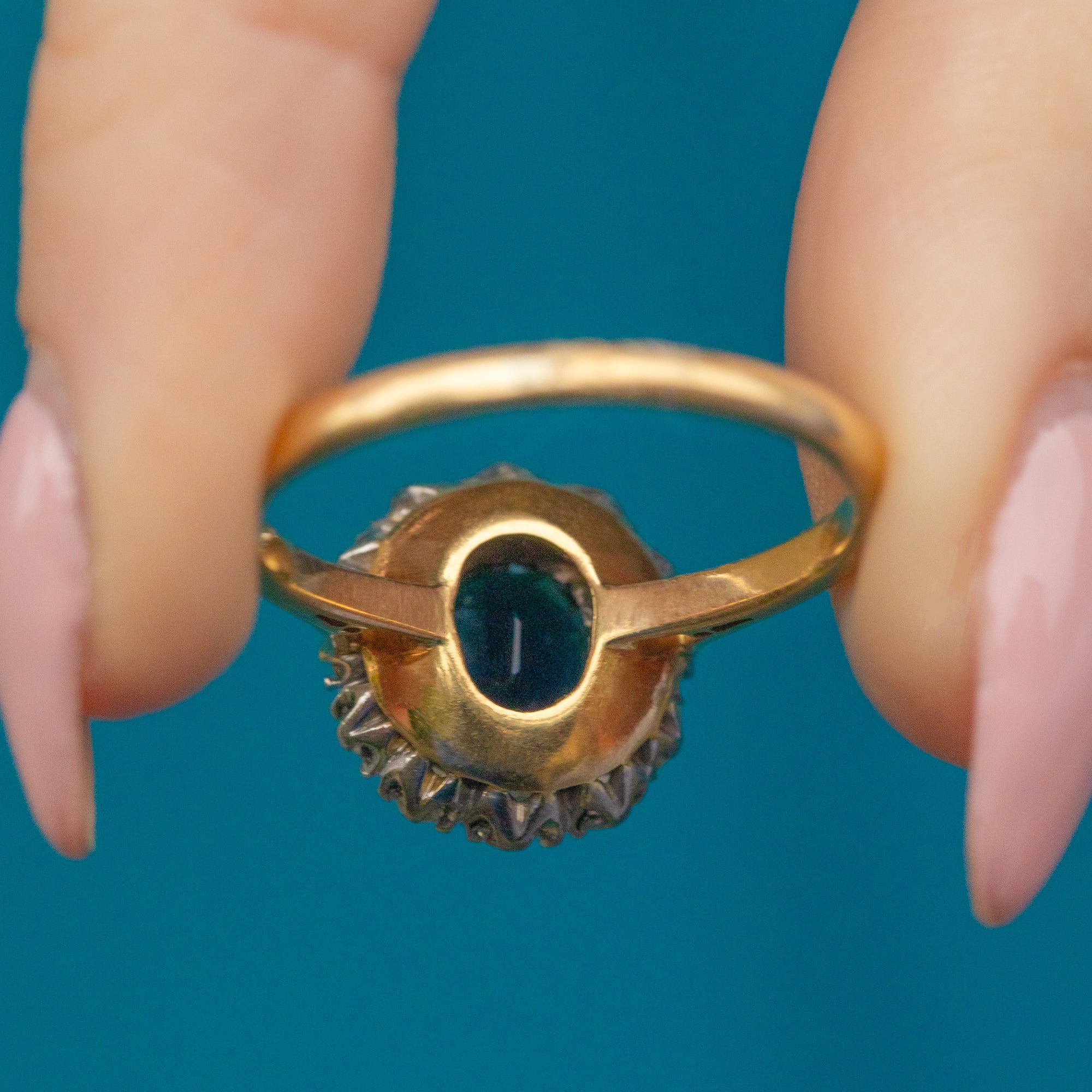Art Deco 18ct Gold Sapphire & Diamond Cluster Ring, 1.25ct