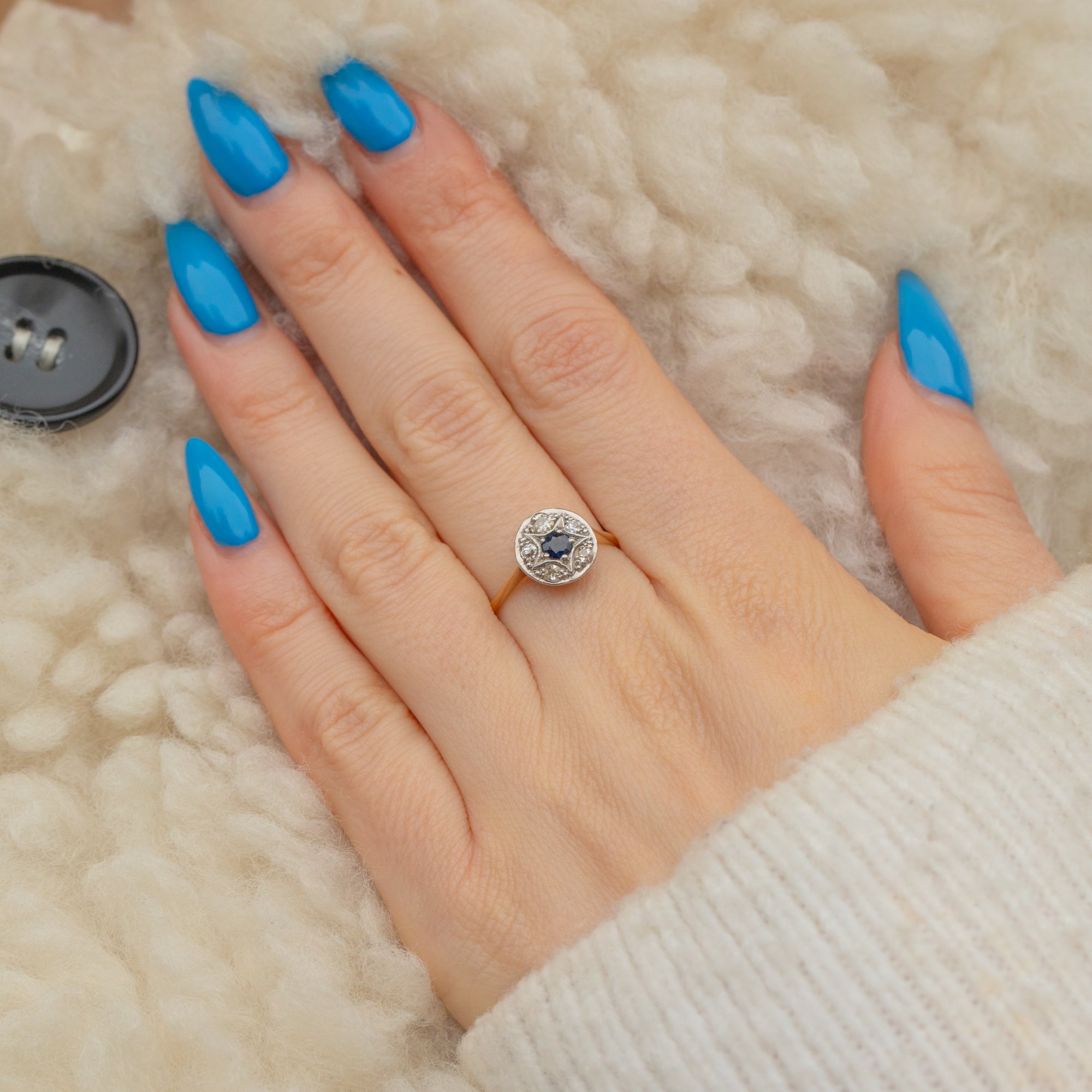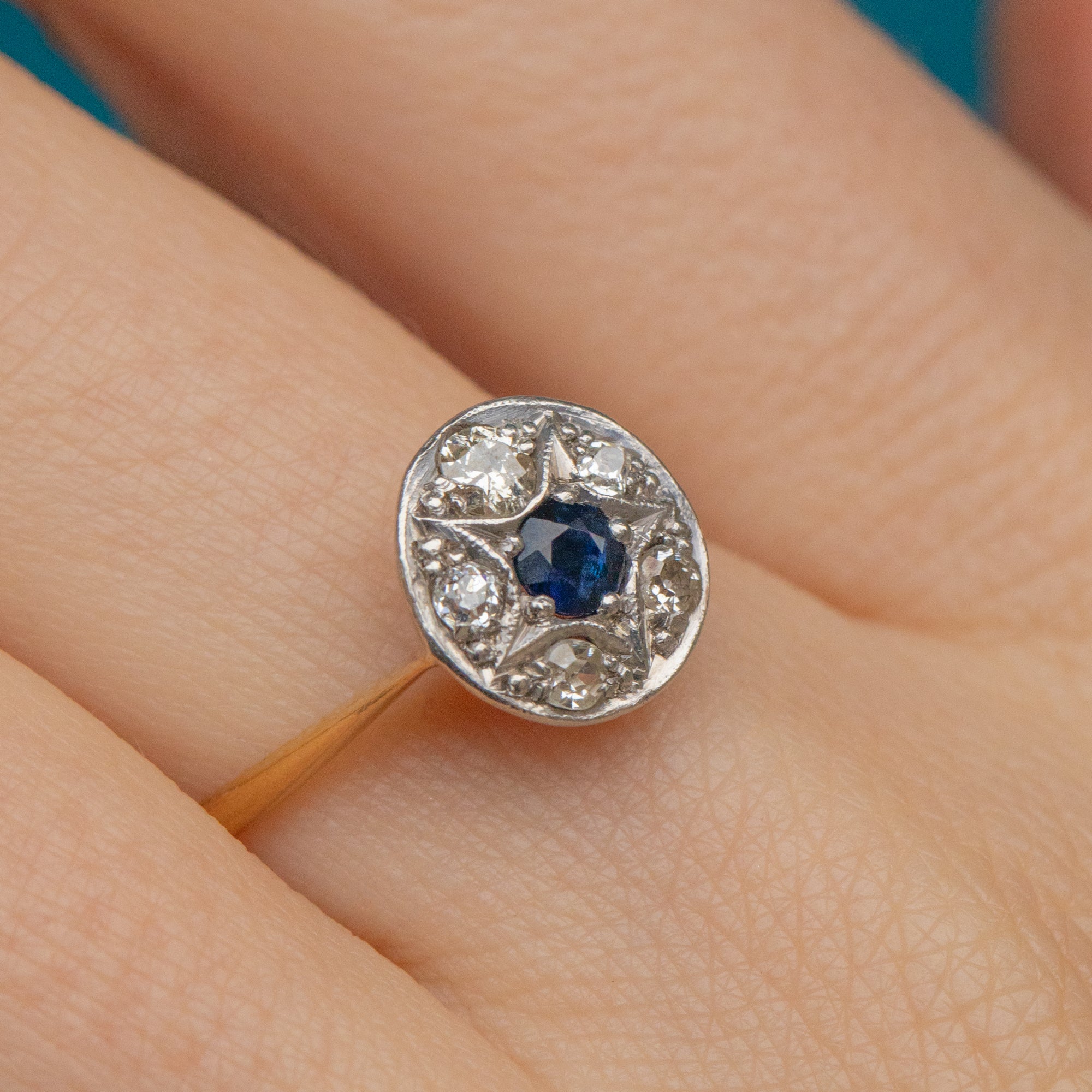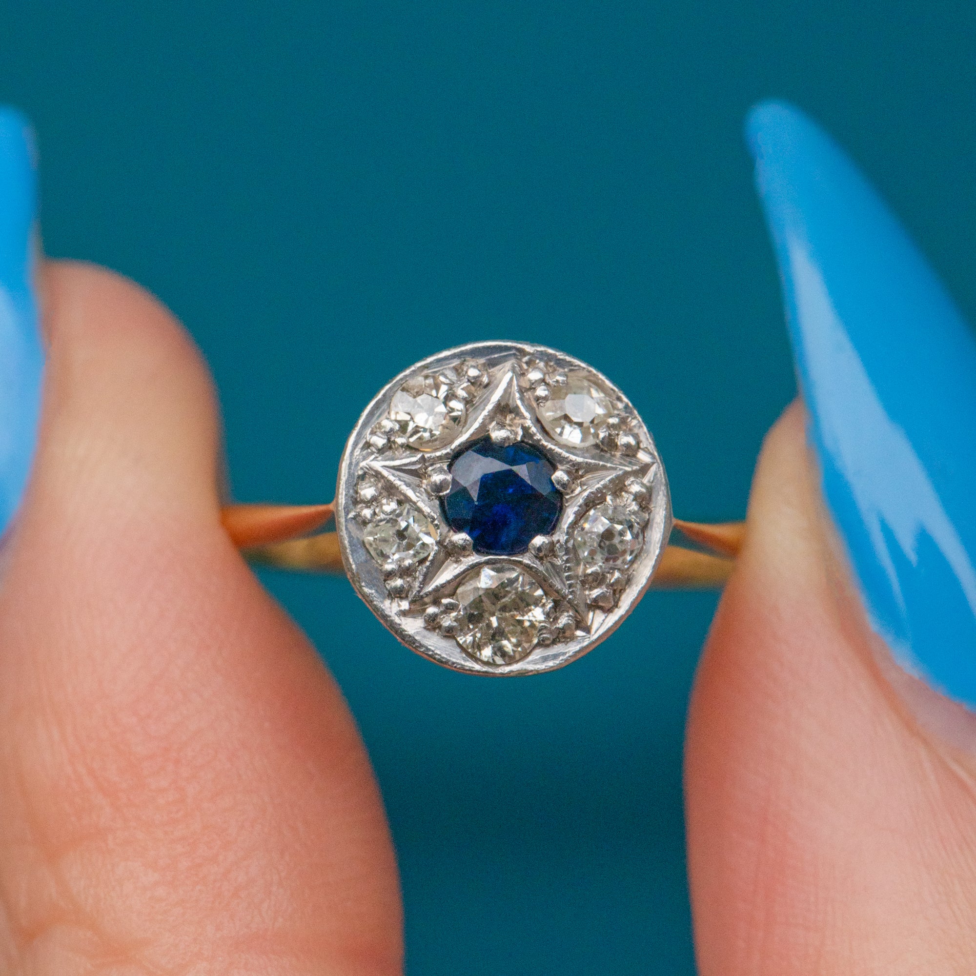 Fall in love with this Art Deco 18ct Gold Sapphire Diamond star cluster ring!