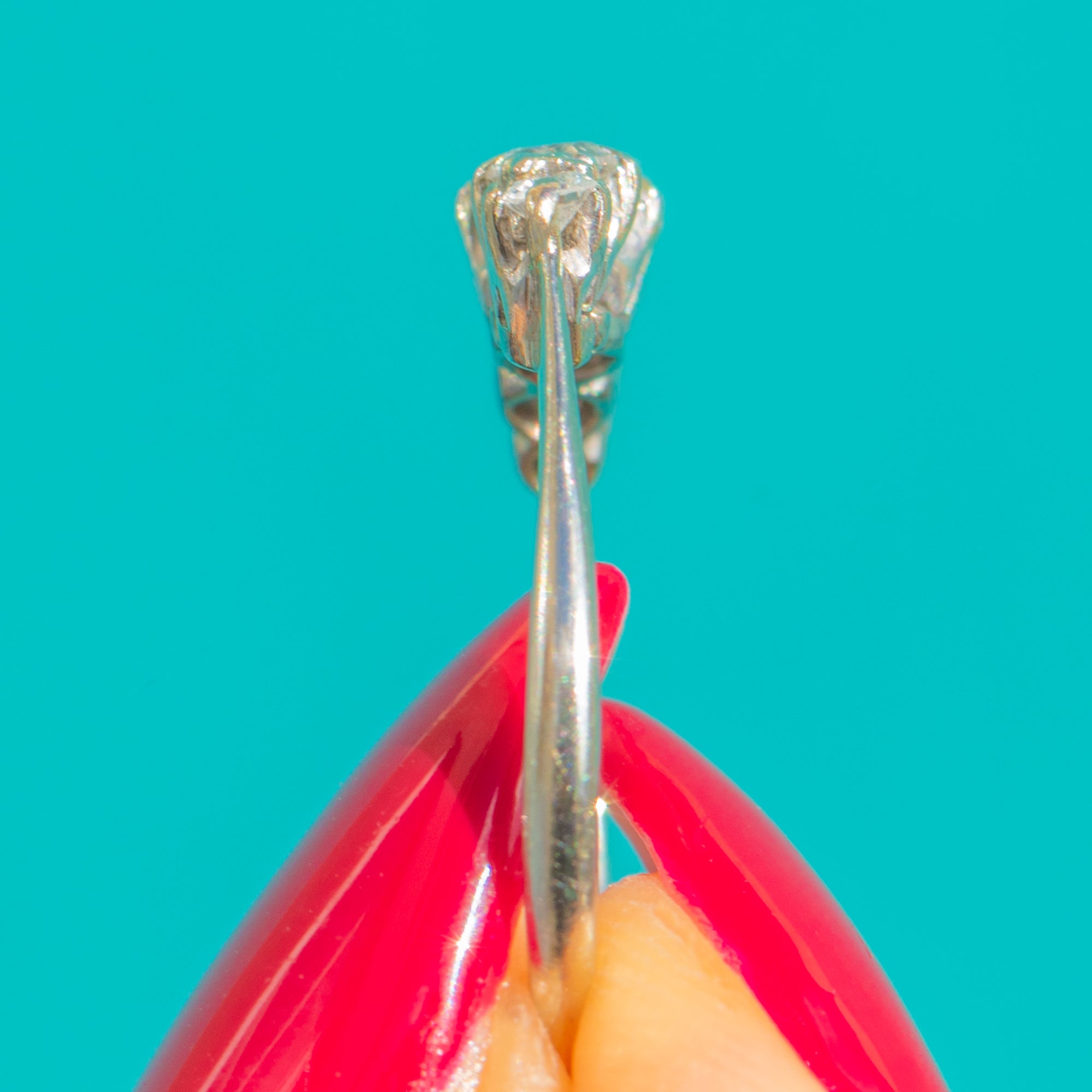 EXCELLENT: Diamonds are bright and lively with no obvious chips or abrasions visible to the eye. The settings are secure with light, superficial wear consistent with age; the shank shows minor surface marks only. Nicely preserved throughout and well cared for, with no evidence of repair.