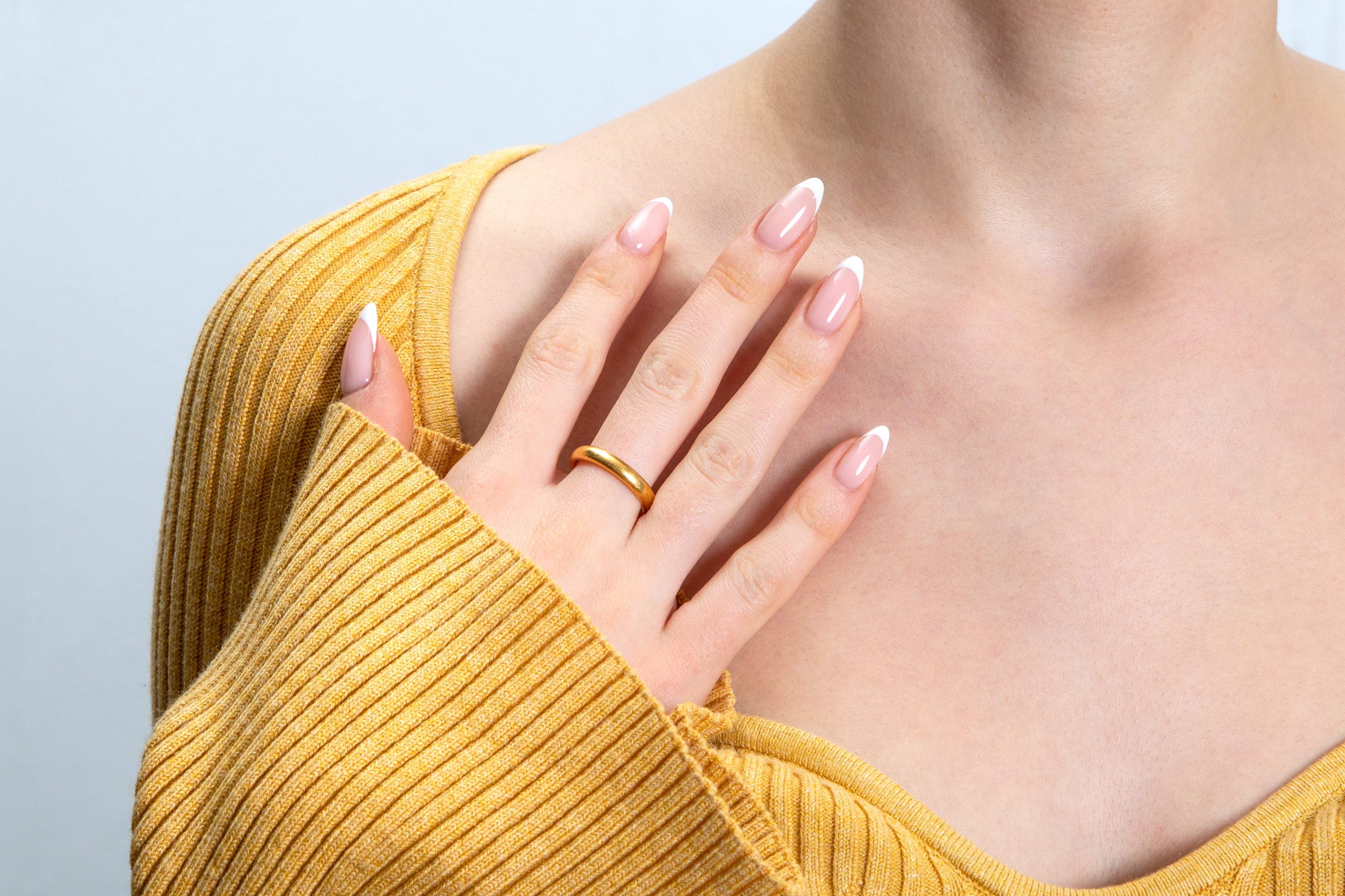 MEASUREMENTS: Wedding band measures 4mm wide throughout.