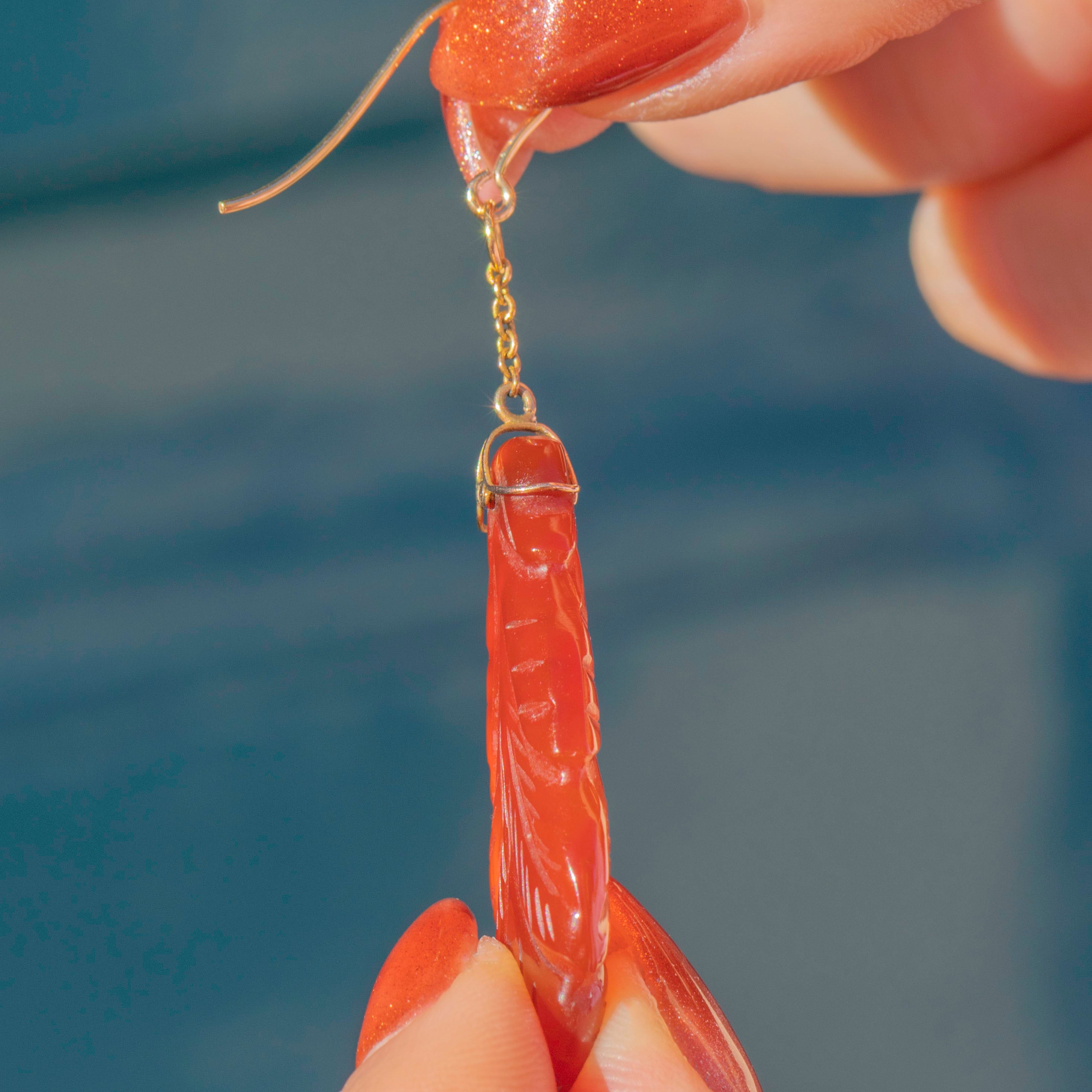Art Deco 9ct Gold Carved Carnelian Drop Earrings