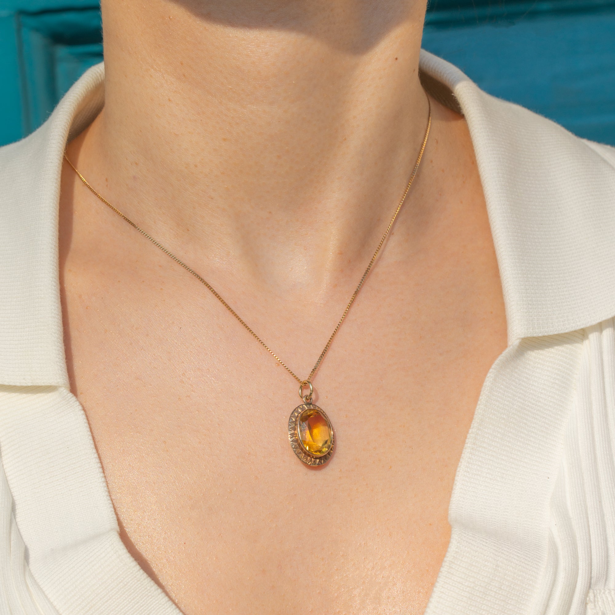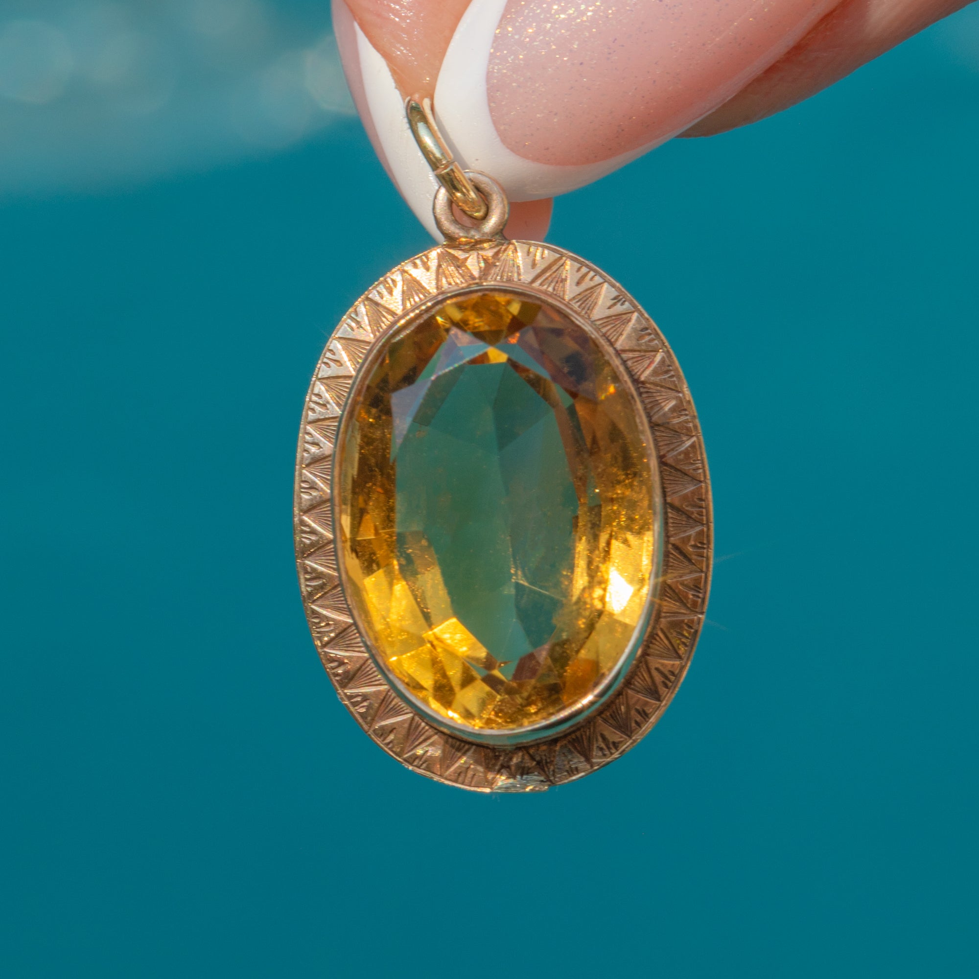 Art Deco 9ct Gold Citrine Pendant, 7.20ct