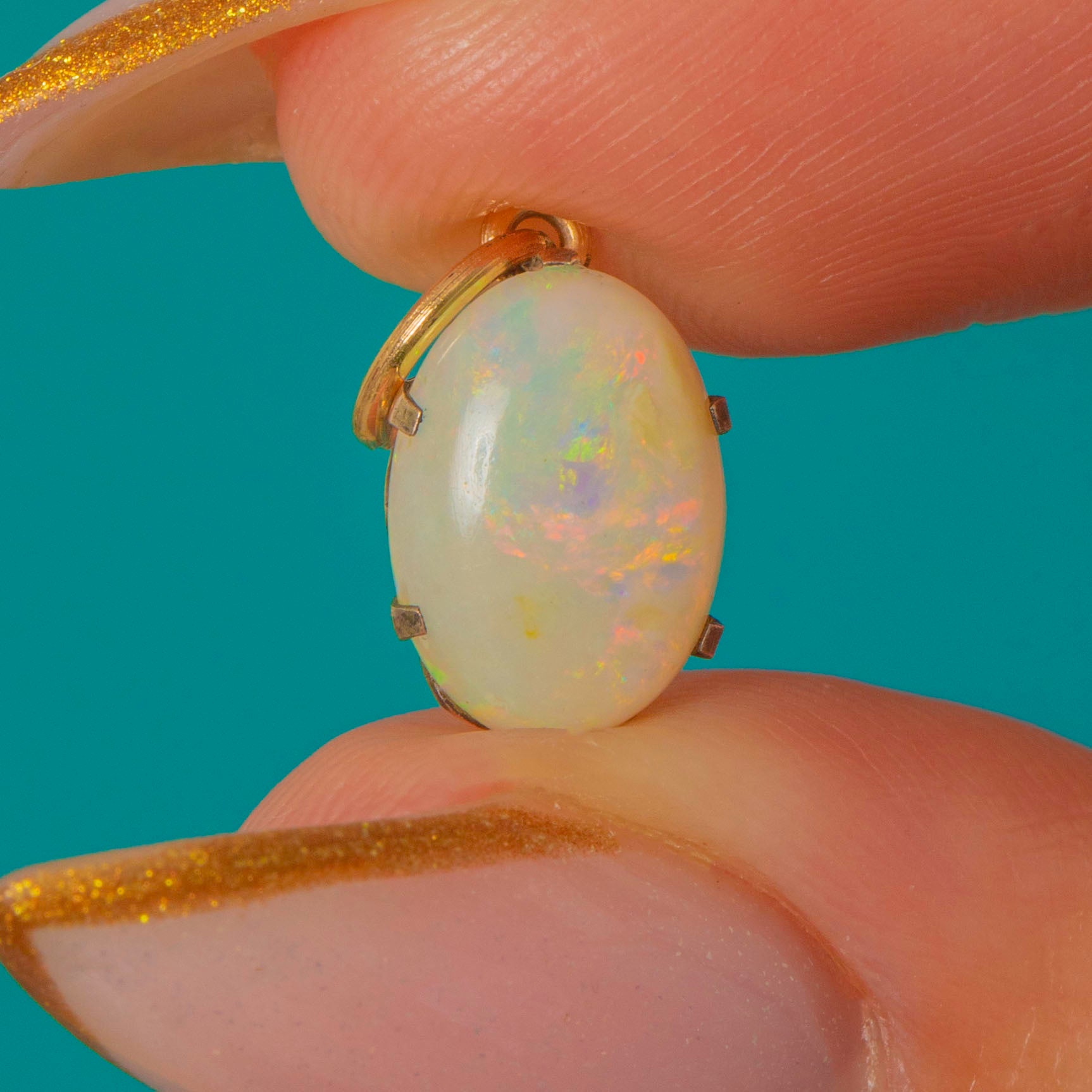 EXCELLENT: The Opal is smooth and well-polished with strong play-of-colour and no surface wear. The Gold setting and jump ring are secure and bright, beautifully preserved.
