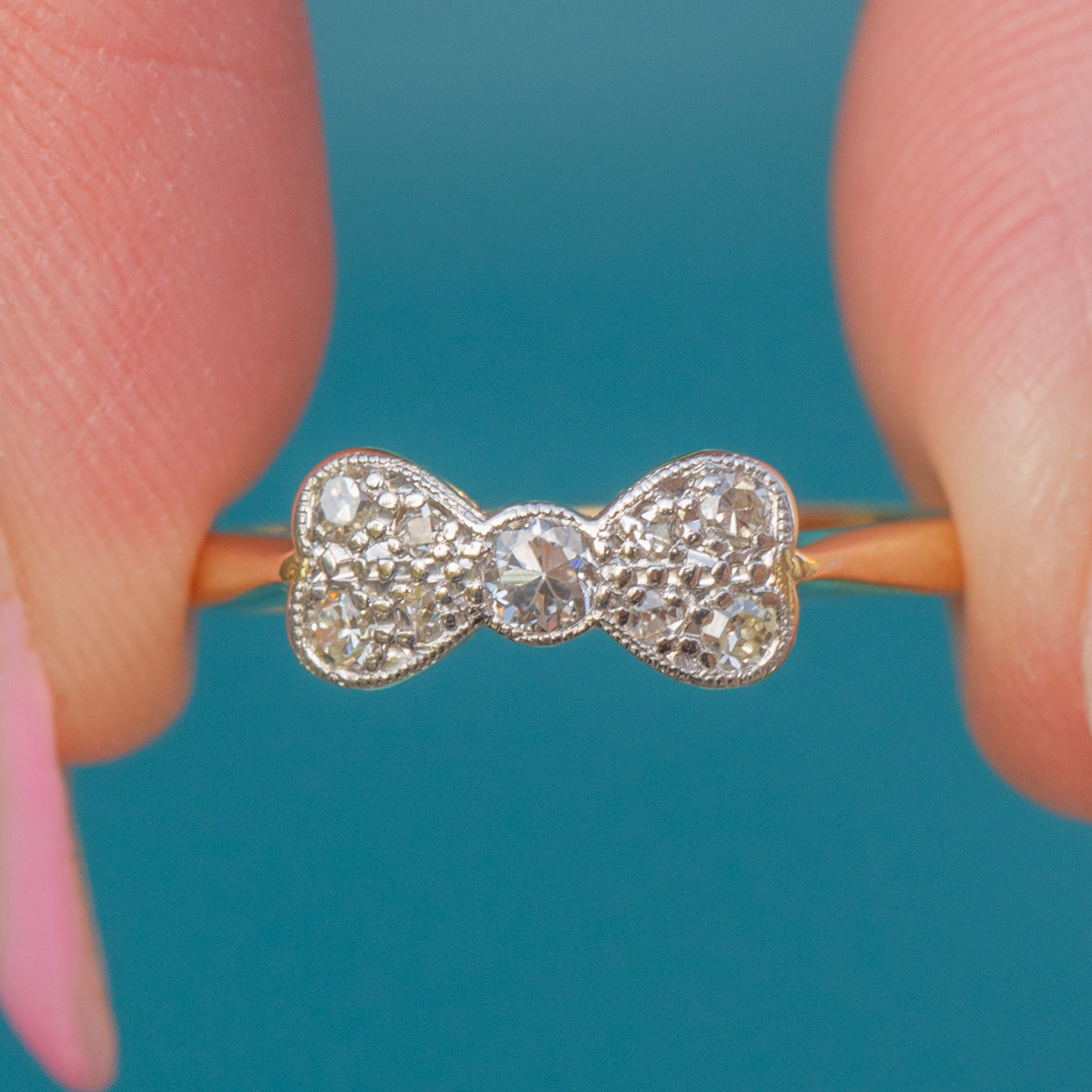 Art Deco 18ct Gold and Platinum Diamond Bow Ring