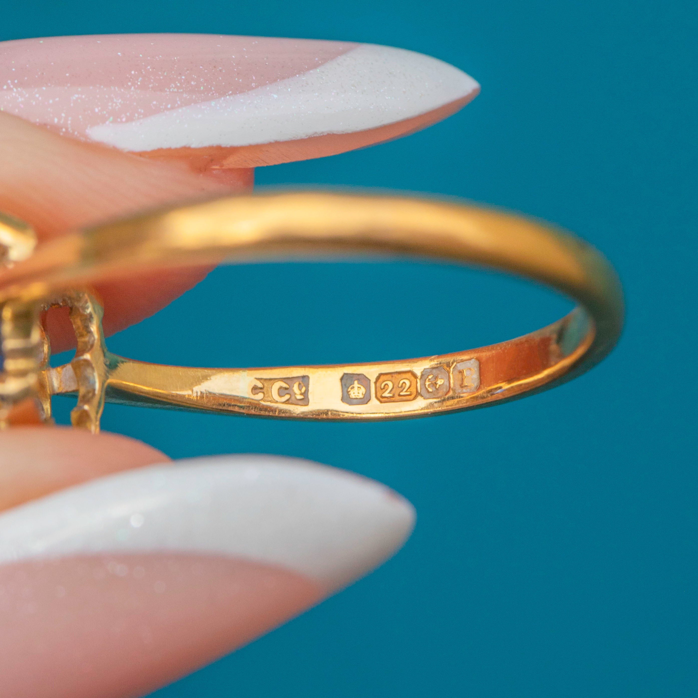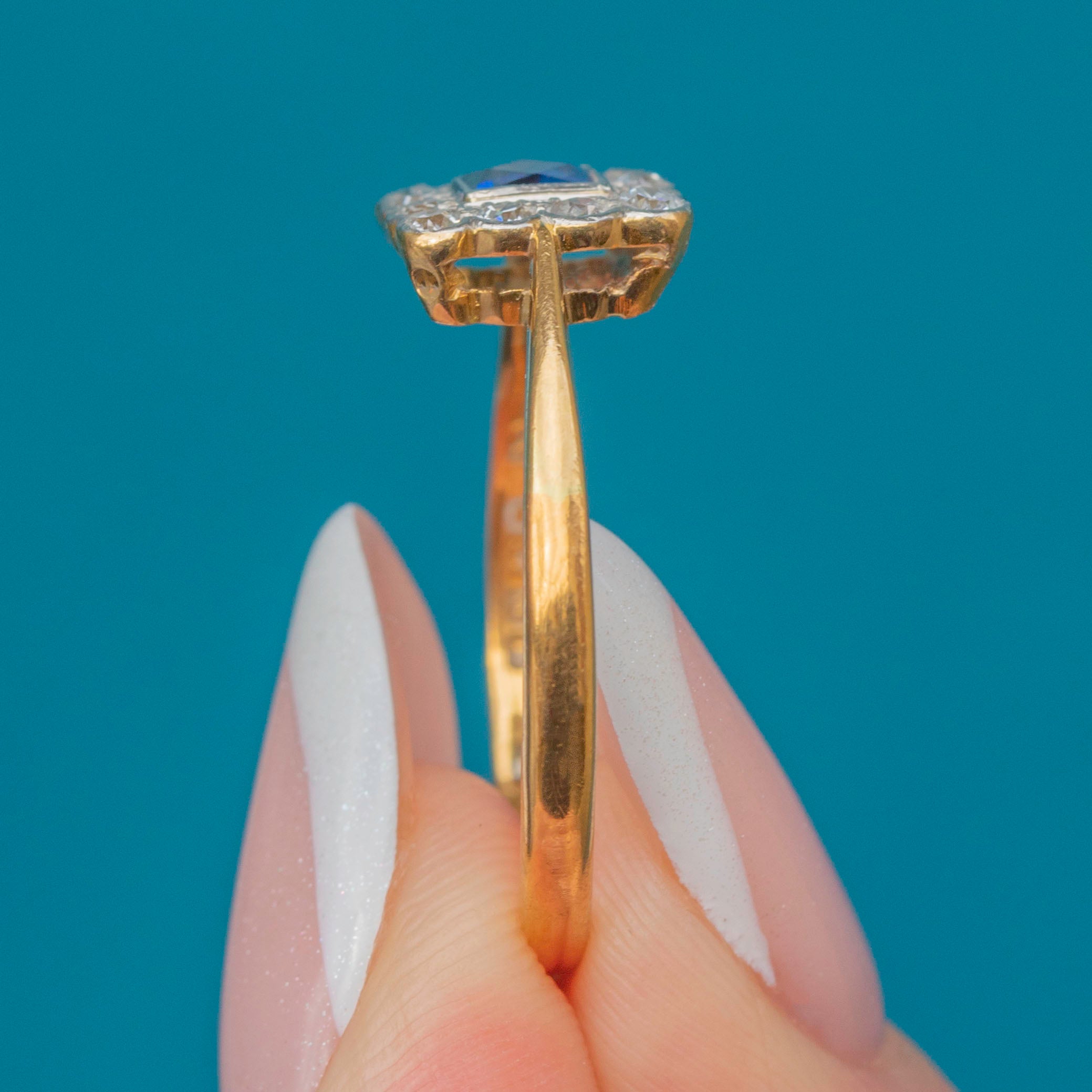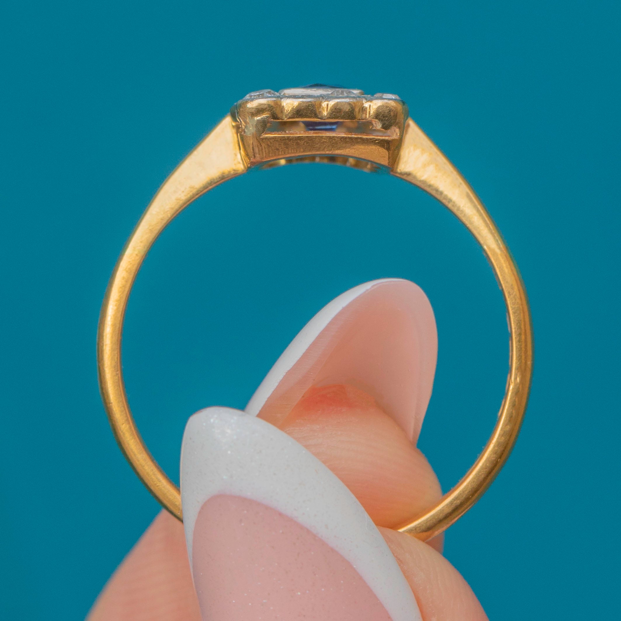 Complete with a saturated 22ct yellow Gold band and lustrous white Gold settings, this Art Deco Sapphire would make a stand-out choice for a unique engagement ring!
