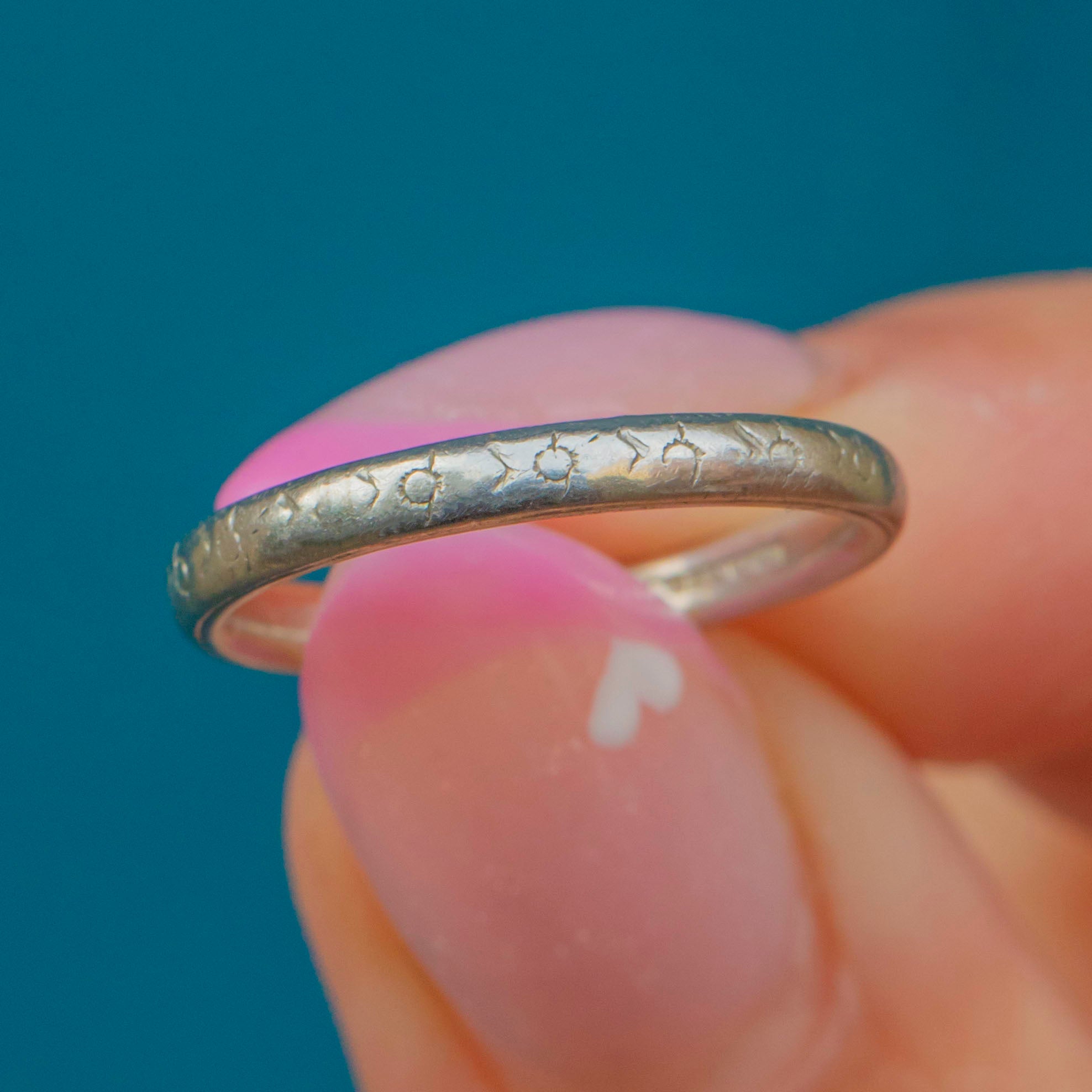 Certain to last for a lifetime to come, this beautiful 1920's wedding band has a slender width and features a subtle engraved design throughout. The perfect choice for a wedding band!