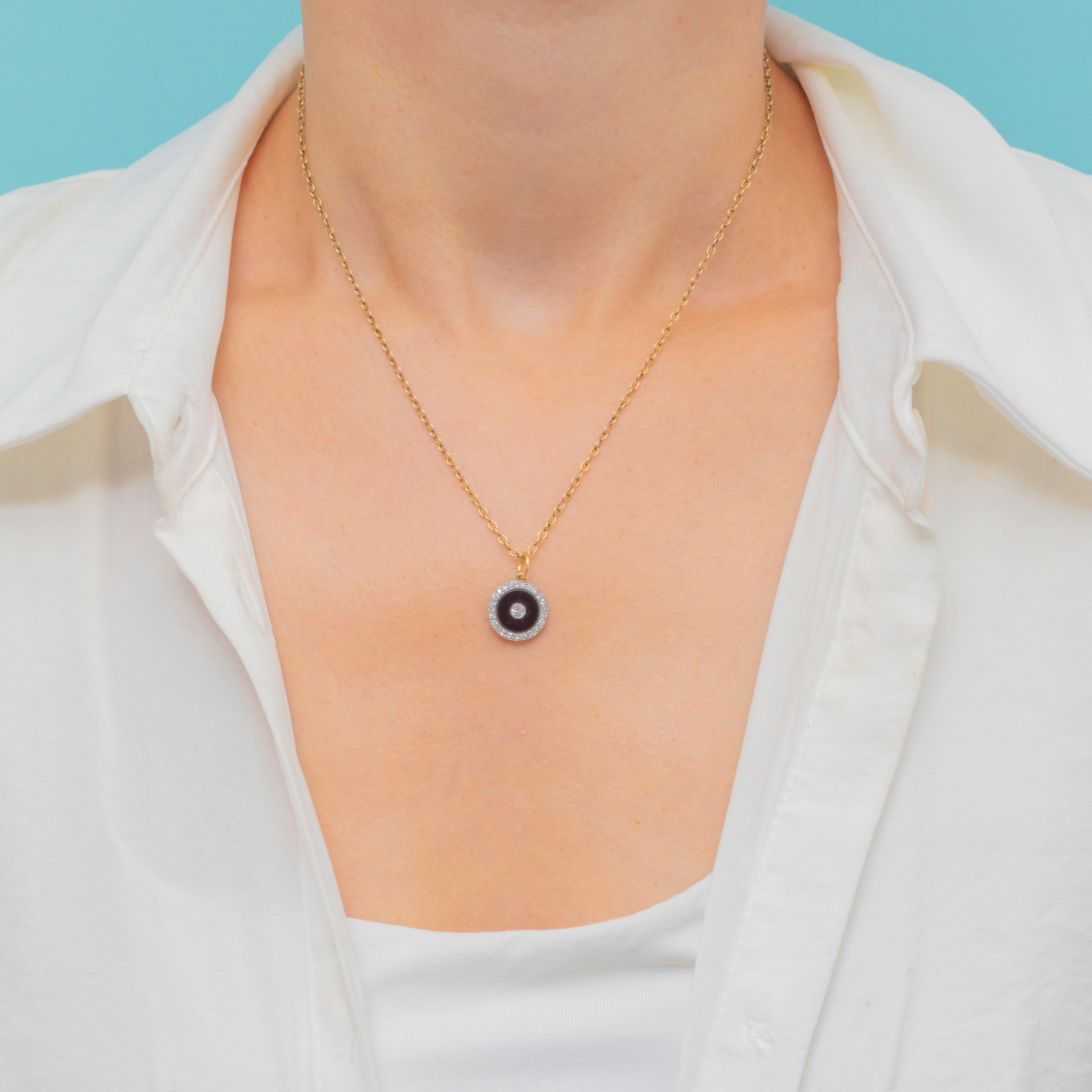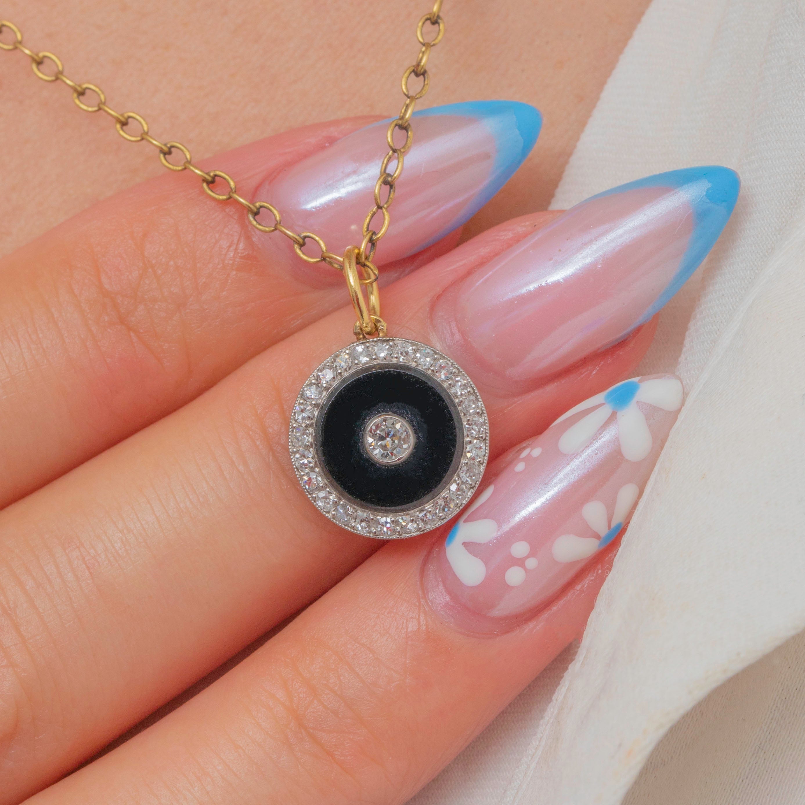 Dainty, lightweight and exuding elegance, this timeless antique Onyx Diamond pendant is the perfect piece for everyday wear, instantly adding a touch of Deco glamour to your outfit!