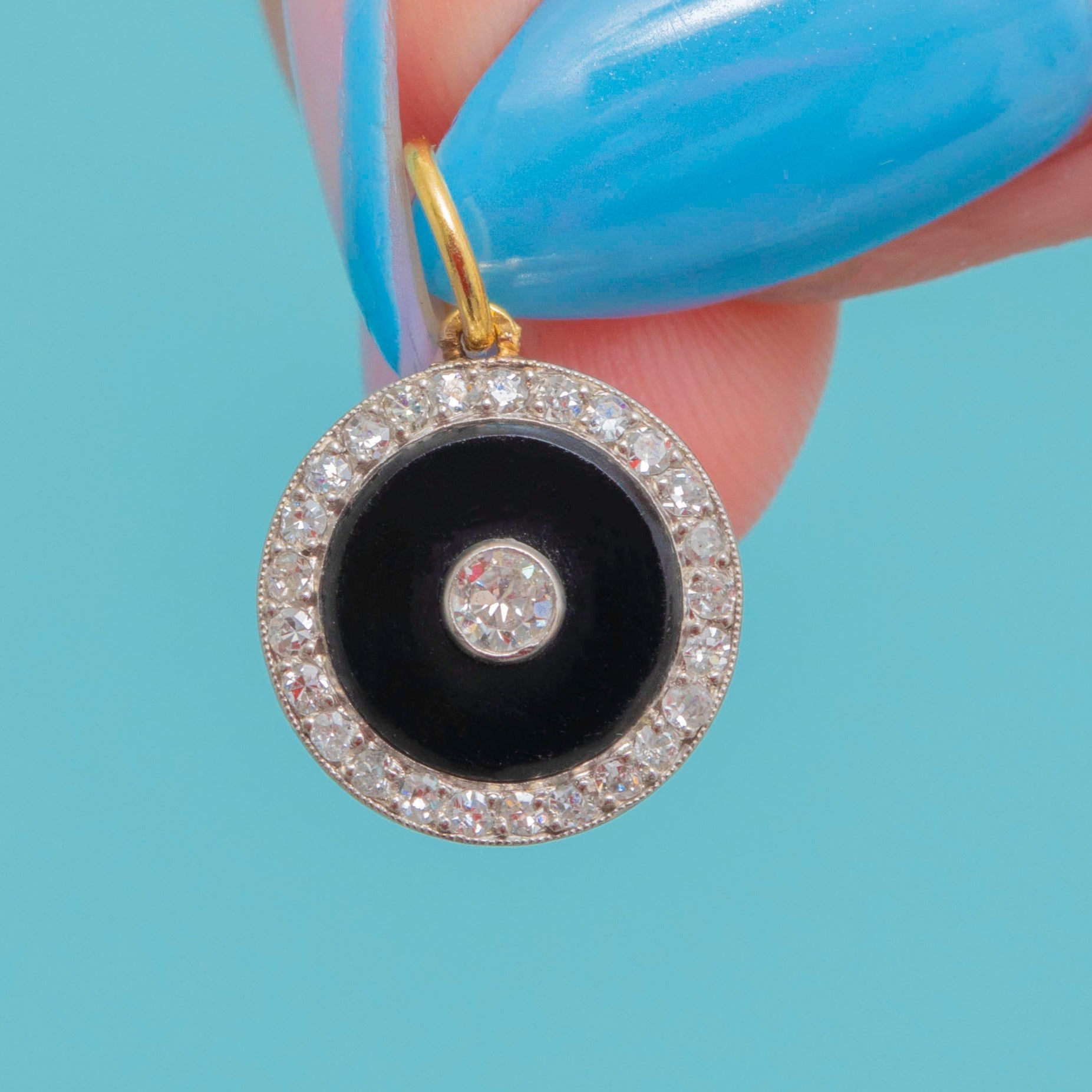 Art Deco Platinum Onyx Diamond Target Charm 0.30ct