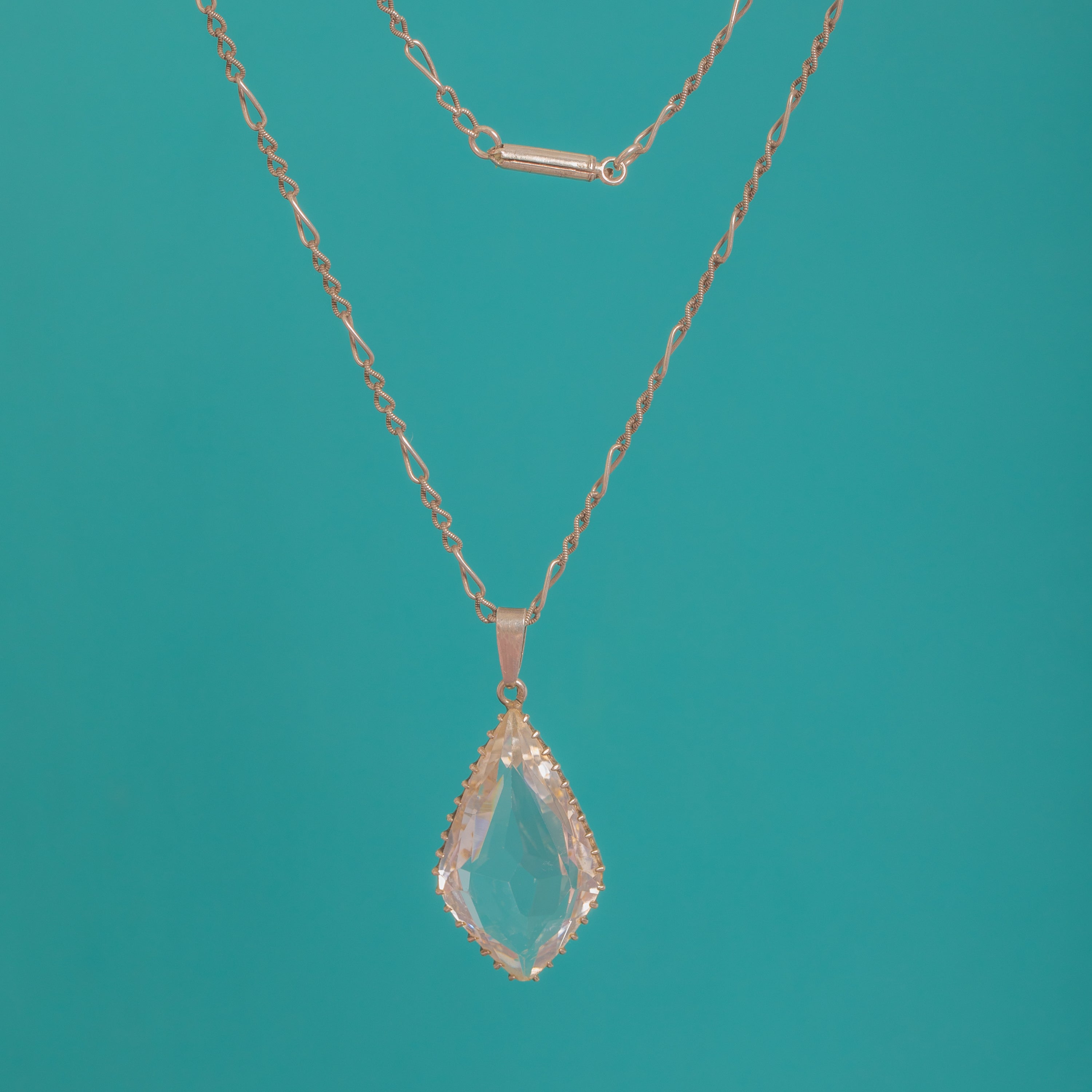 Art Deco Rock Crystal Lozenge Pendant with 16.5" Curb Chain