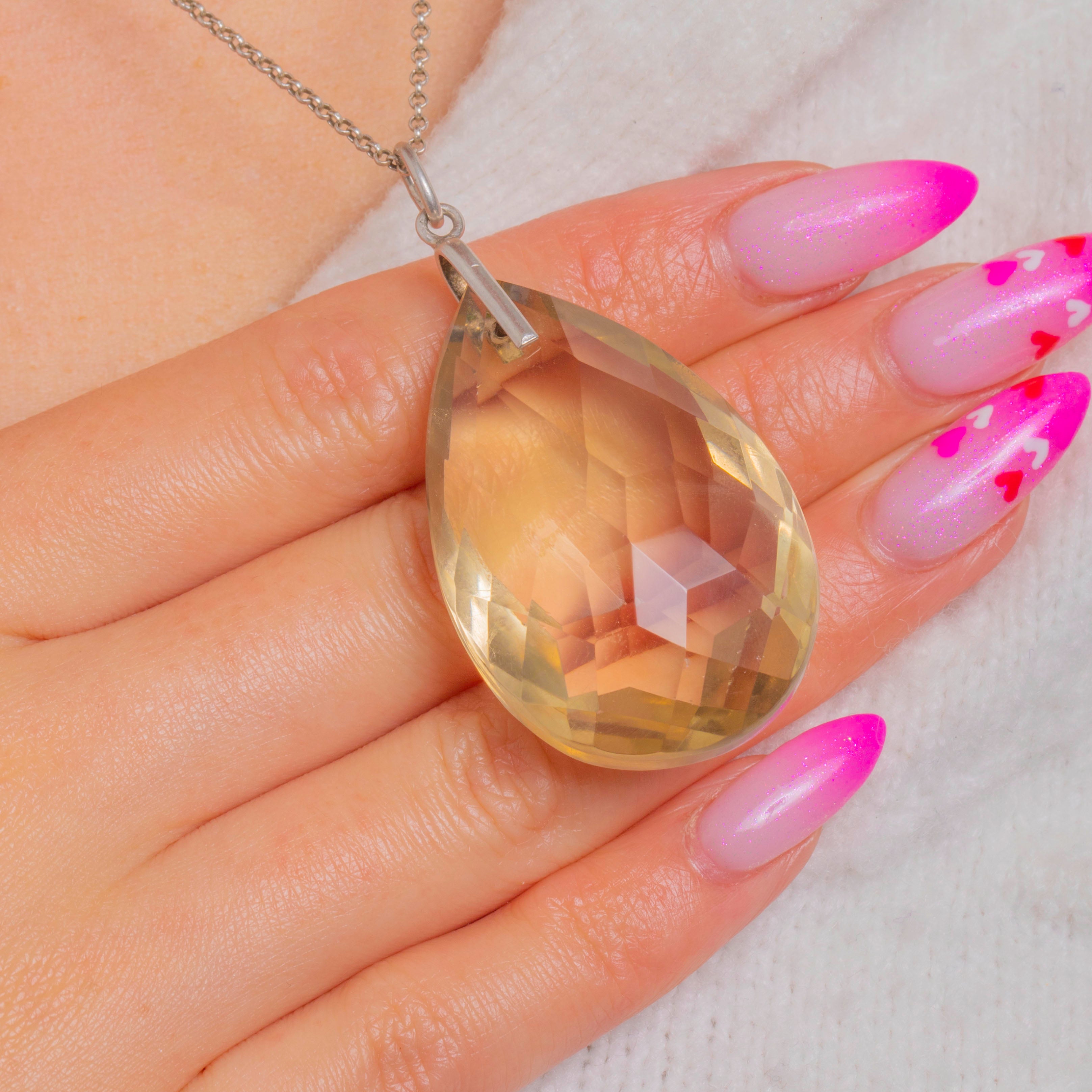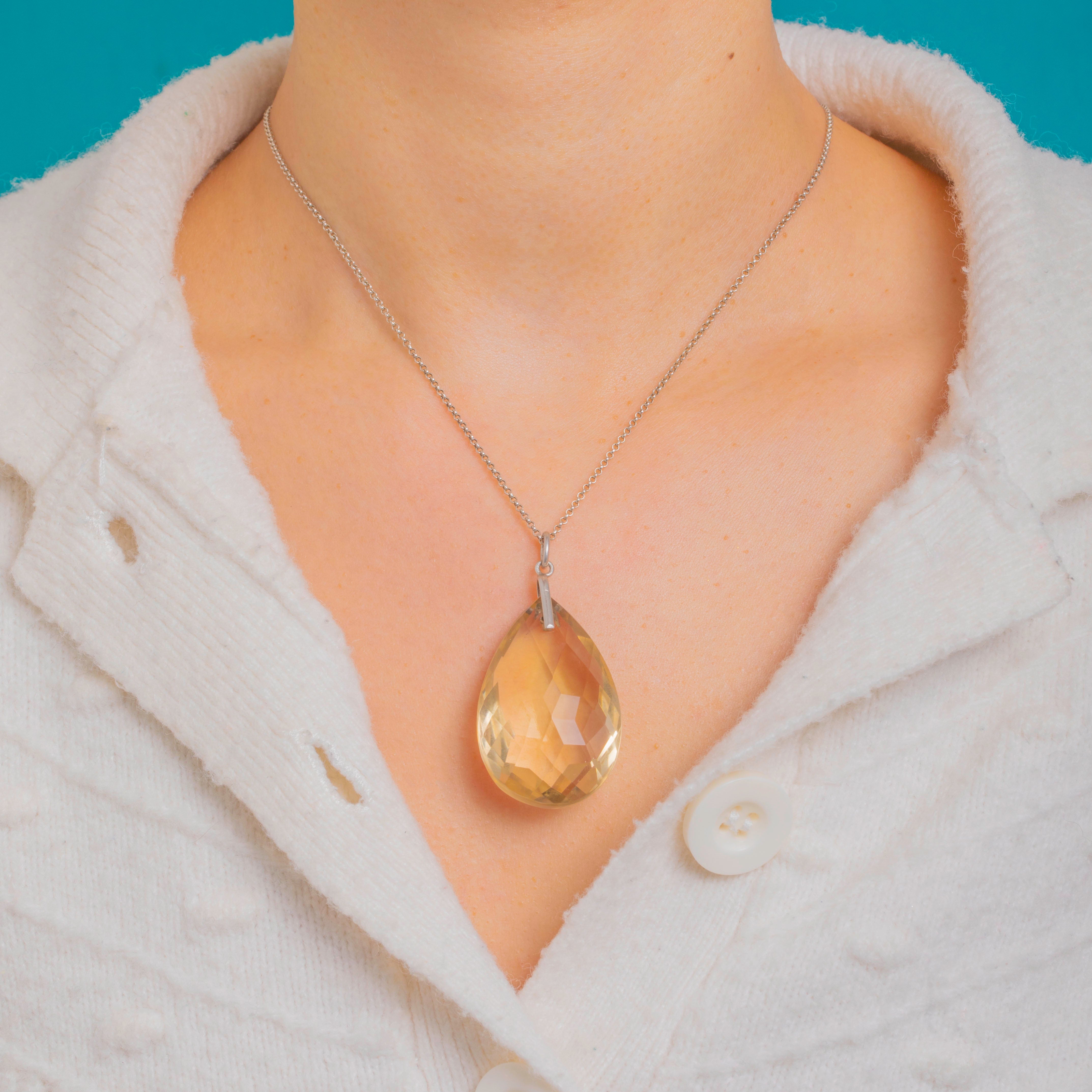 Art Deco Silver Citrine Pear Drop Briolette Pendant, 75.50ct Citrine