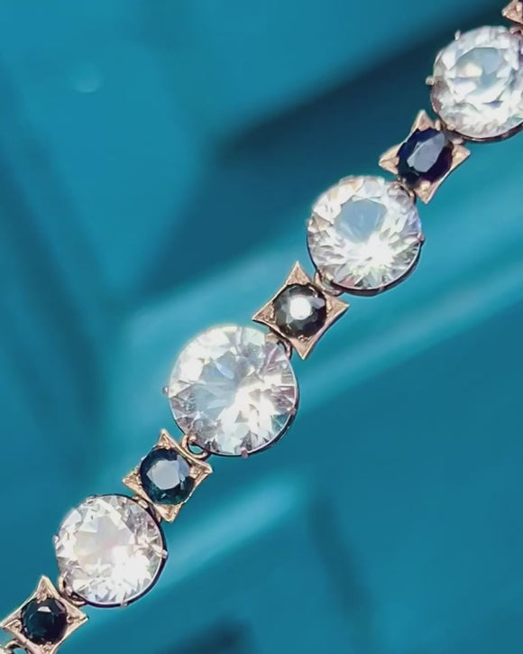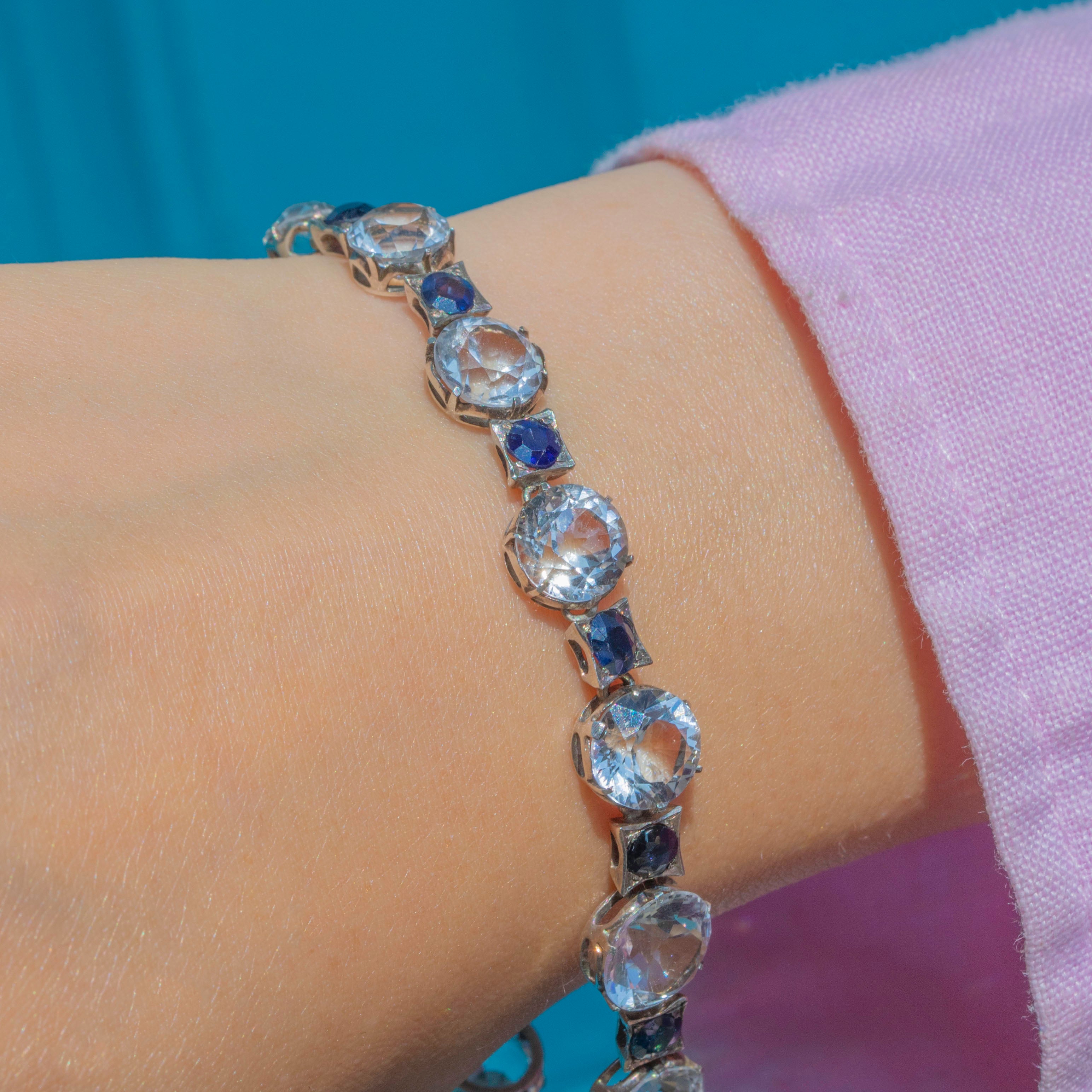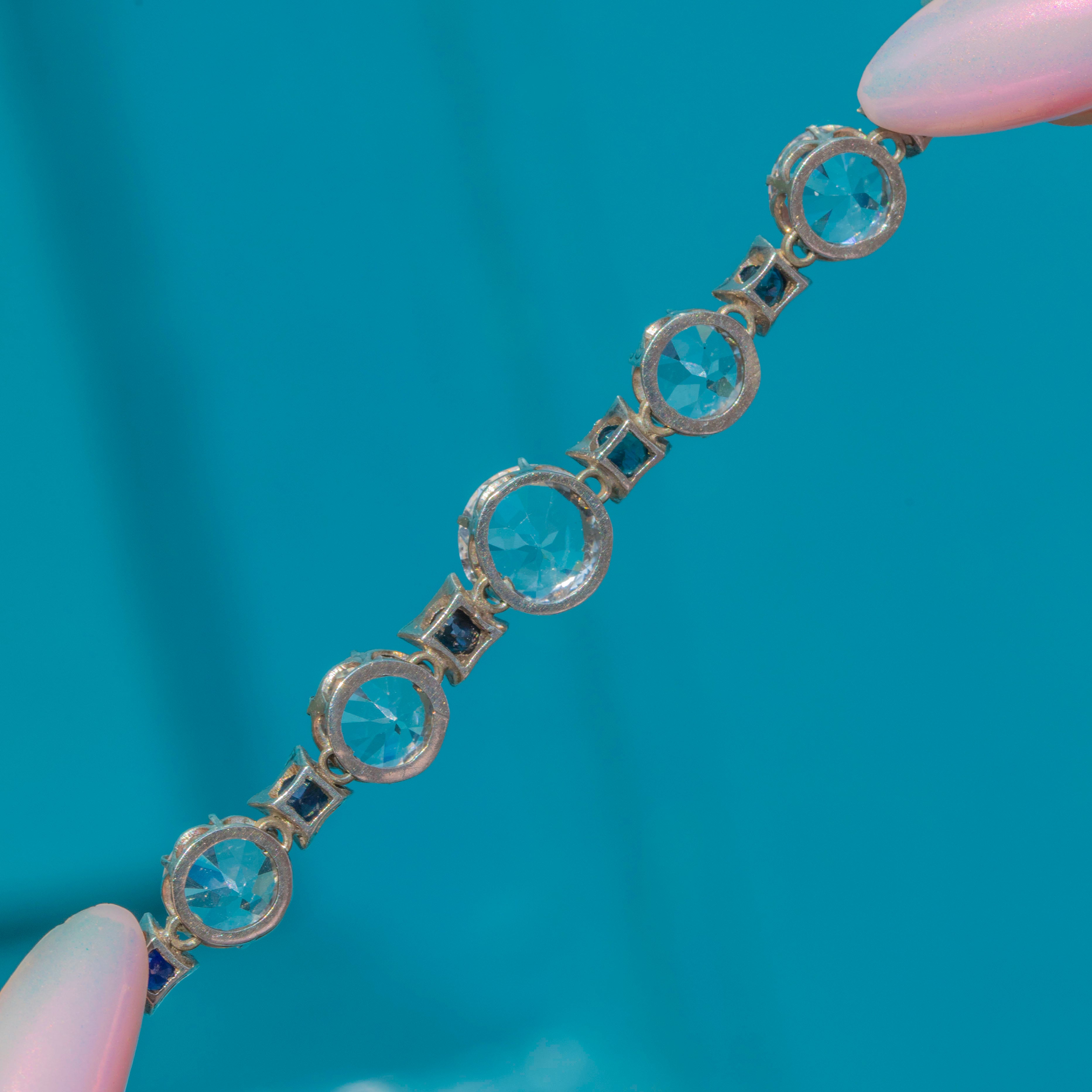 This Sapphire and Topaz Silver bracelet is a glittering example of Art Deco design!