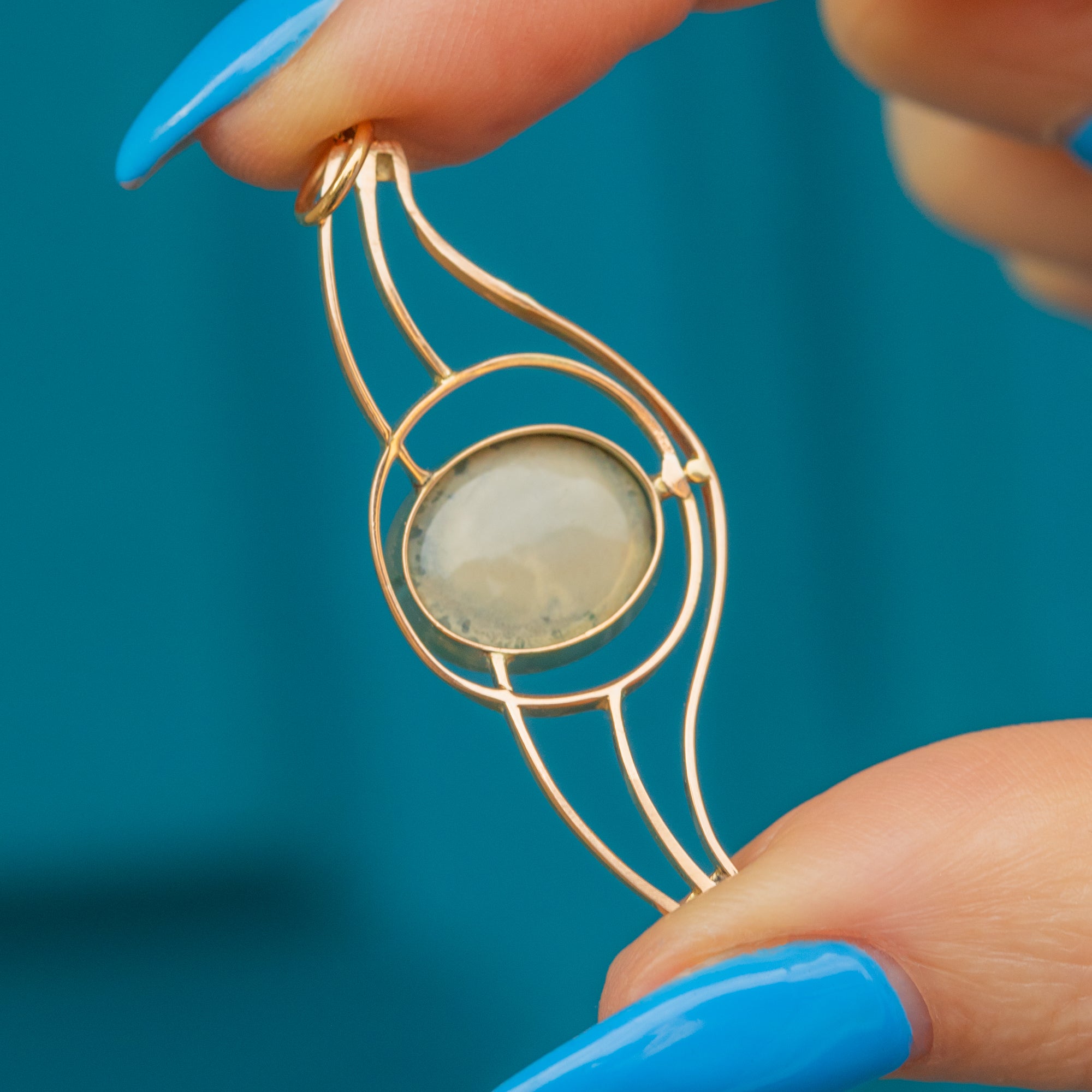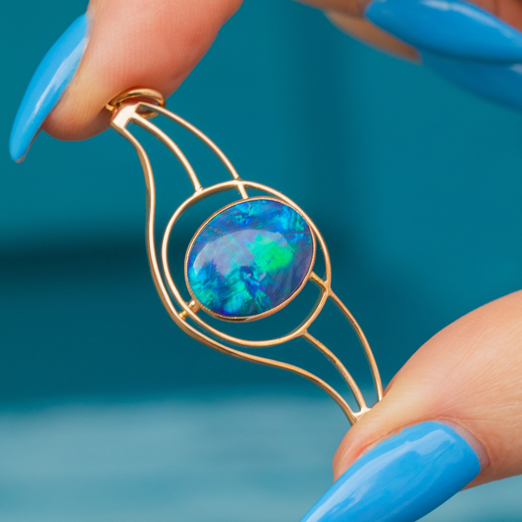 A wonderfully versatile statement piece, this Art Nouveau black Opal pendant will become your newest obsession!